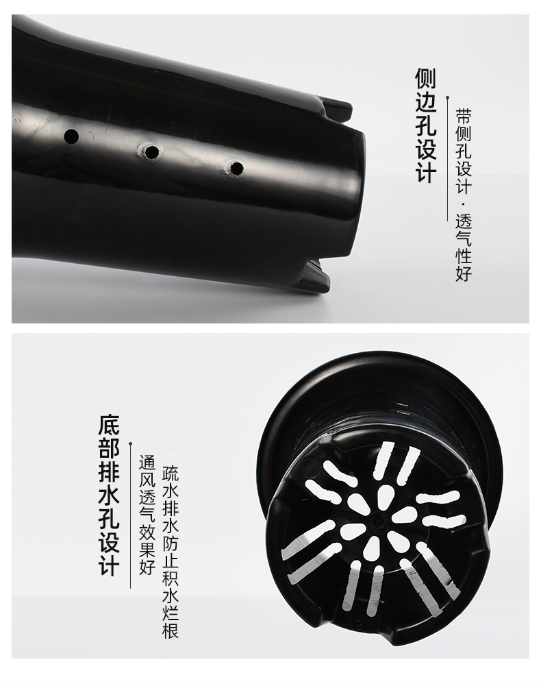 • 측면 구멍이 있는 검은색 난초 화분