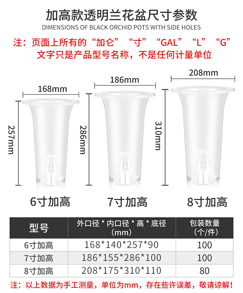 투명 난초 꽃 냄비 플라스틱 높은 냄비 큰 통기성 난초 꽃 냄비 도매 사이드 홀 블랙 난초 꽃 냄비스토어 가기