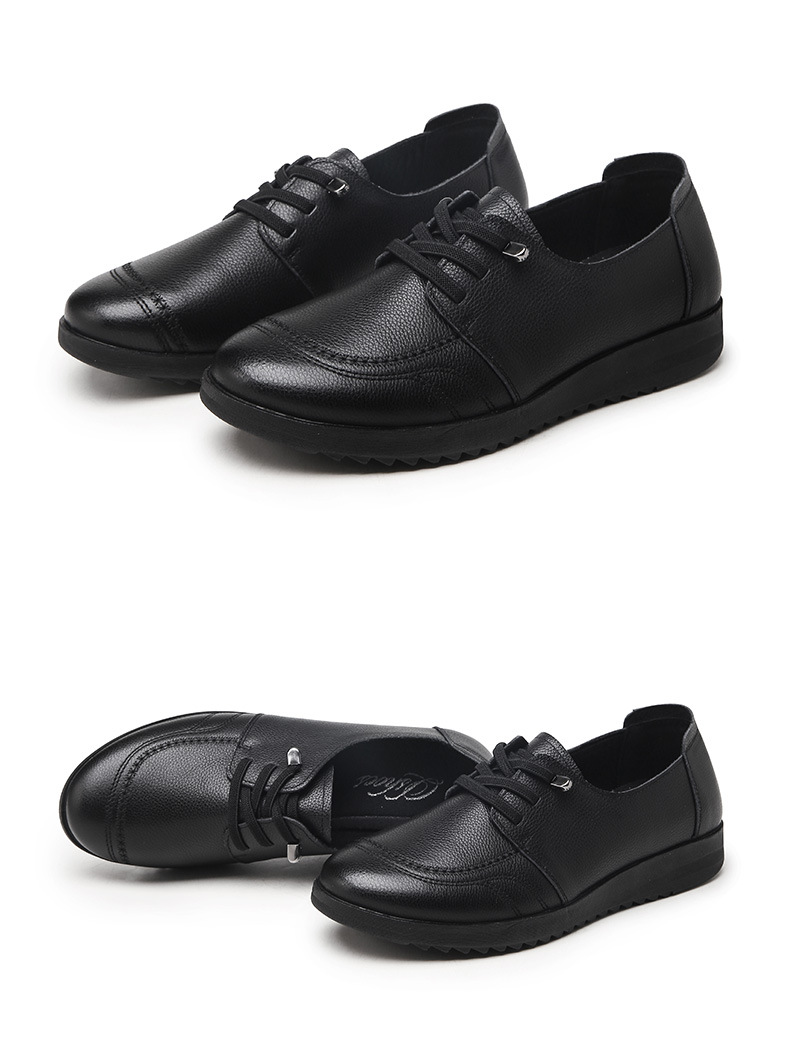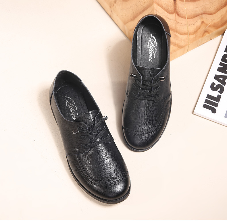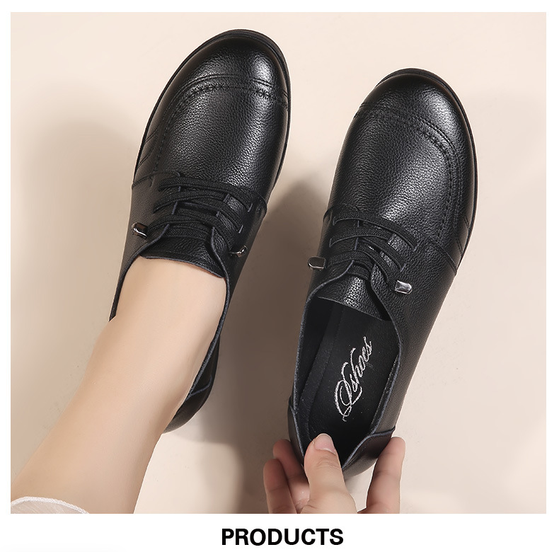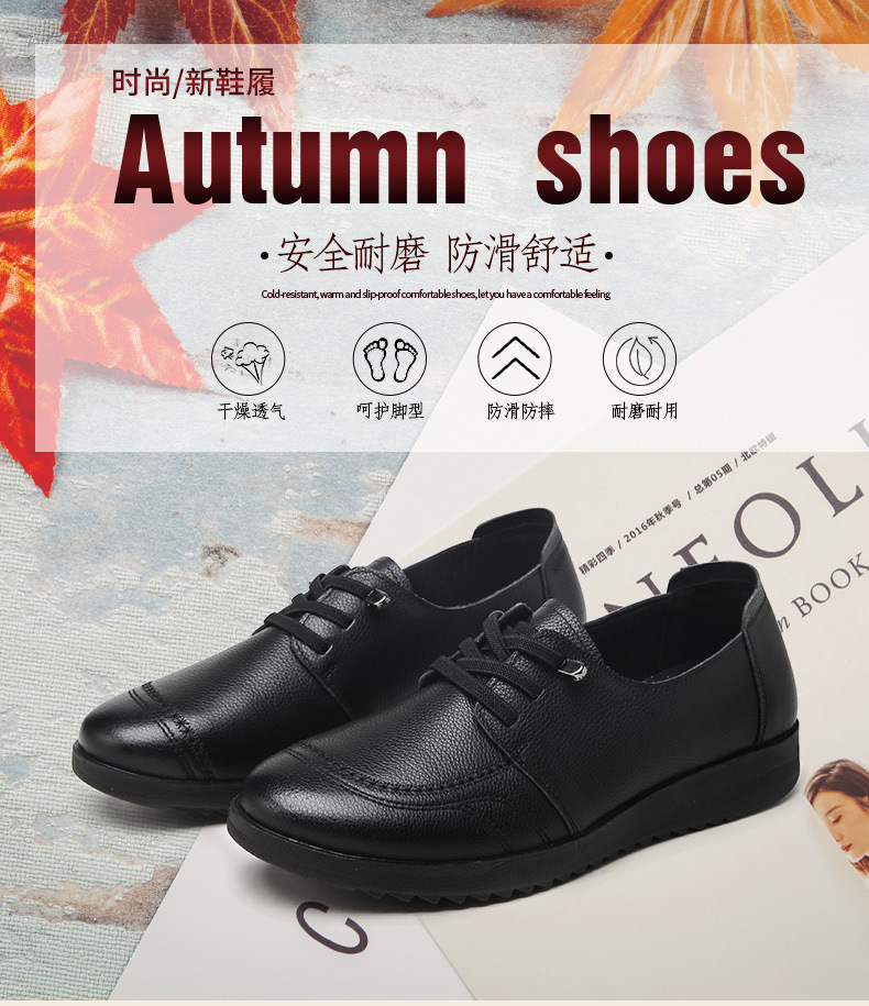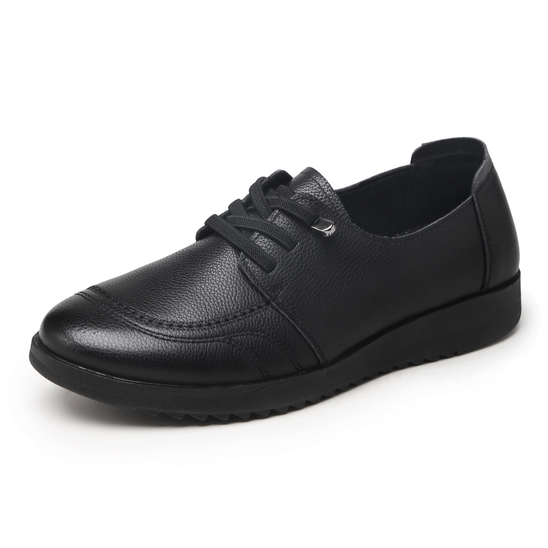 다이파 정품 가죽 부드러운 밑창 어머니의 싱글 신발 가을 플랫 편안한 레이스 업 여성용 신발 미끄럼 방지 플러스 사이즈 가죽 신발 801251