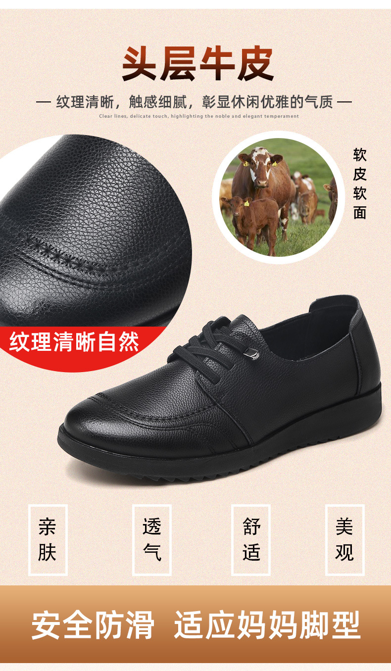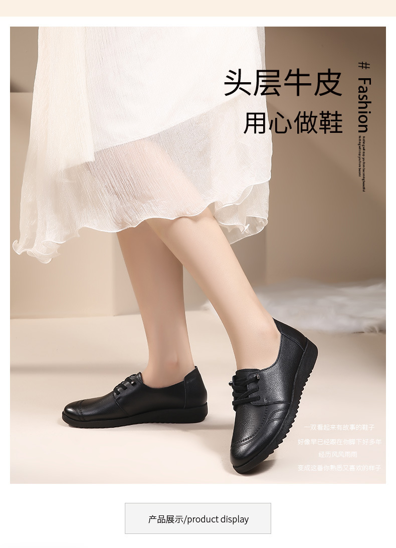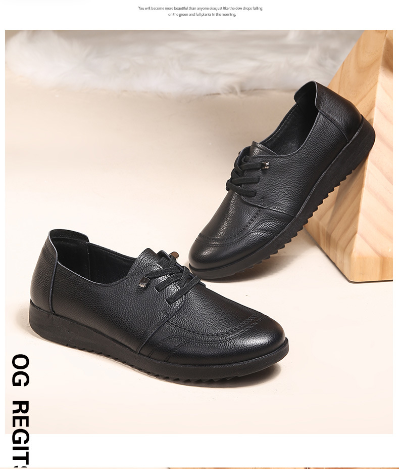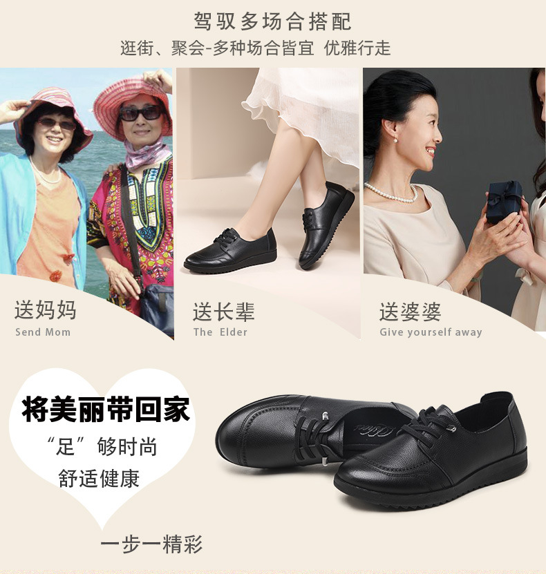 다이파 정품 가죽 부드러운 밑창 어머니의 싱글 신발 가을 플랫 편안한 레이스 업 여성용 신발 미끄럼 방지 플러스 사이즈 가죽 신발 801251