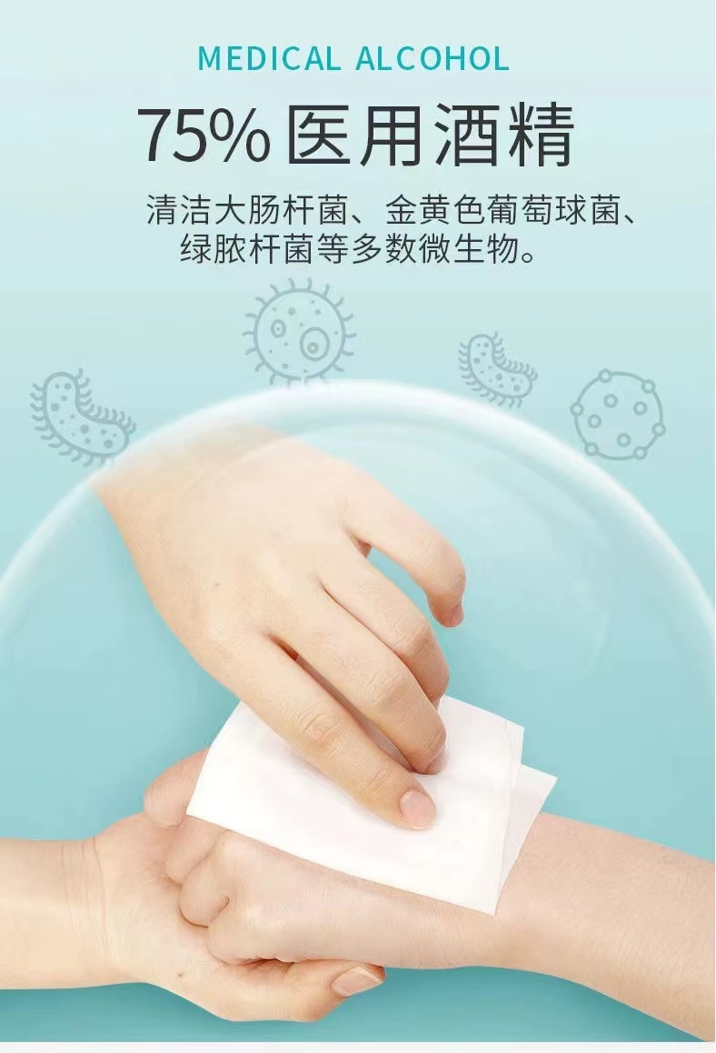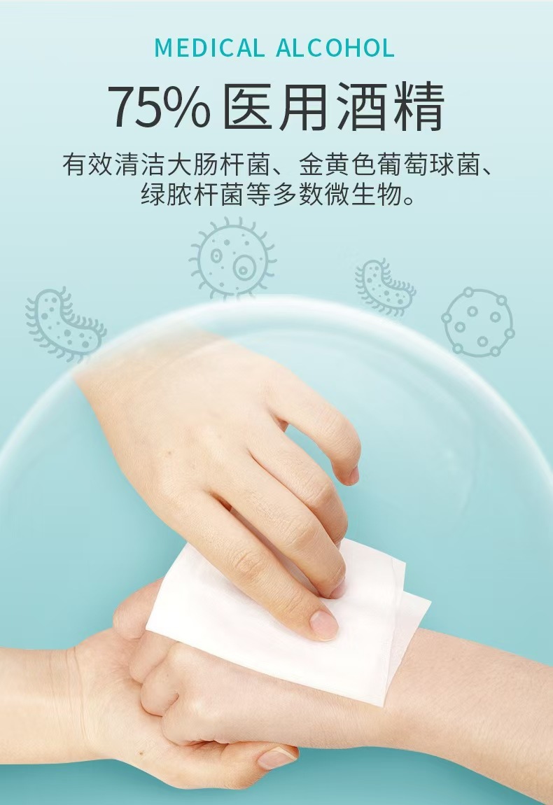• 75% 알코올 위생 물티슈 150*180mm 50개/박스(개별 포장) - 1박스