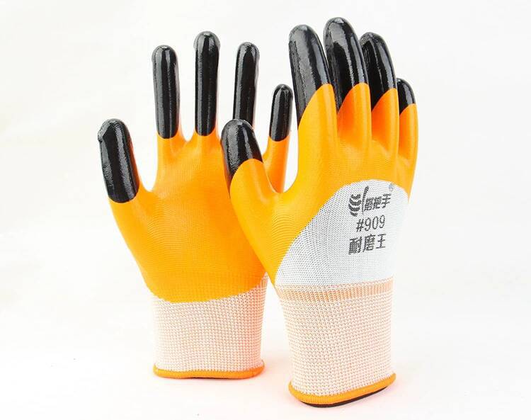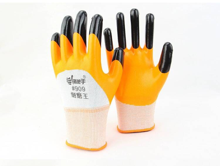 핸들 #909 Nitrile 딥 킹 핑거팁 강화 미끄럼 방지, 내마모성, 내유성 및 통기성 기계 공장 노동 보호 장갑스토어 가기