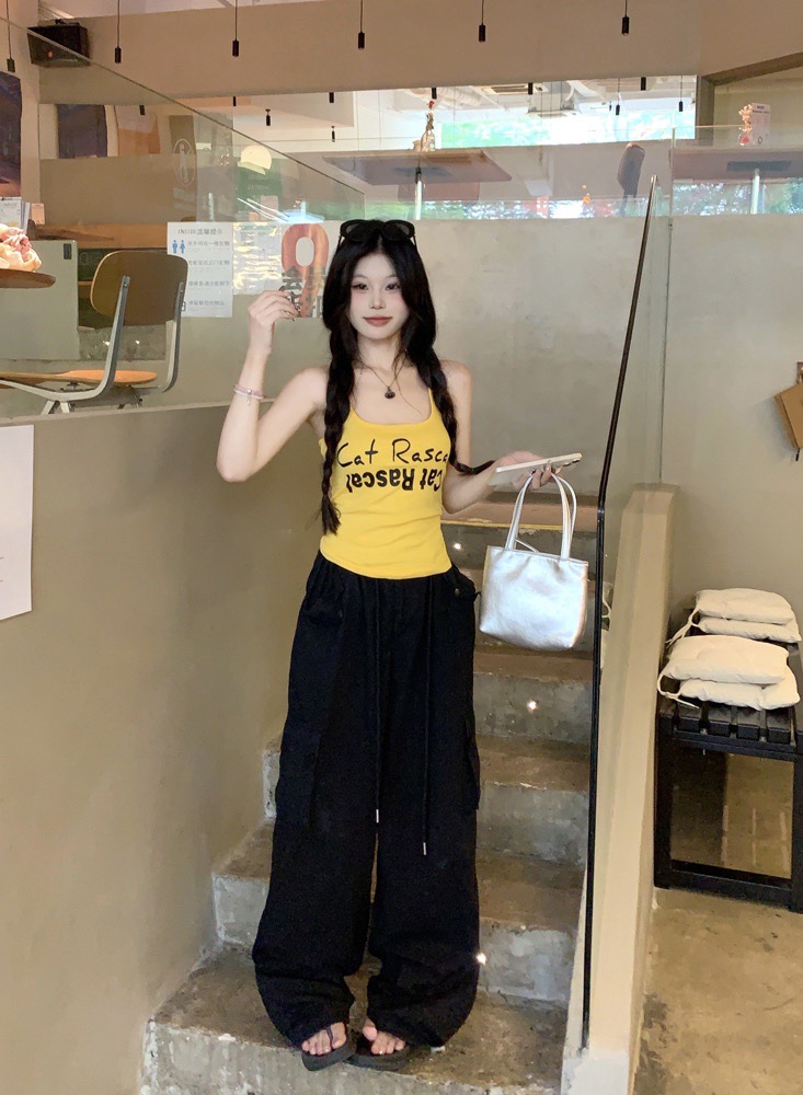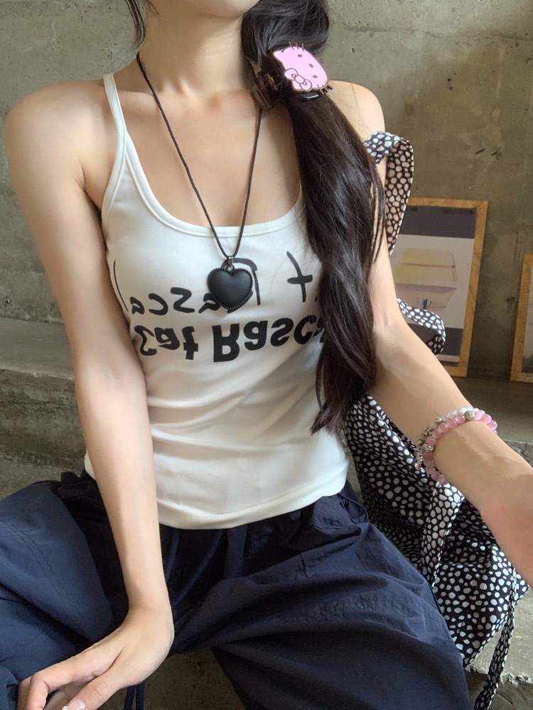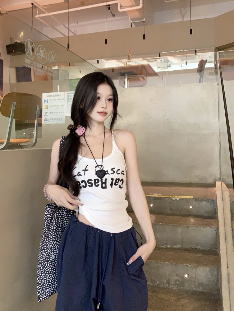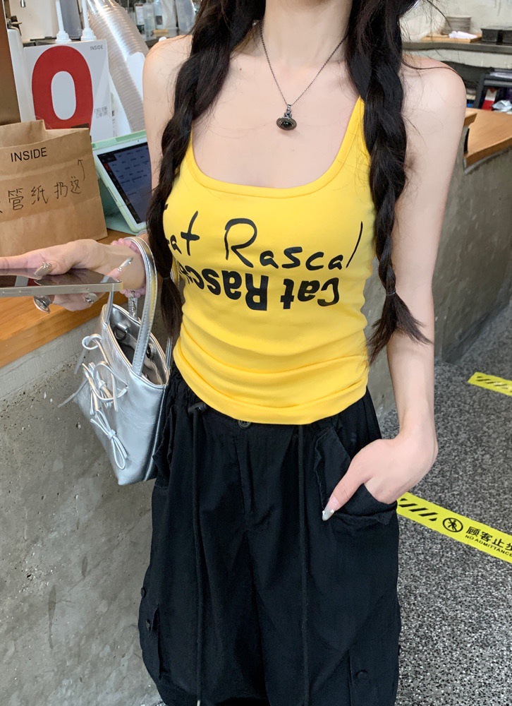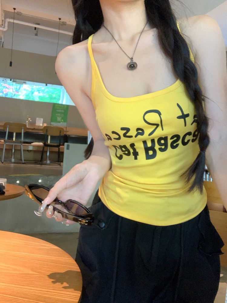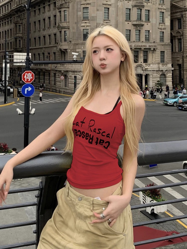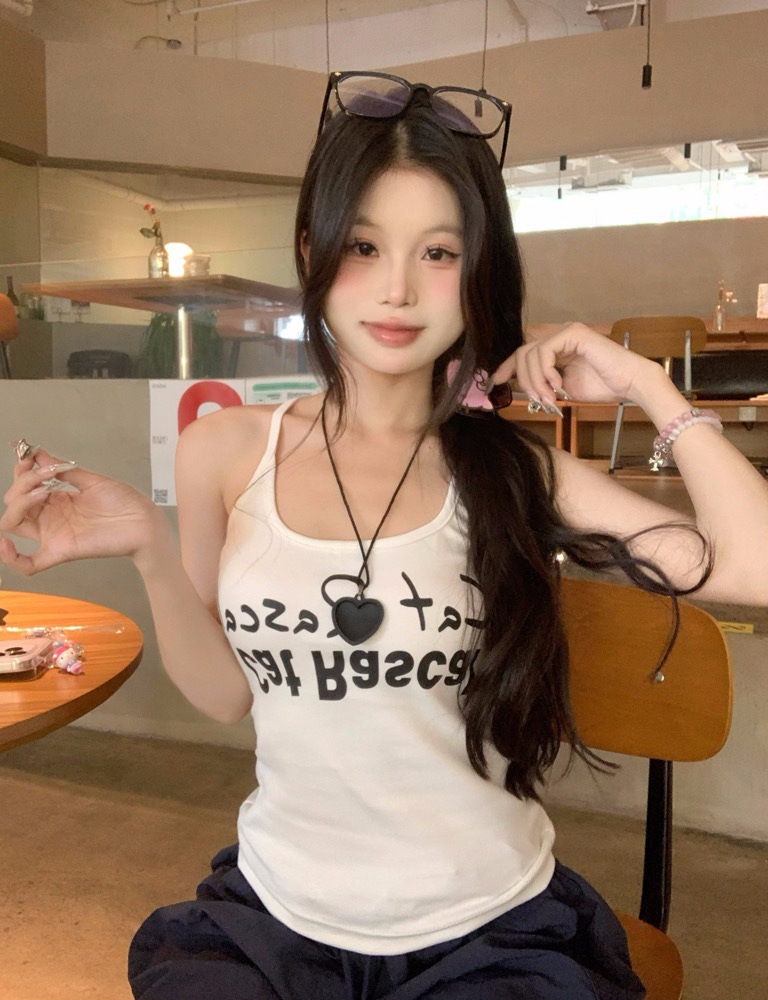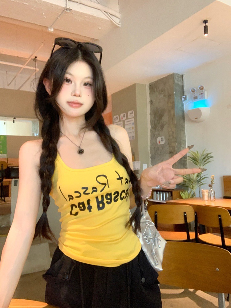 도파민 미국식 향신료 인쇄 카미 솔 여름 슬림 핏 내면베이스 짧은 소매 없는 탑스토어 가기