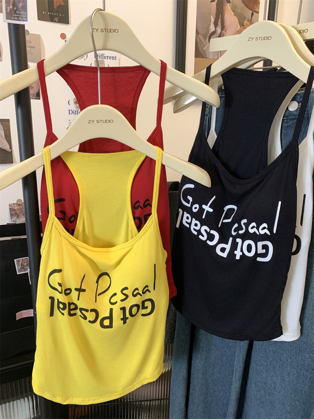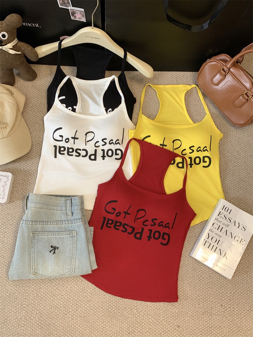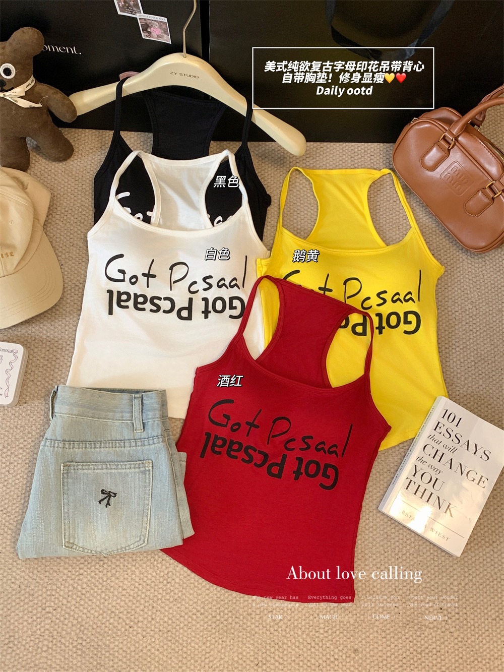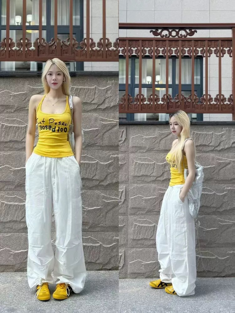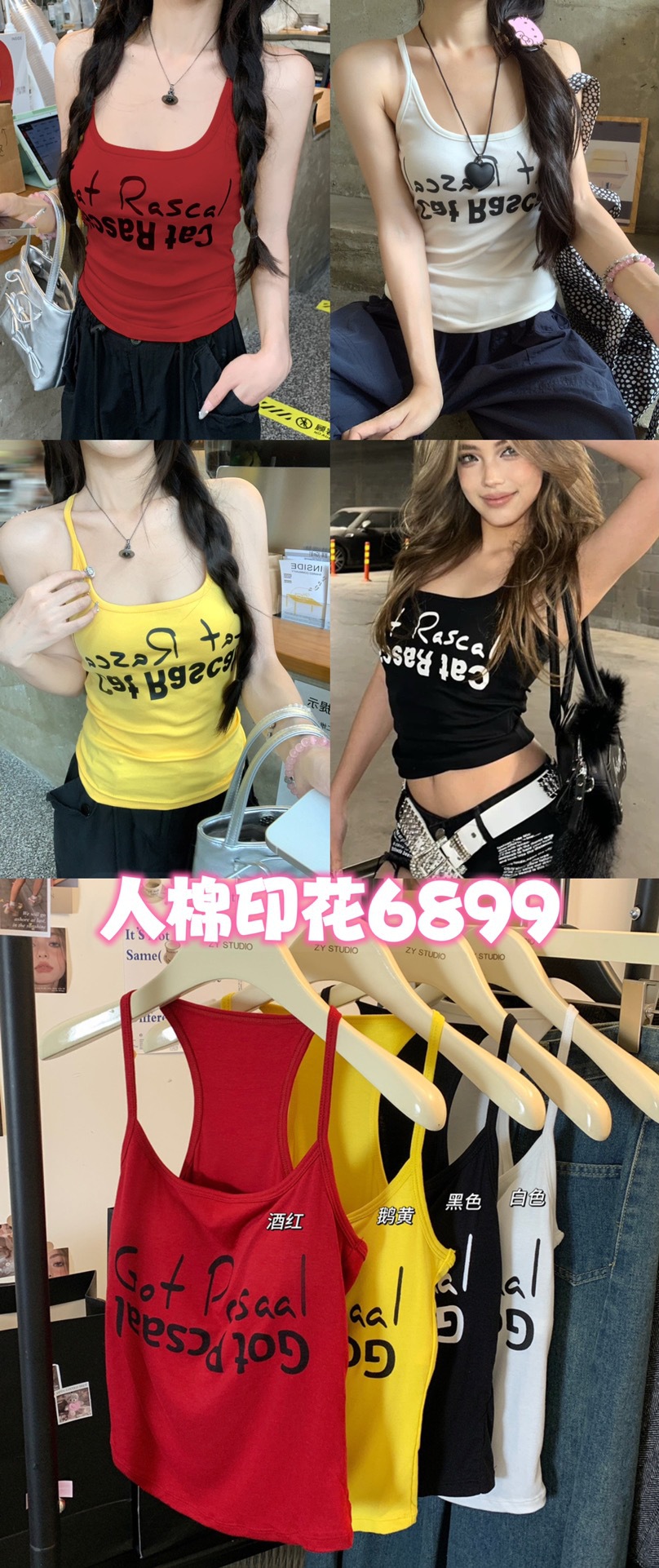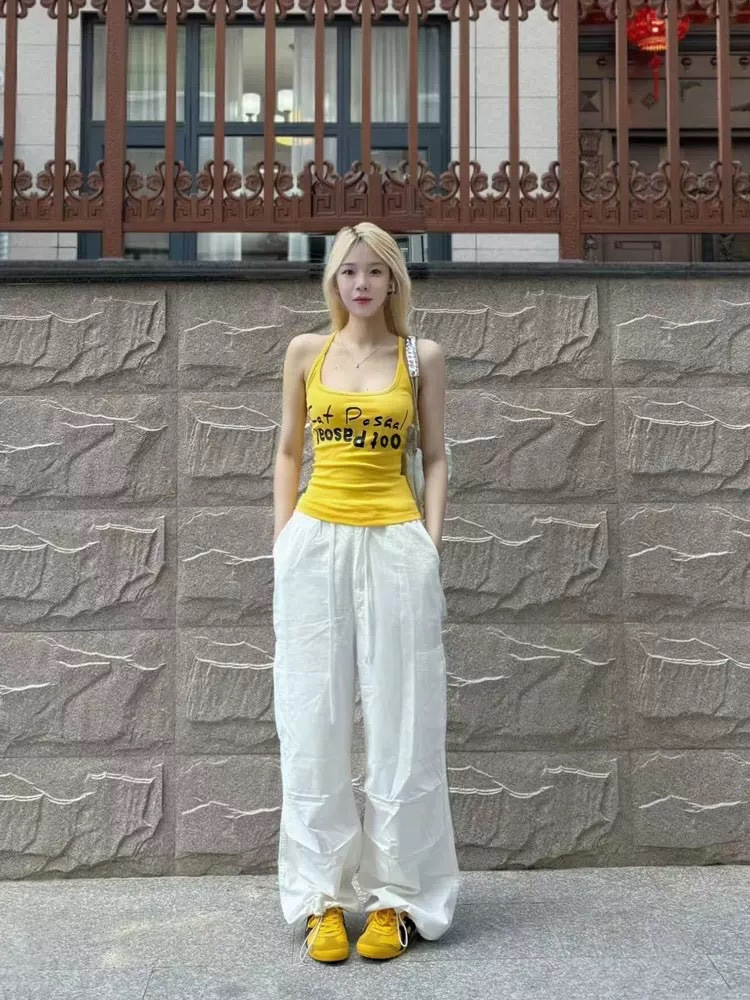도파민 미국식 향신료 인쇄 카미 솔 여름 슬림 핏 내면베이스 짧은 소매 없는 탑스토어 가기