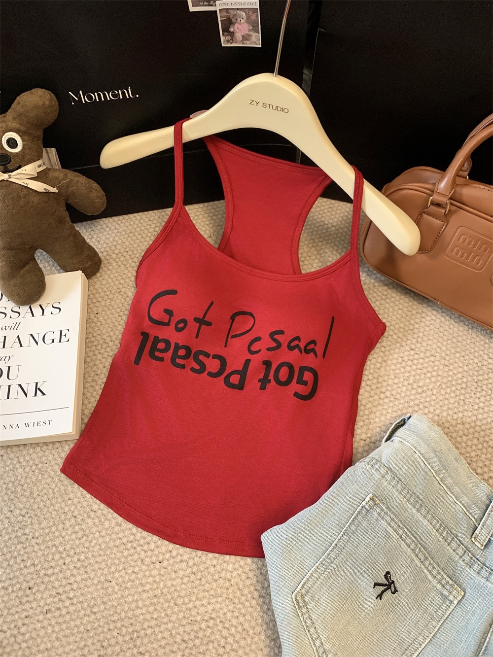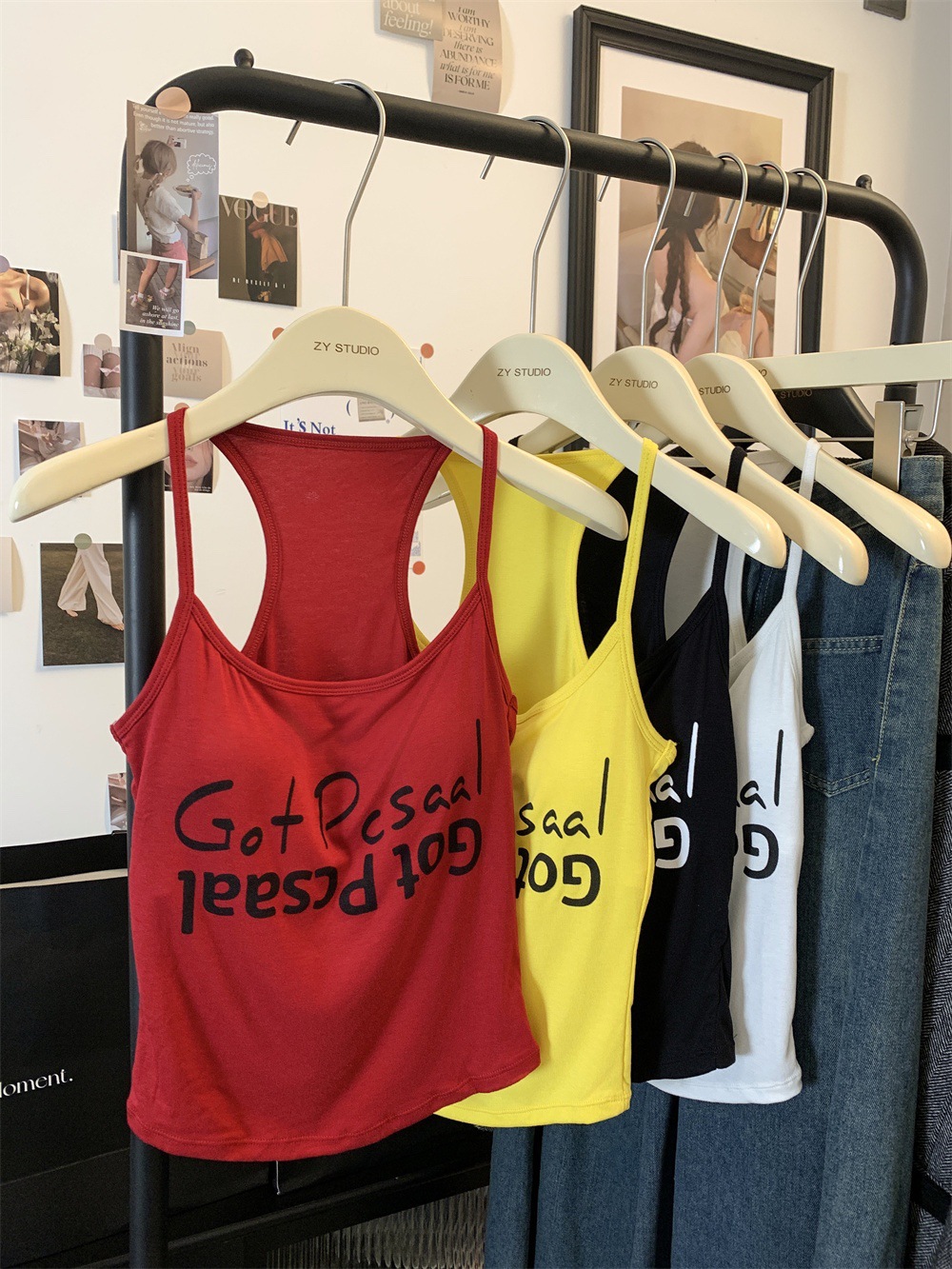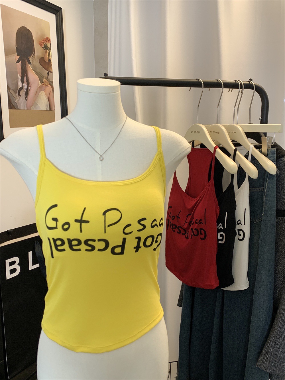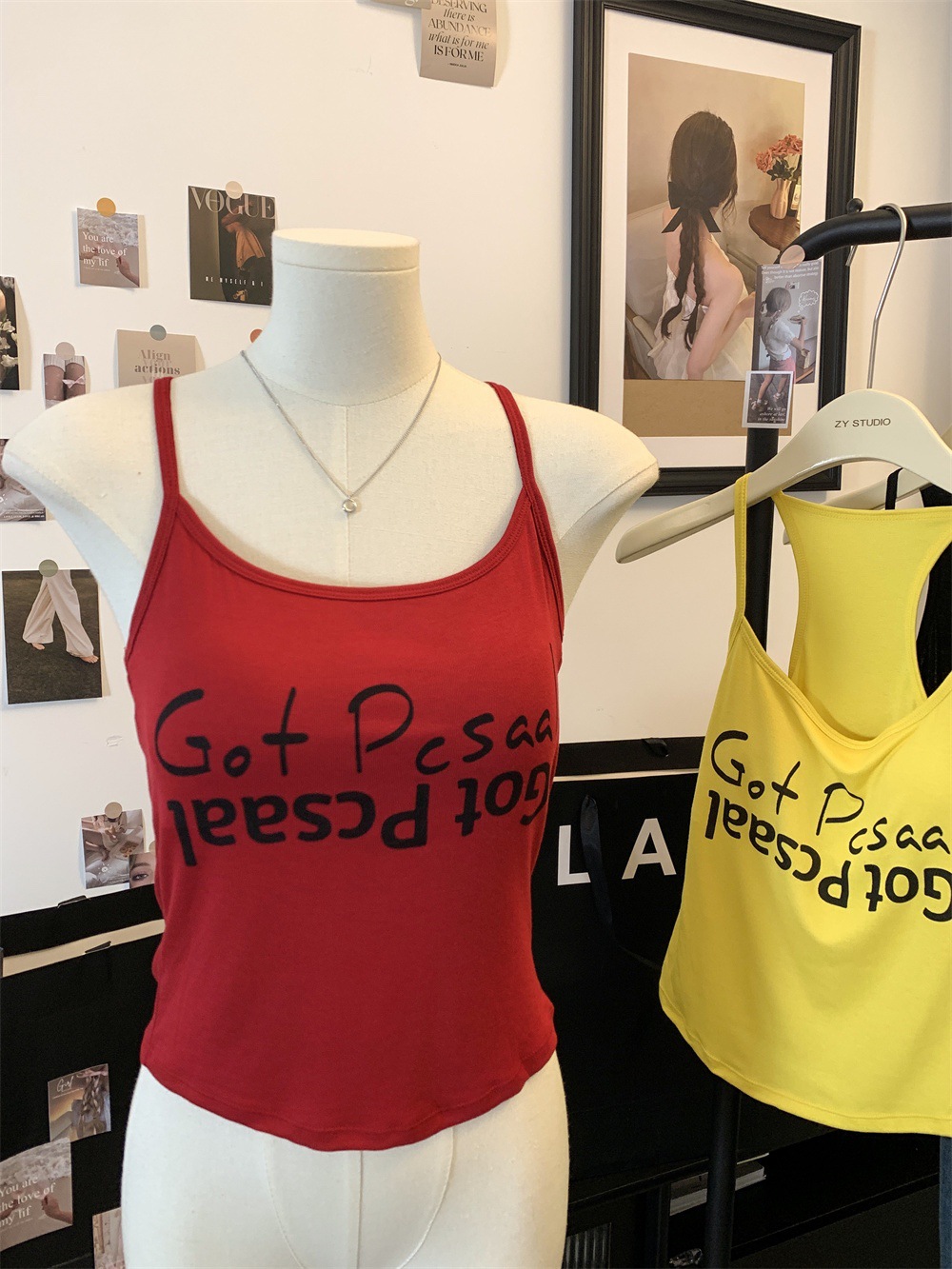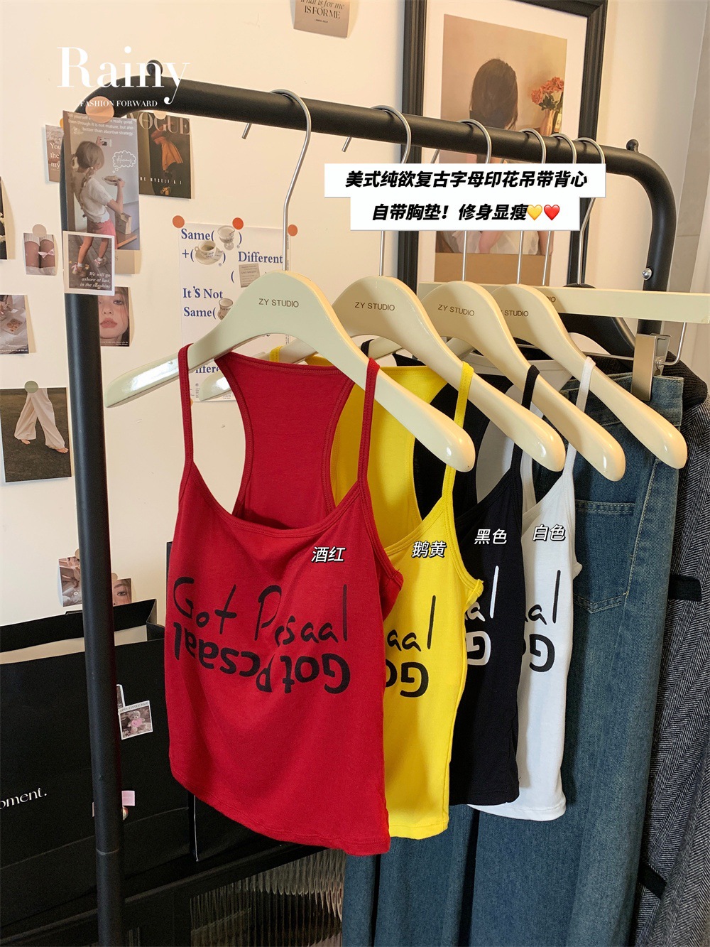 도파민 미국식 향신료 인쇄 카미 솔 여름 슬림 핏 내면베이스 짧은 소매 없는 탑스토어 가기