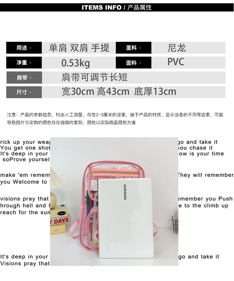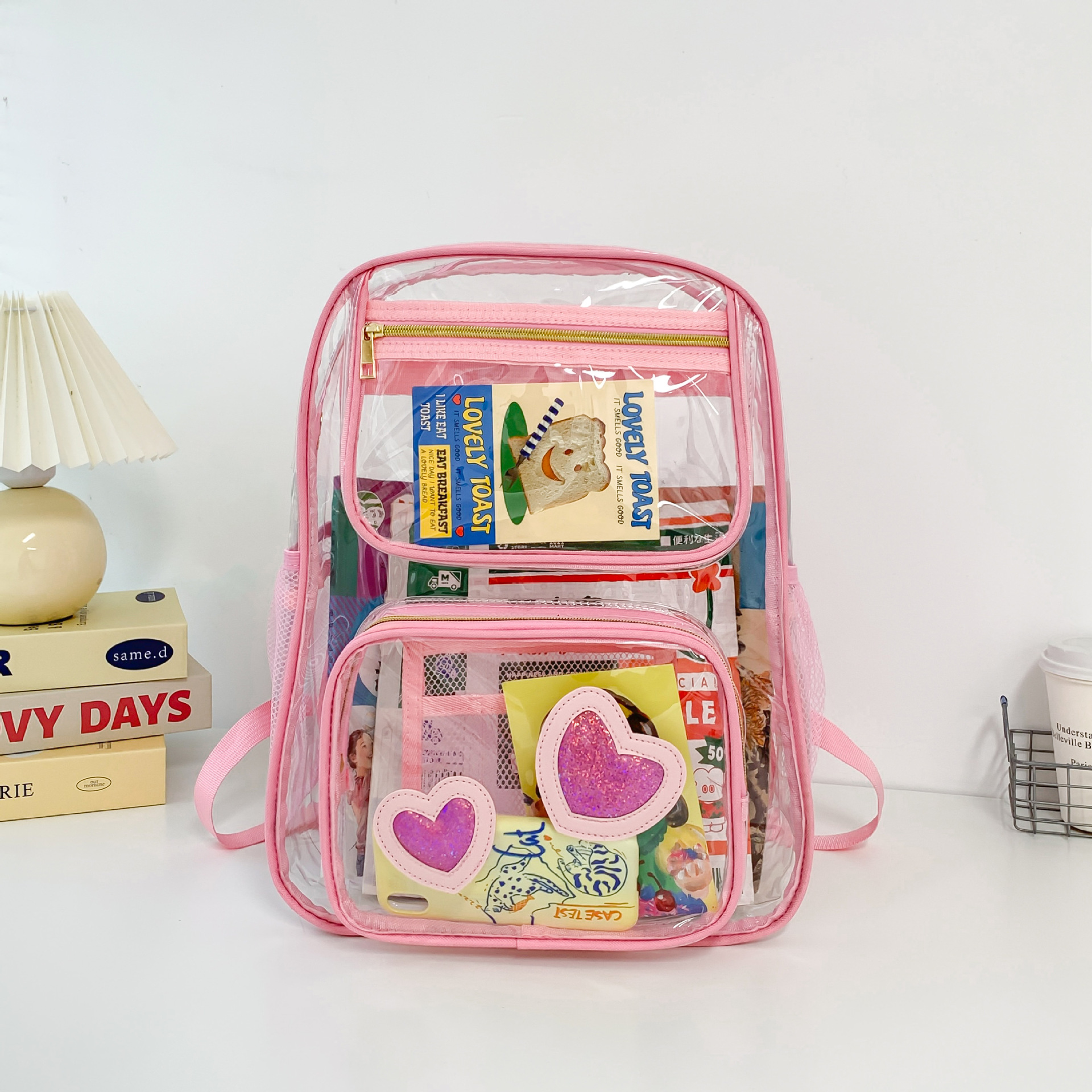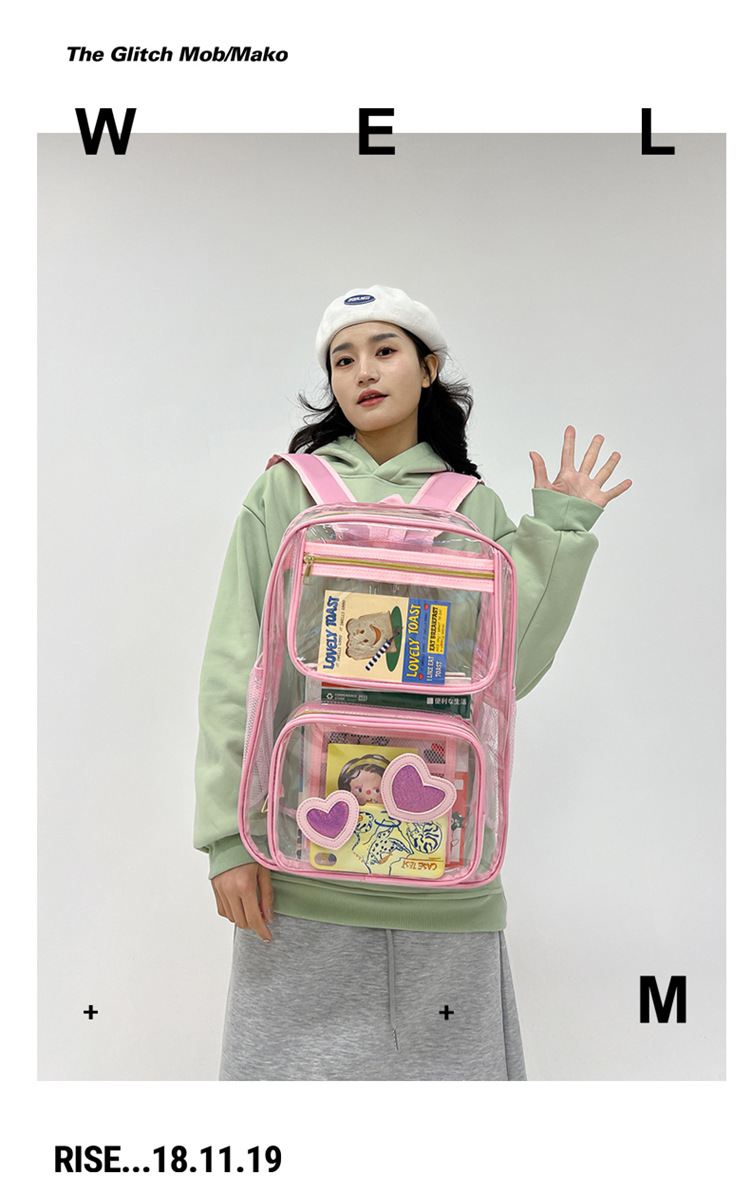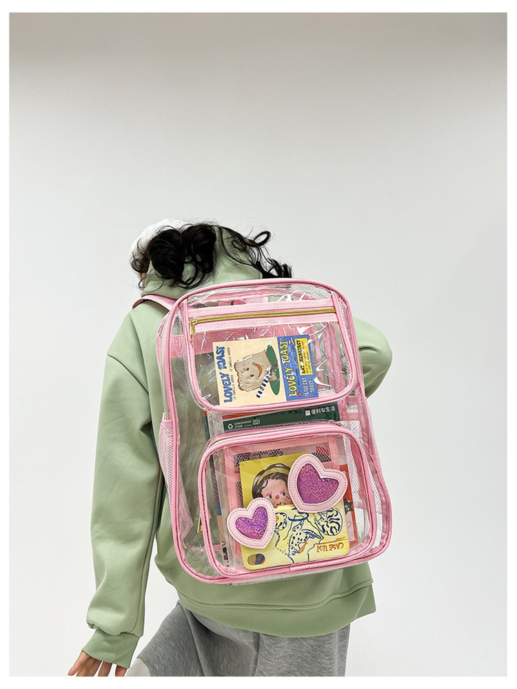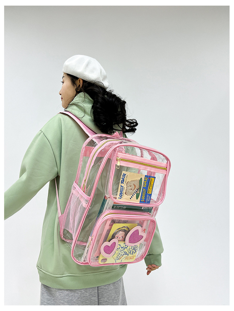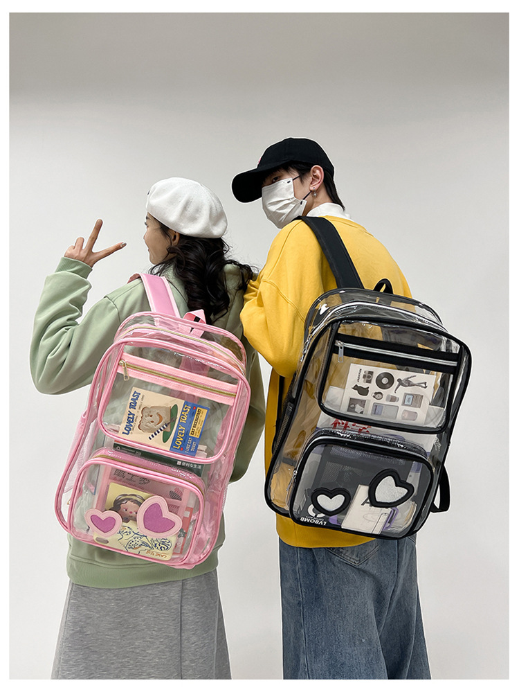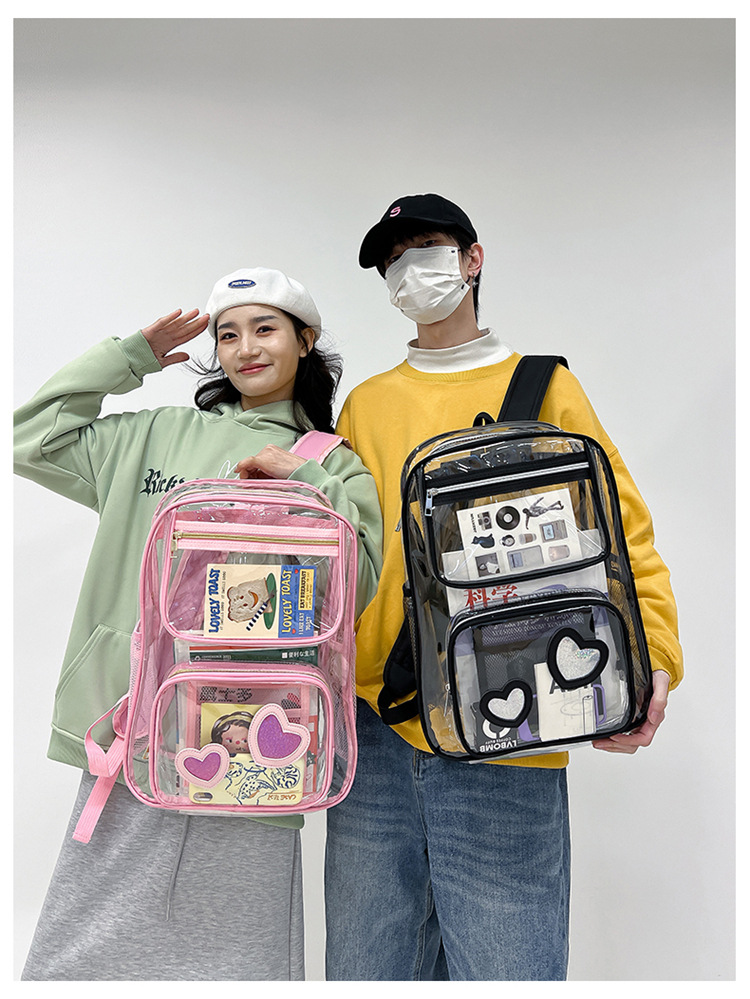 도매 아마존 PVC 투명 방수 배낭 여성 대용량 유행 배낭 중학생 캐주얼 학교 가방스토어 가기