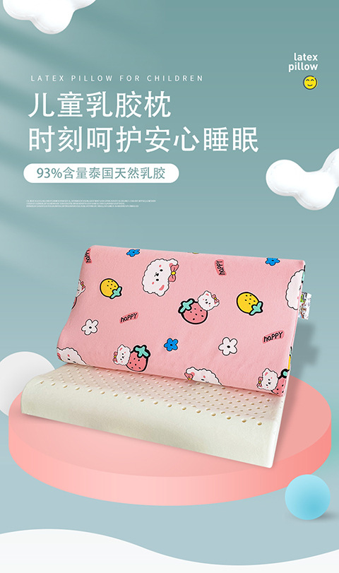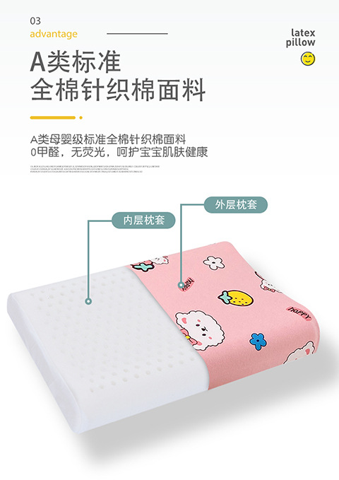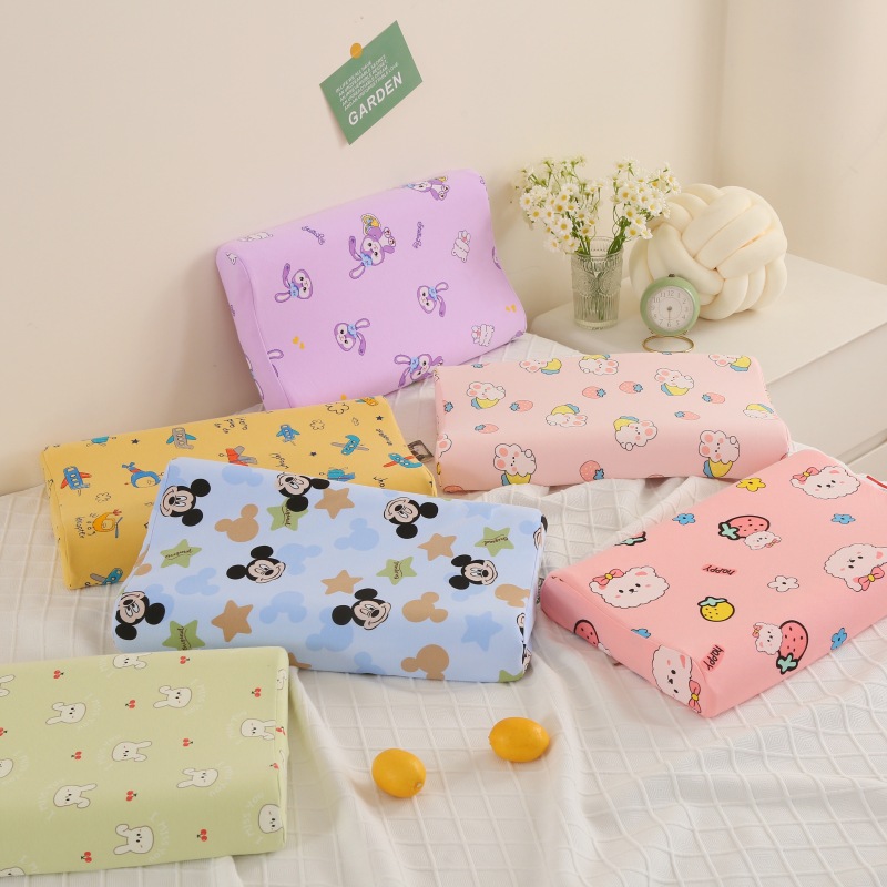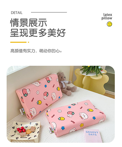 면 어린이 천연 라텍스 베개 유치원 학생 베개 목 낮잠 베개 만화 면화 베개 도매