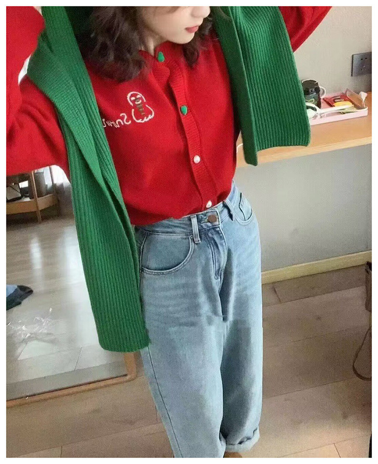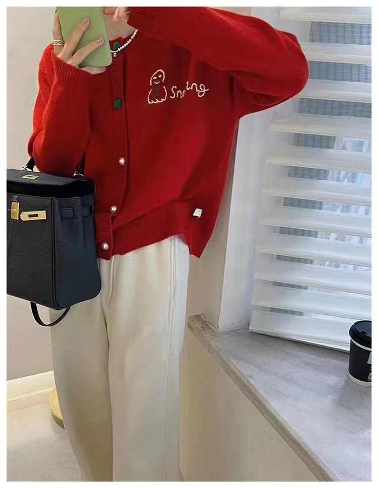 유럽 역 눈사람 자수 양모 니트 카디건 여성 사랑 버튼 스웨터 레드 크루 넥 스웨터 루즈 재킷스토어 가기