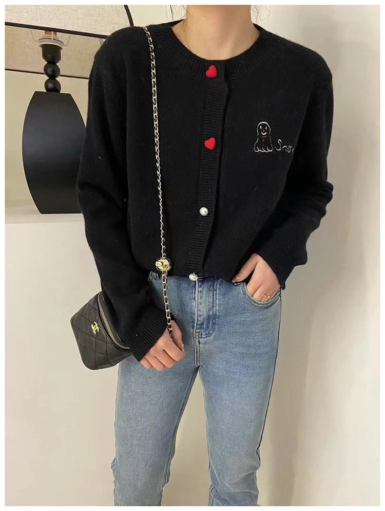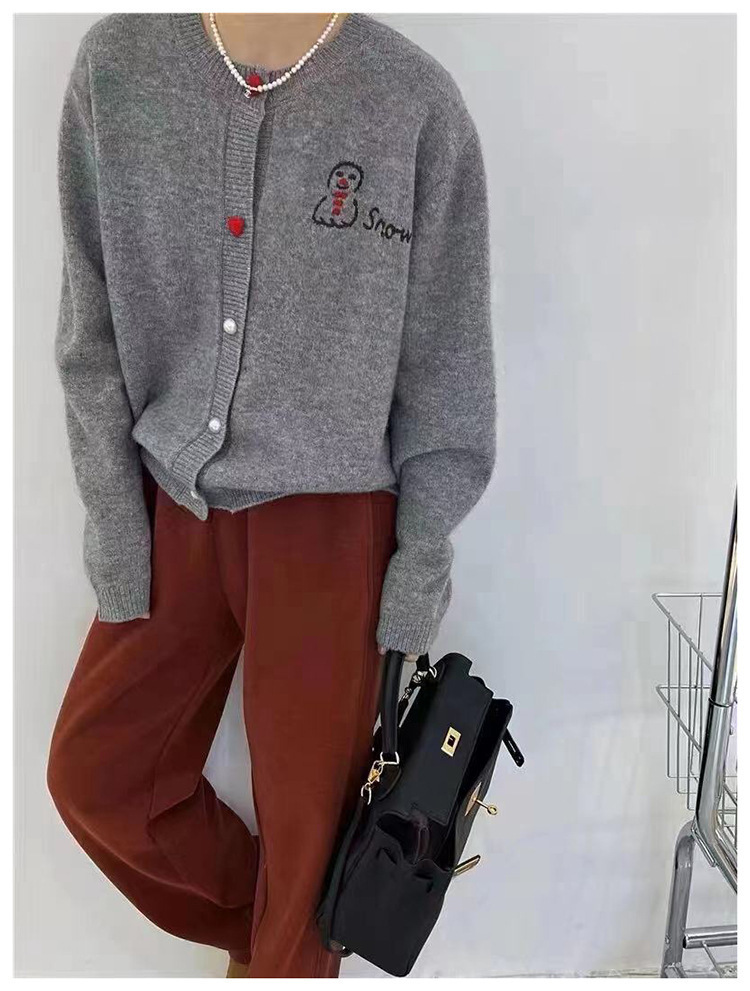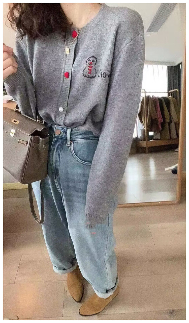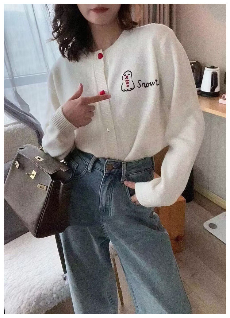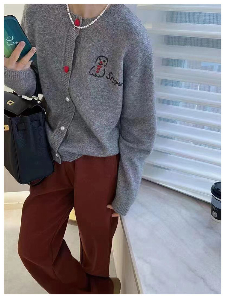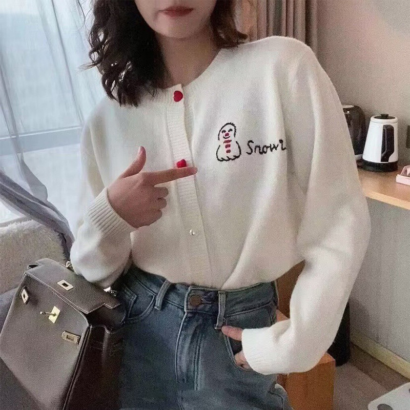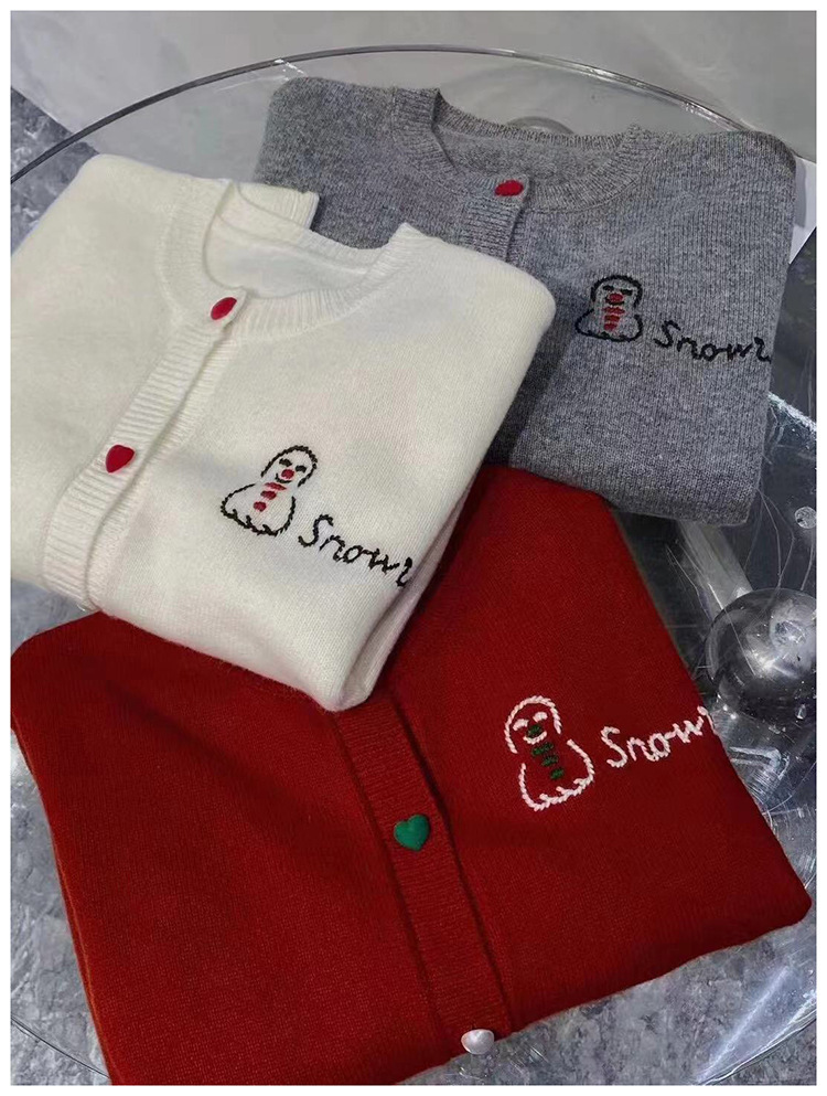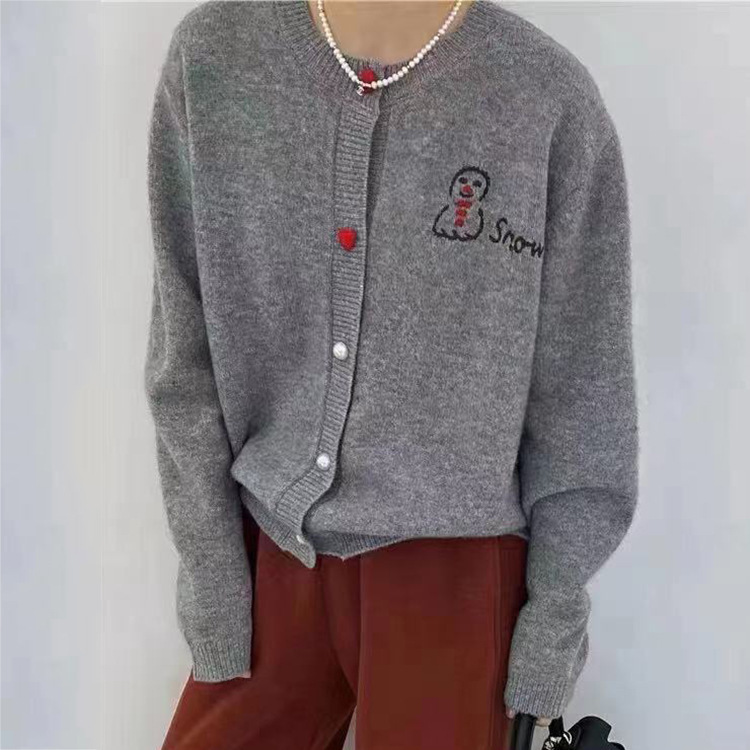 유럽 역 눈사람 자수 양모 니트 카디건 여성 사랑 버튼 스웨터 레드 크루 넥 스웨터 루즈 재킷