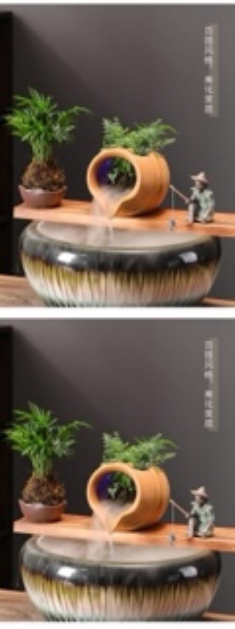 세라믹 흐르는 물 도자기 항아리 생태 항아리 아름다운 물고기 오픈 항아리 흐르는 물 장식품 간단한 액세서리 안뜰 정원 조경스토어 가기