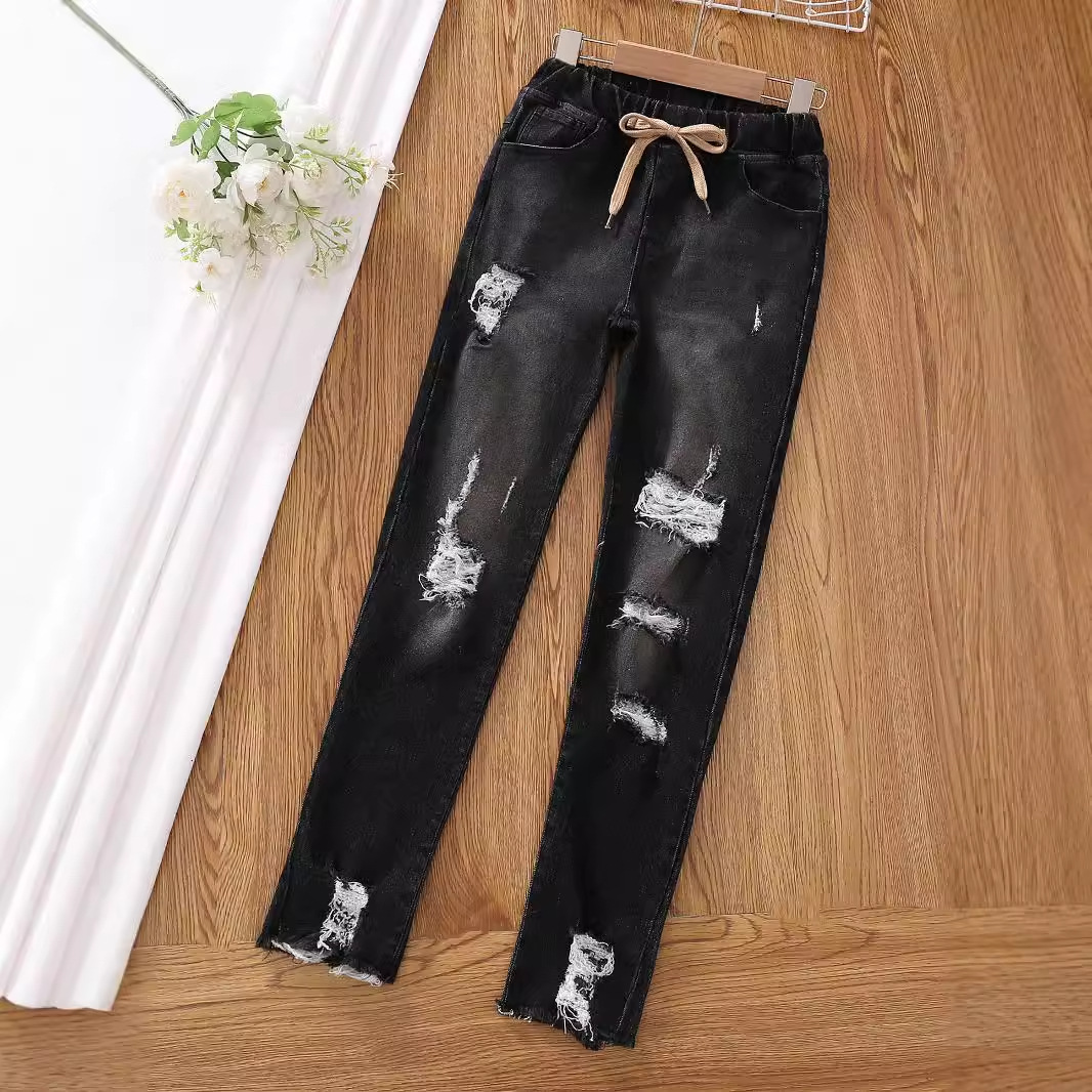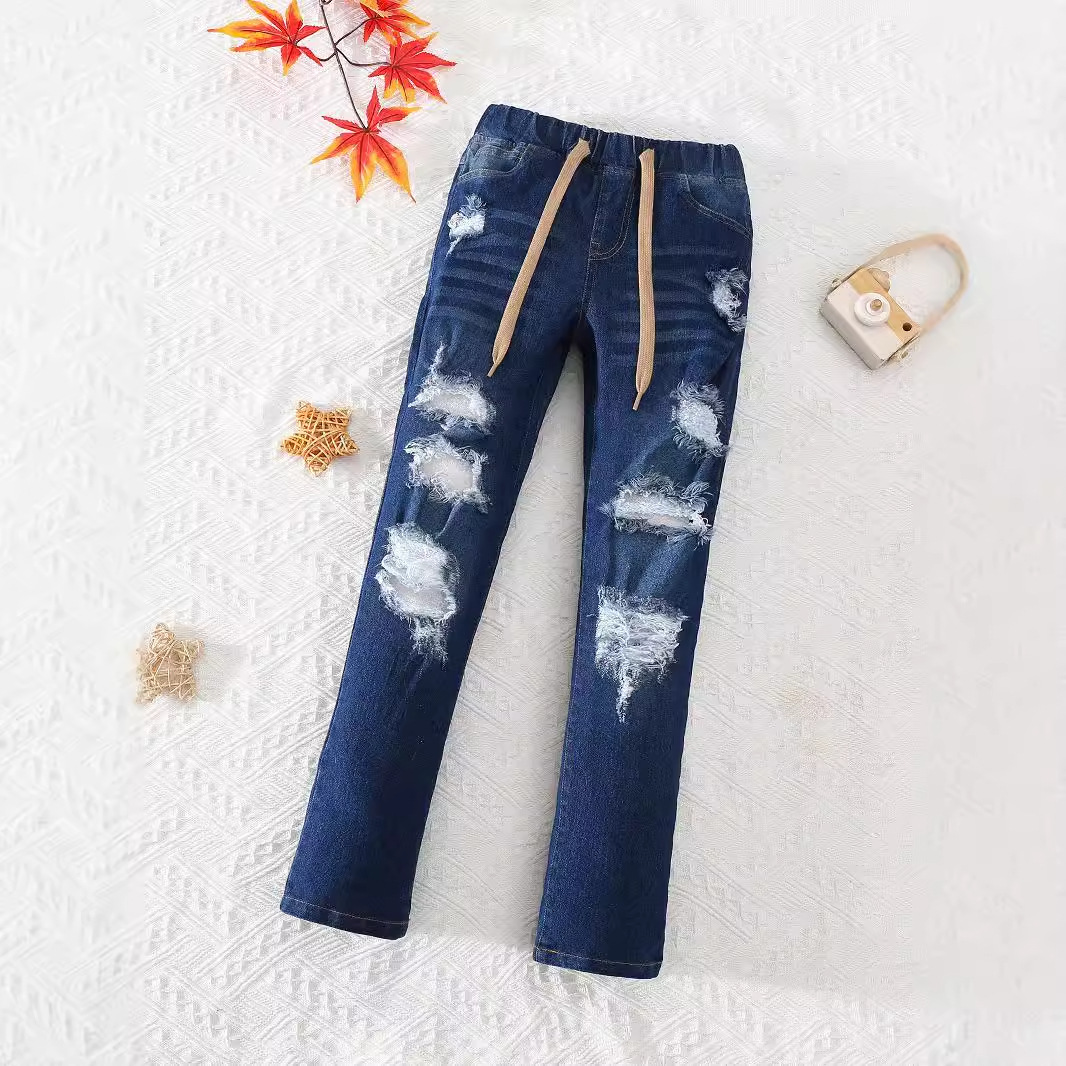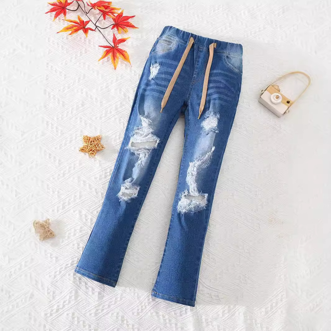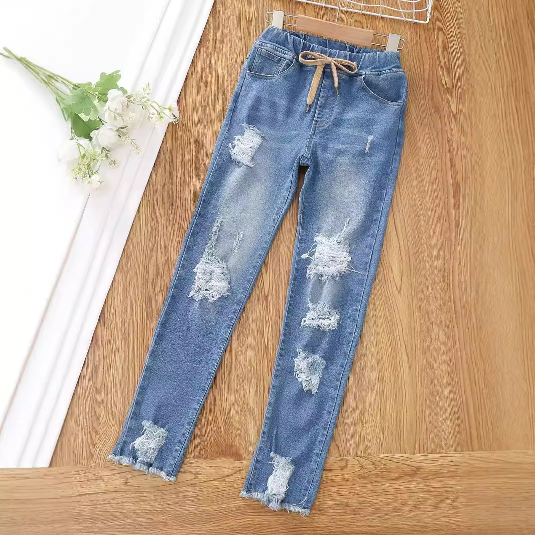 유럽과 미국의 대외 무역 아동복 새로운 소녀들이 꽉 찢어진 청바지 가짜 드로 스트링 술 레깅스 캐주얼스토어 가기