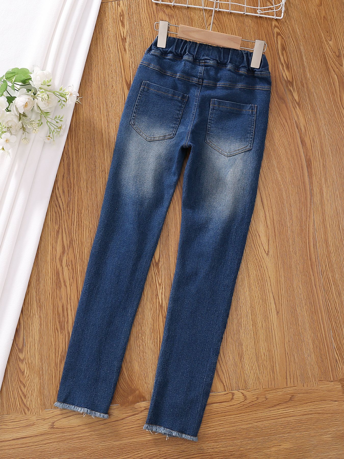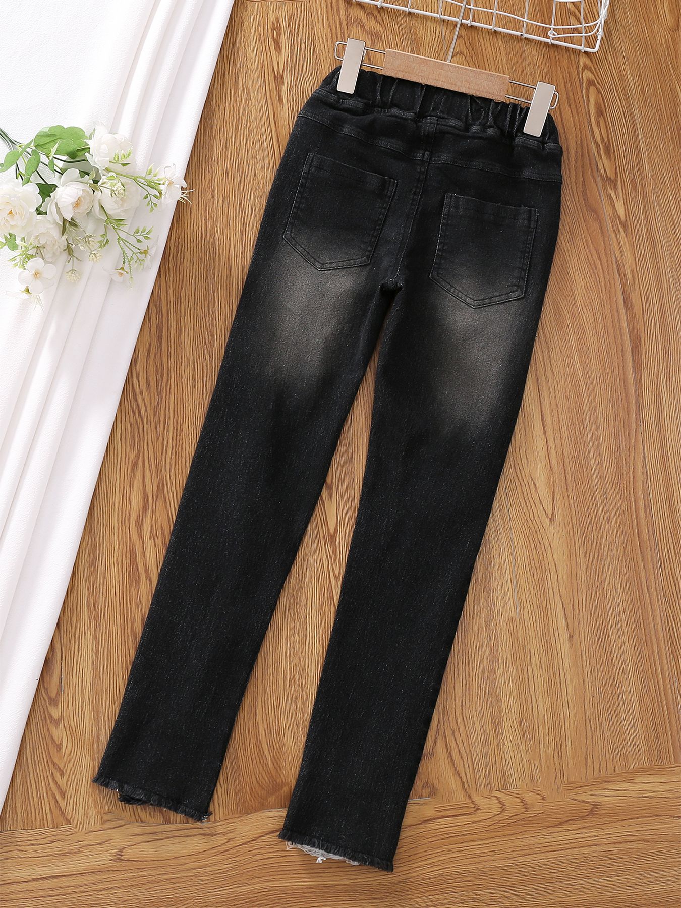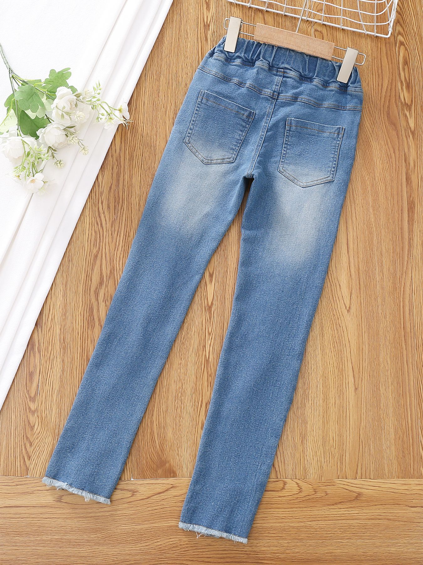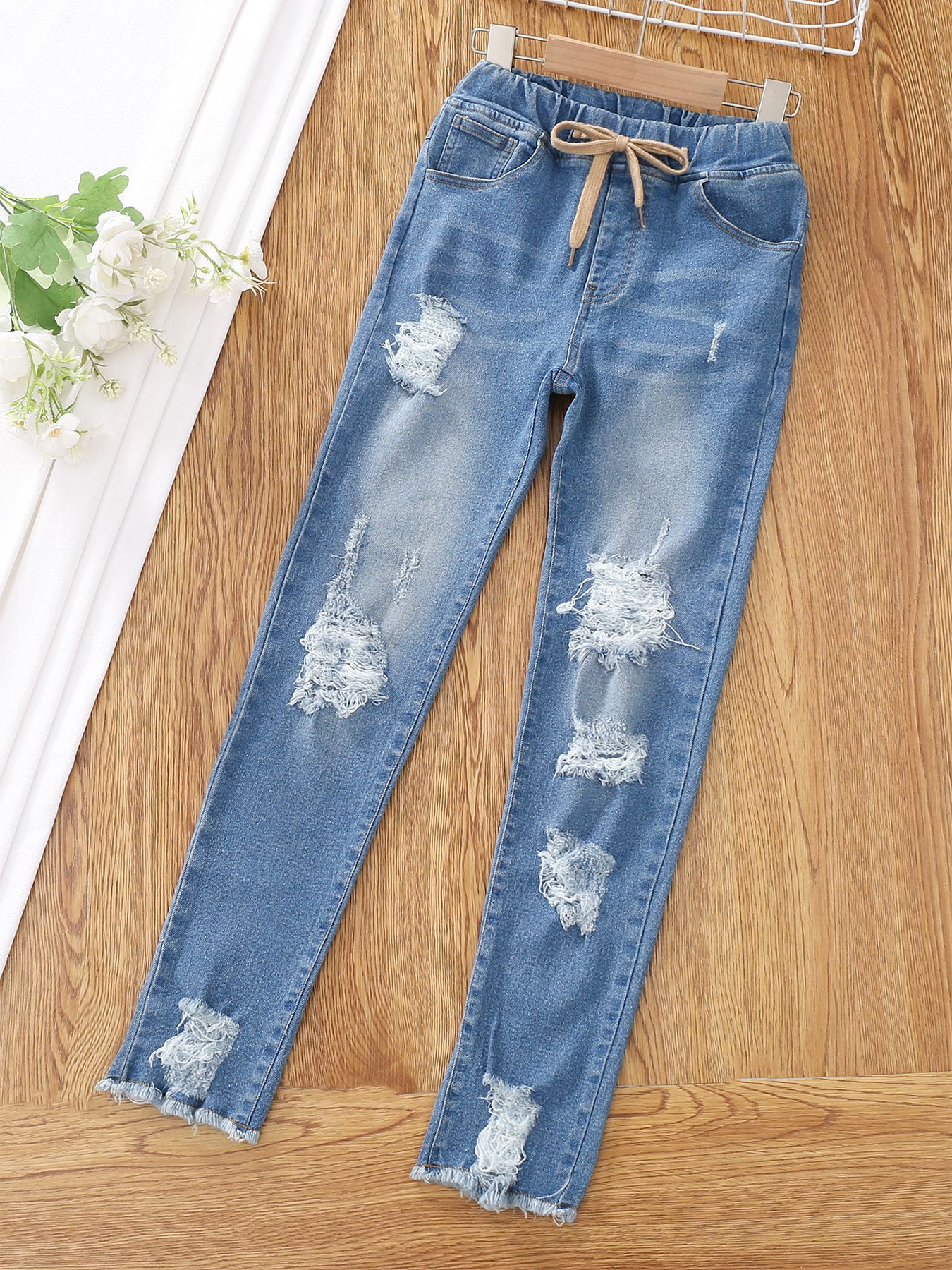 유럽과 미국의 대외 무역 아동복 새로운 소녀들이 꽉 찢어진 청바지 가짜 드로 스트링 술 레깅스 캐주얼스토어 가기