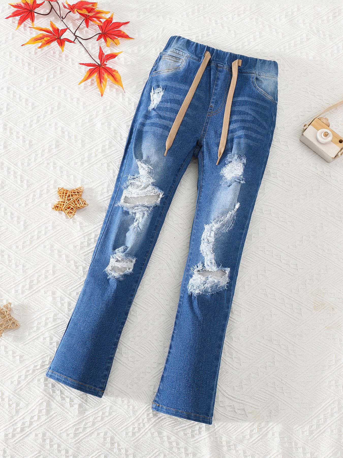 유럽과 미국의 대외 무역 아동복 새로운 소녀들이 꽉 찢어진 청바지 가짜 드로 스트링 술 레깅스 캐주얼