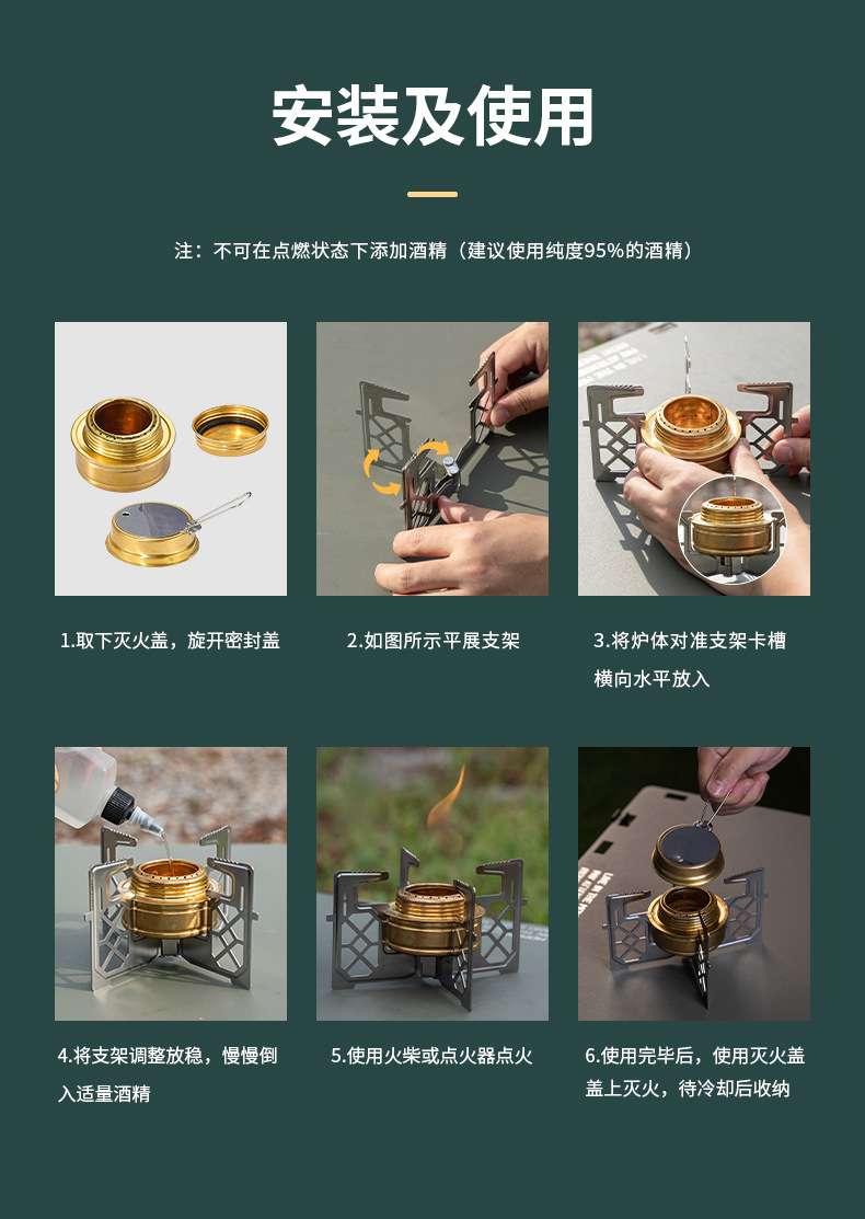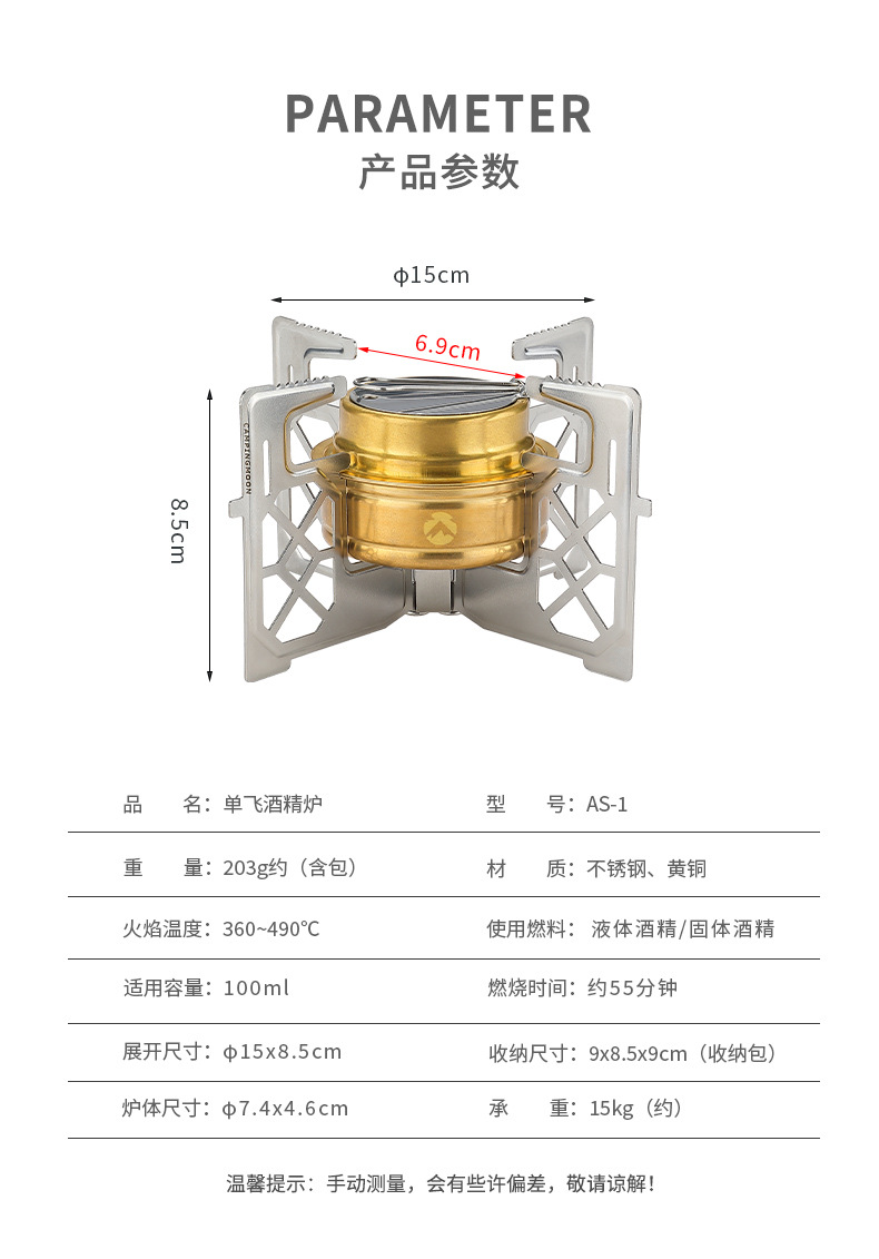 Coleman AS-1 단일 비행 알코올 스토브 야외 작은 피크닉 장비 황동 스토브 액체 알코올 스토브 휴대용 스토브