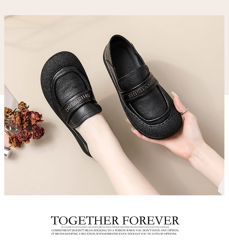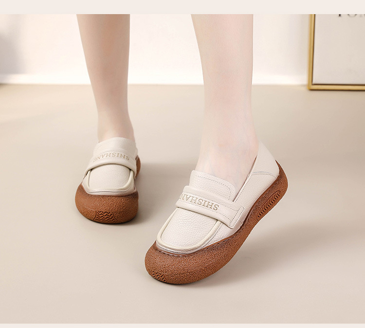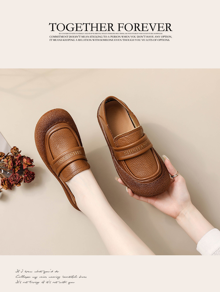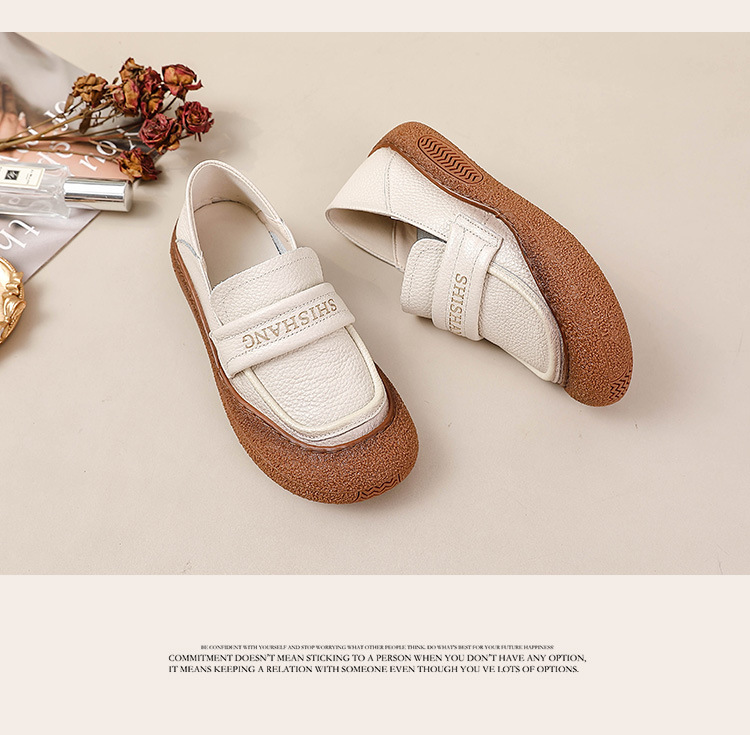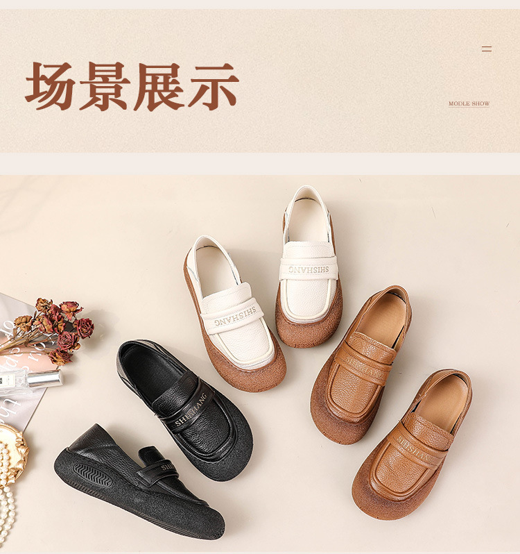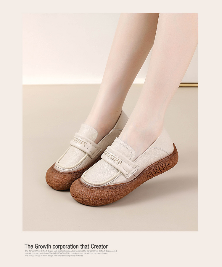 정품 가죽 2025 여성화 레트로 신상품 미끄럼 방지 플랫 솔 부드러운 밑창 편안한 초부드러운 가죽 신발 1층 소가죽 엄마화스토어 가기