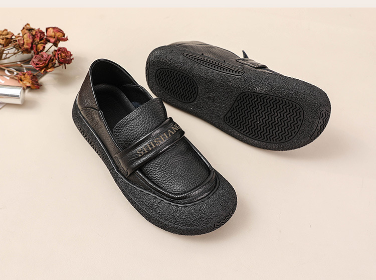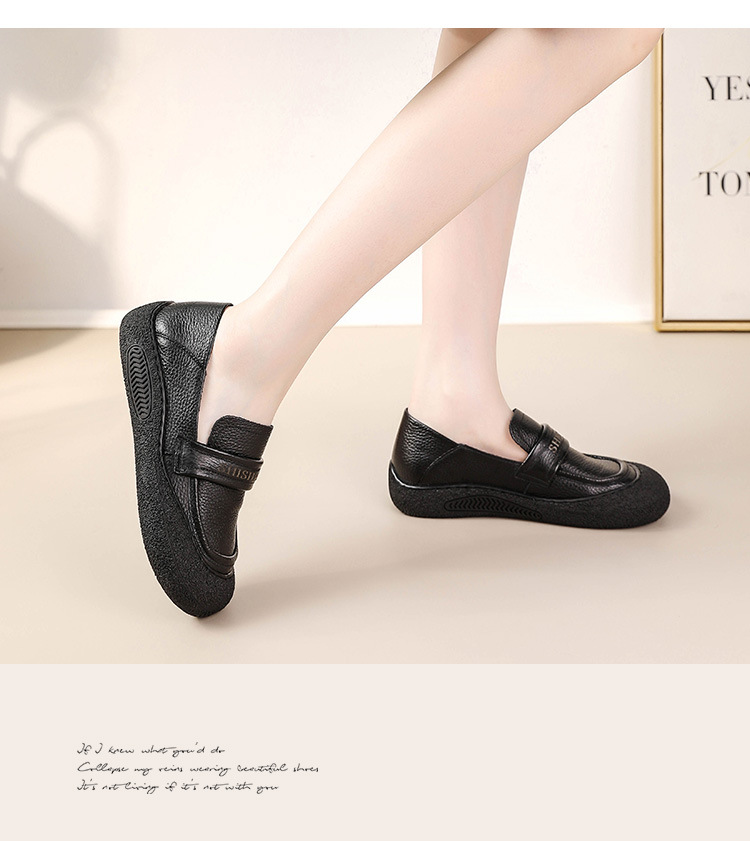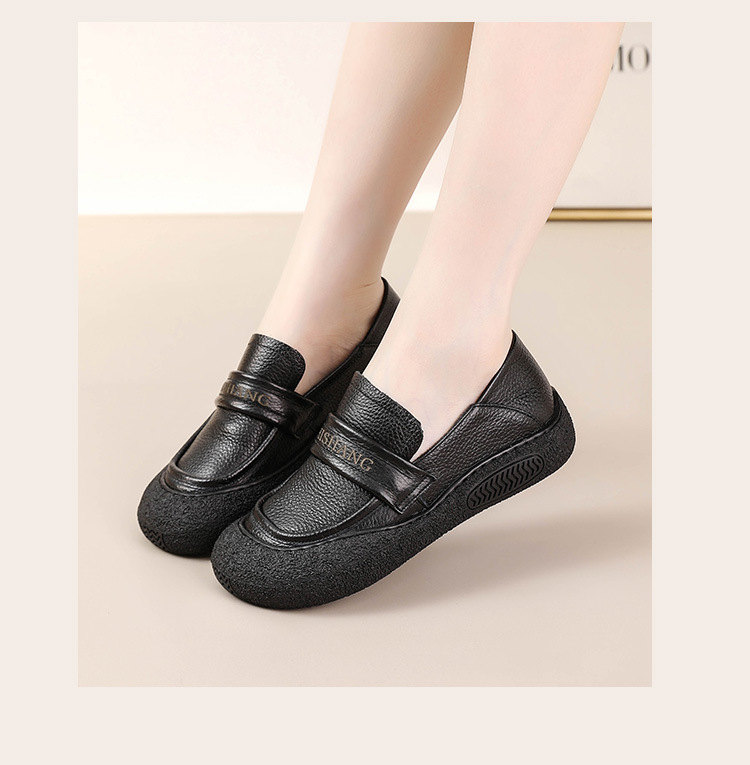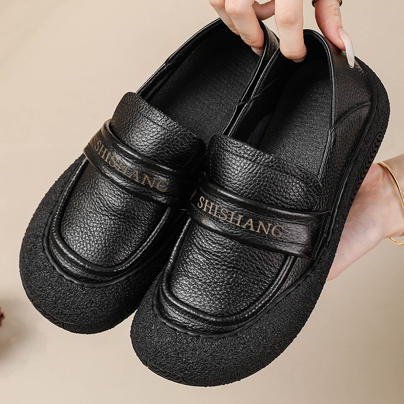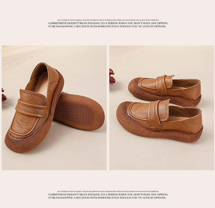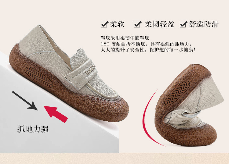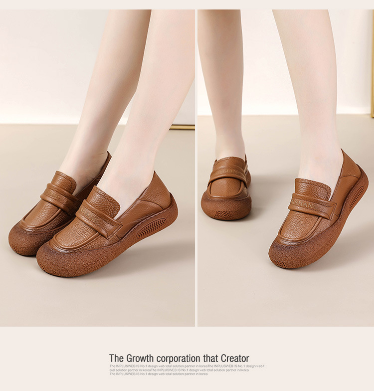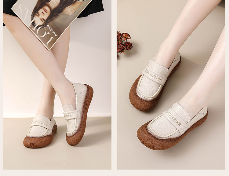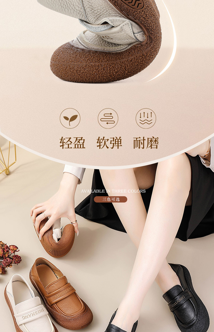 정품 가죽 2025 여성화 레트로 신상품 미끄럼 방지 플랫 솔 부드러운 밑창 편안한 초부드러운 가죽 신발 1층 소가죽 엄마화