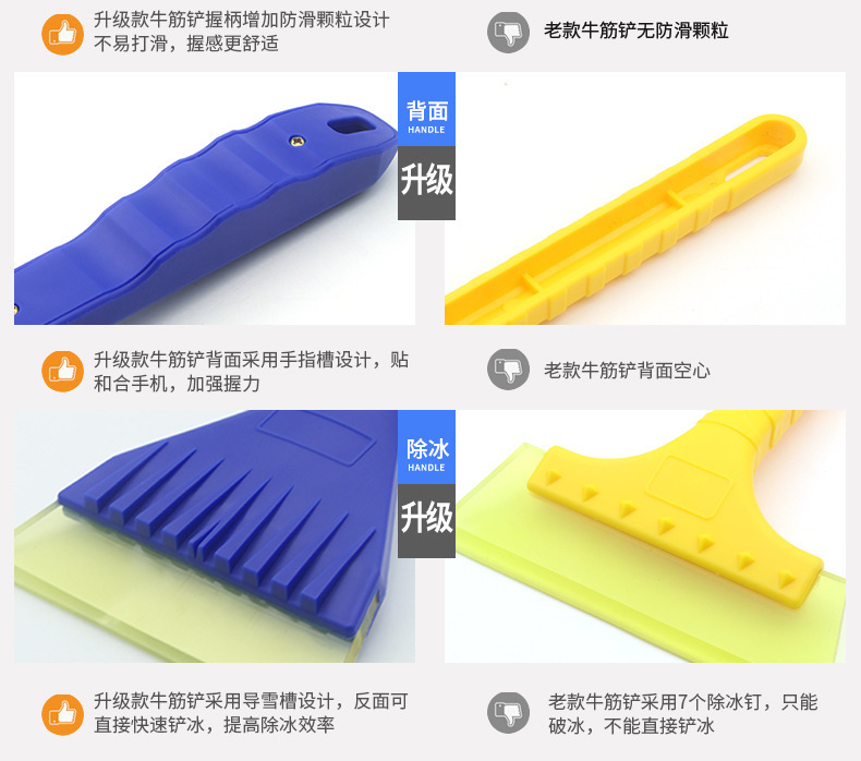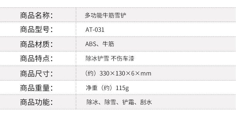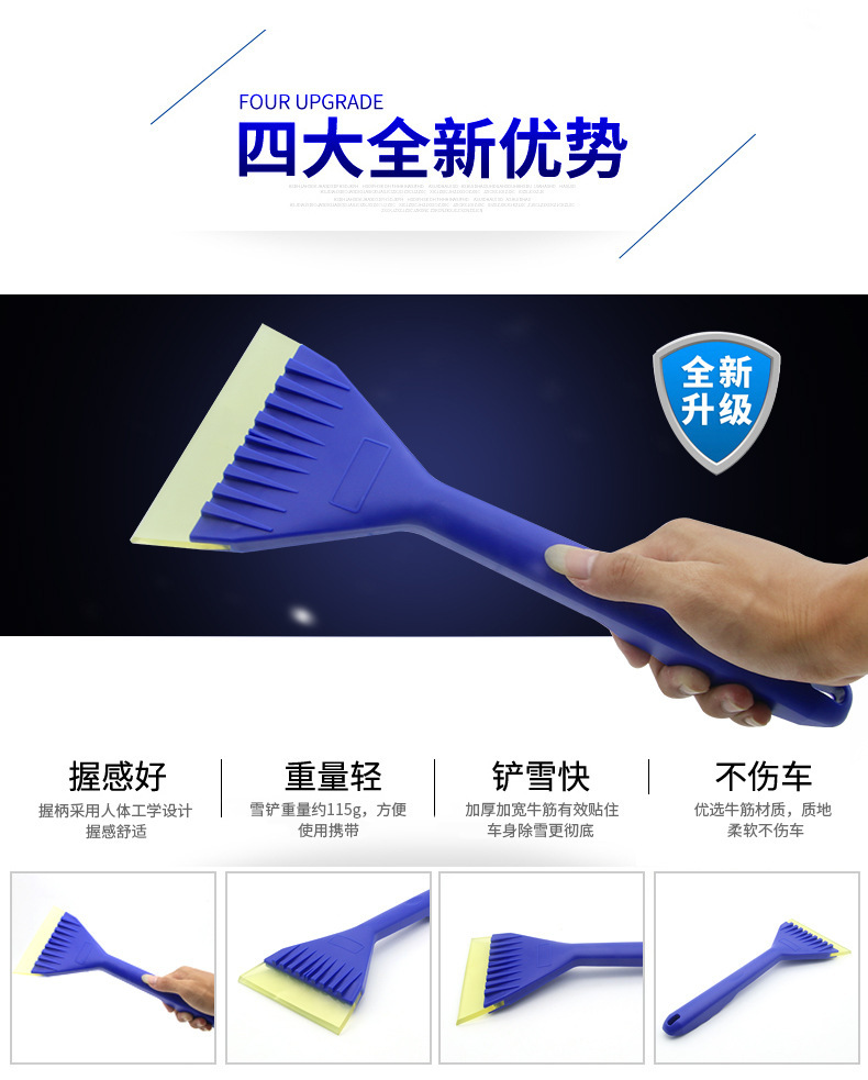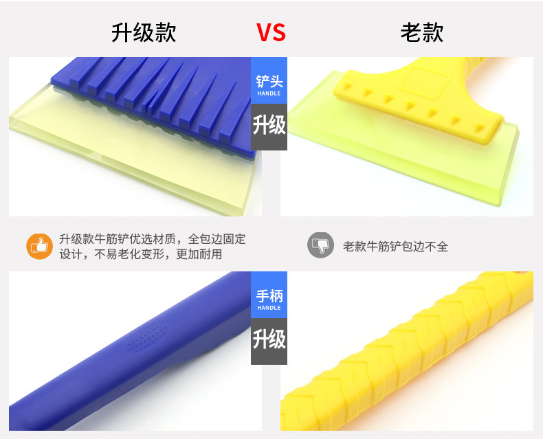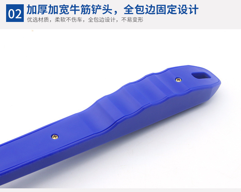 1、此款牛筋铲头除雪铲/冰雪铲,牛筋铲头,既能对车玻璃清理,也能对车身清理,基本不会对车身产生划痕。