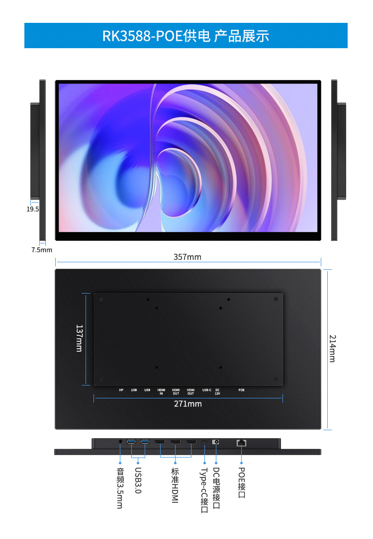 원조 공장에서 맞춤 제작한 18.5inch 고화질 휴대용 모니터 컴퓨터 노트북 휴대폰 확장용 스위치 보조 화면