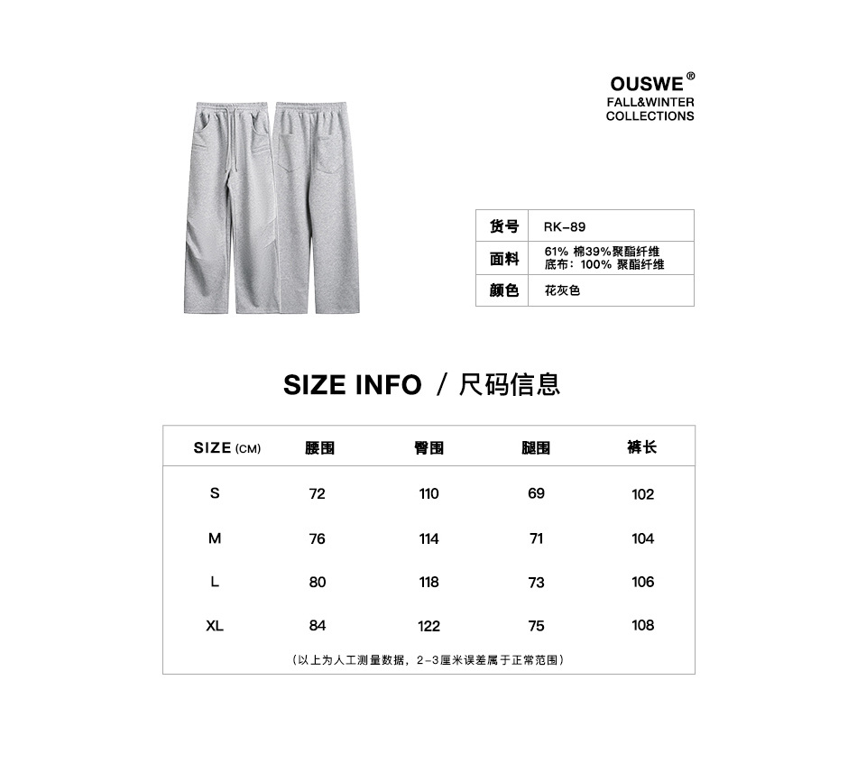 OUSWE 일본식 복고풍 심플 디자인 센스 스포츠 바지 남성용 바지 루즈 스트레이트 남성용 캐주얼 바지 RK89스토어 가기