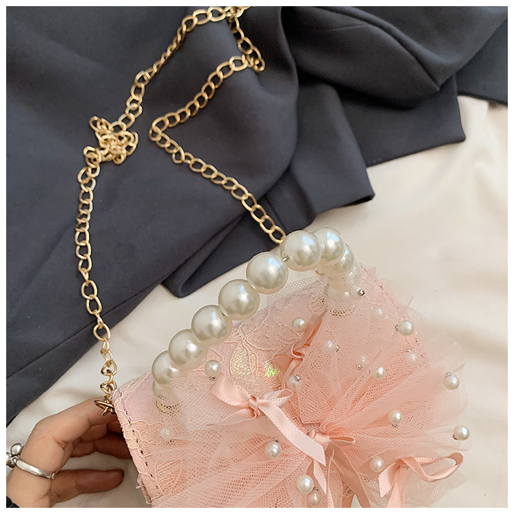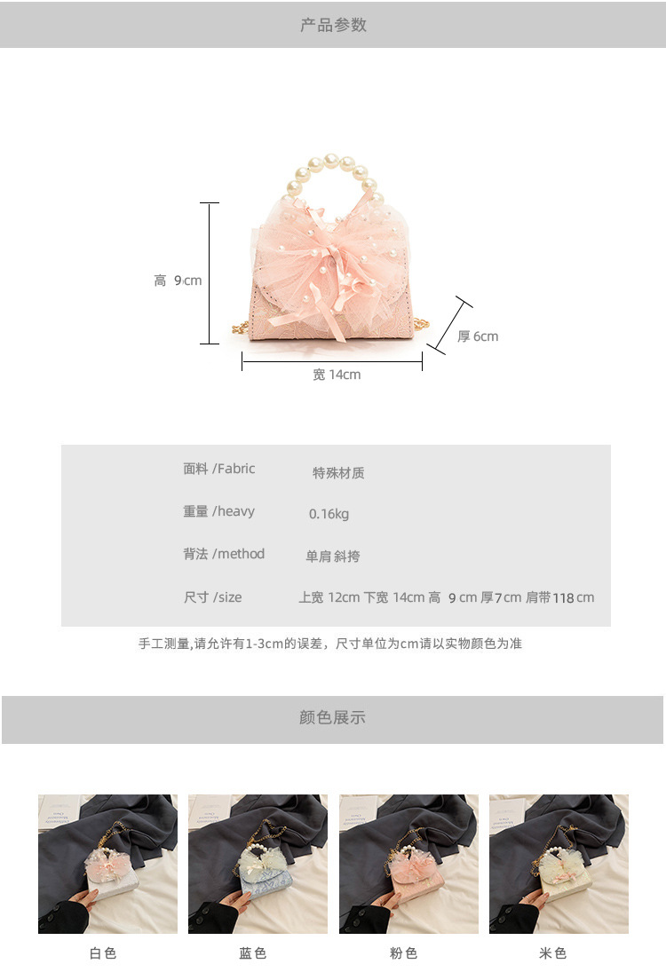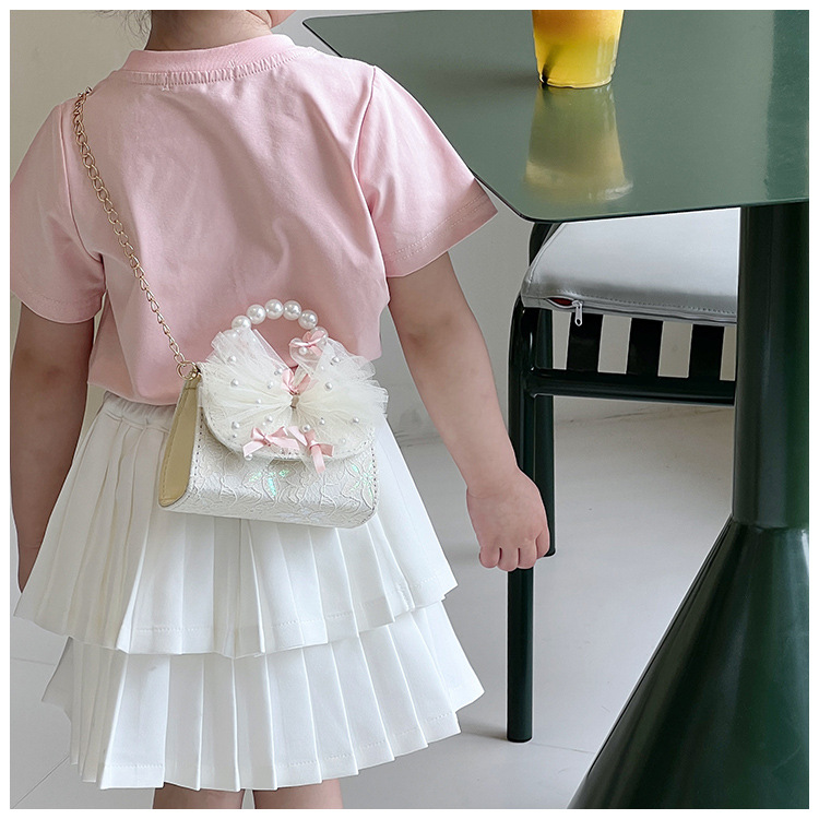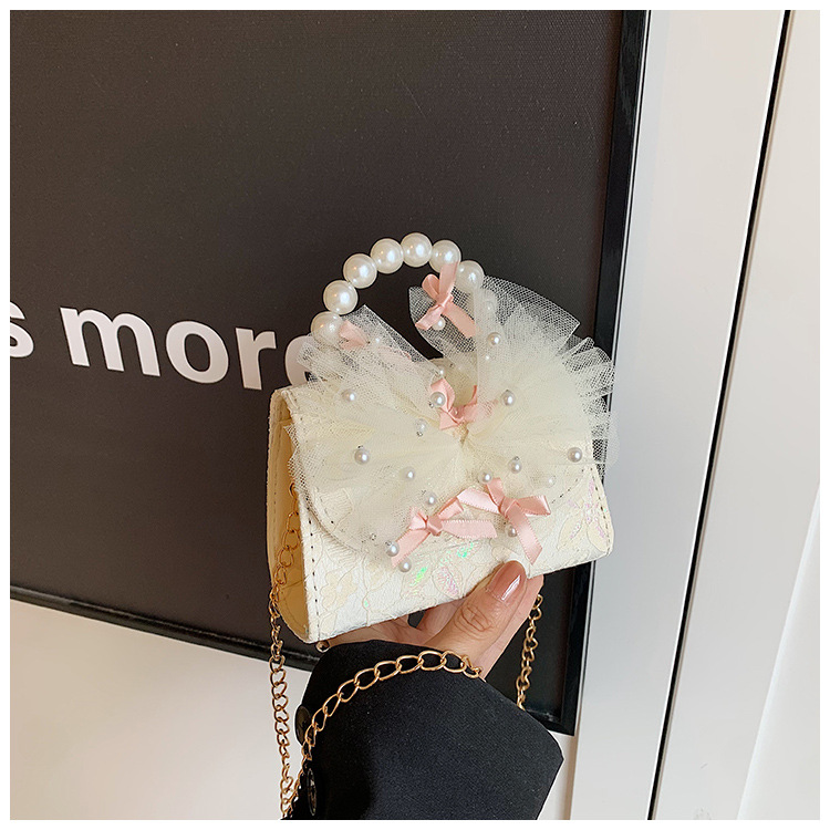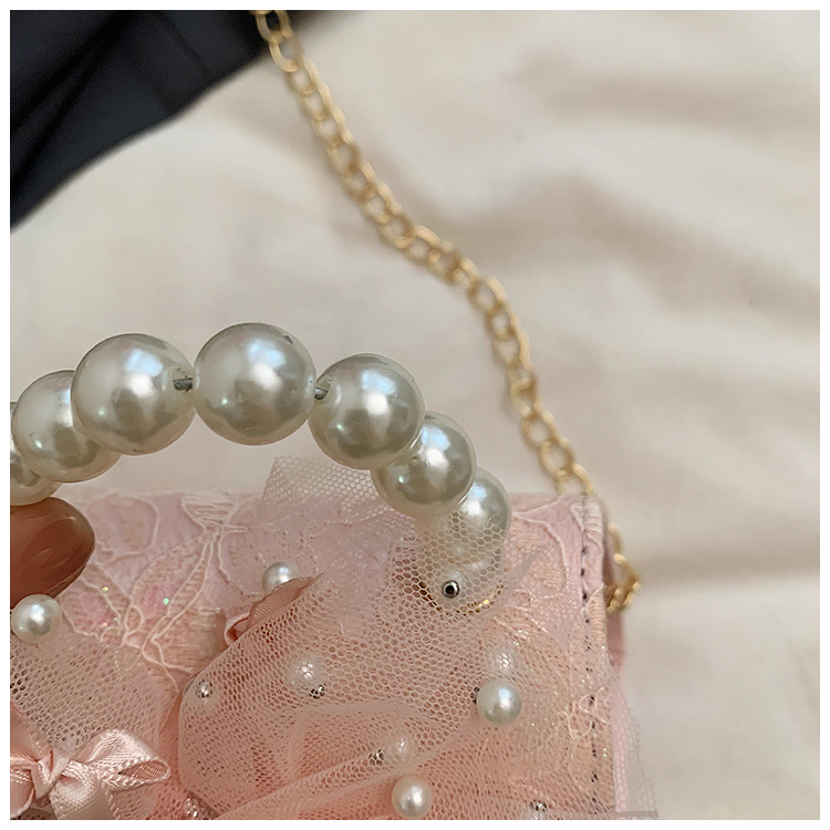 샤넬 공주 체인 어린이 가방 진주 휴대용 소녀 어깨 가방 레이스 활 소녀 크로스 바디 백스토어 가기