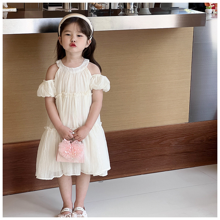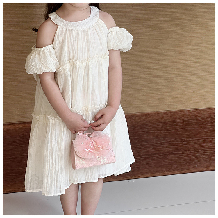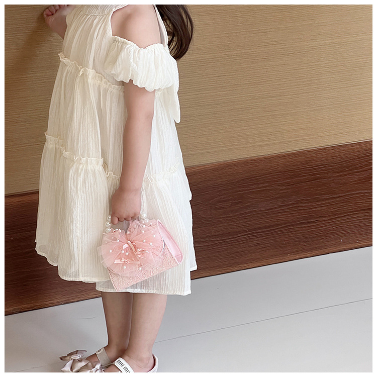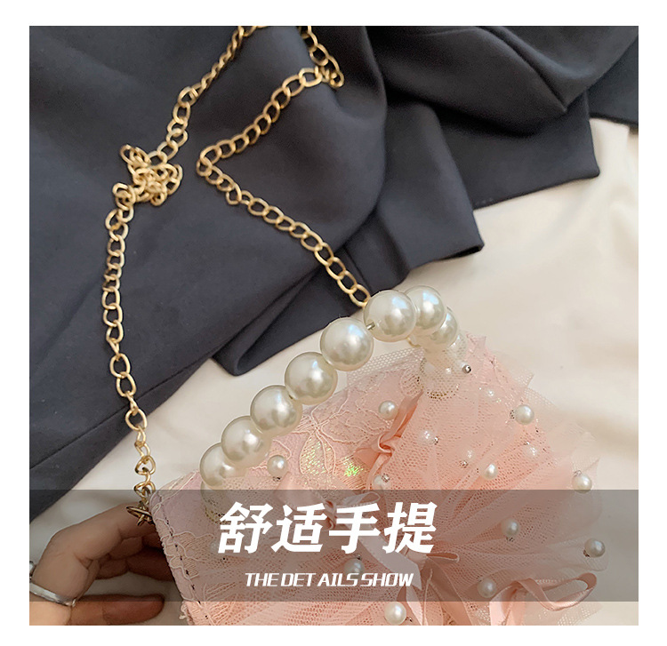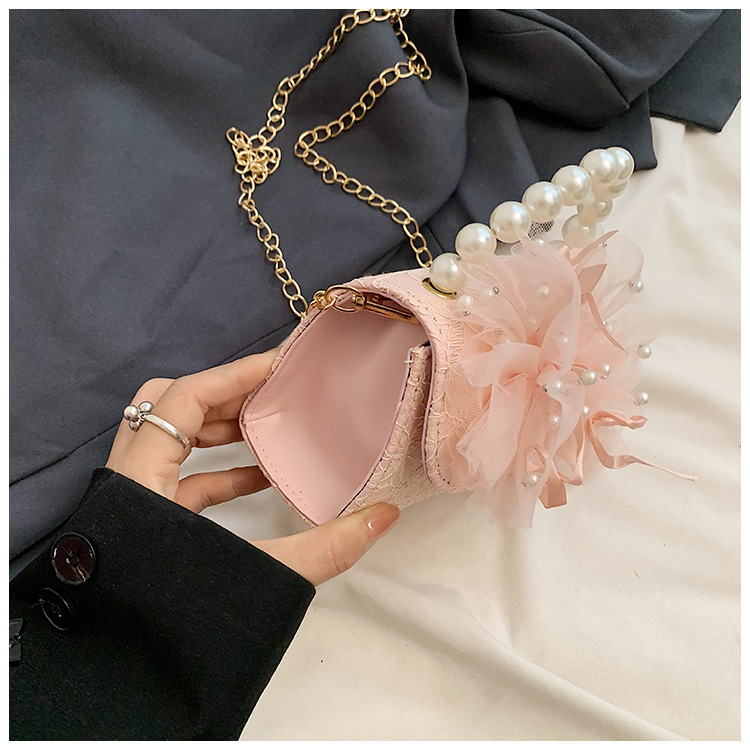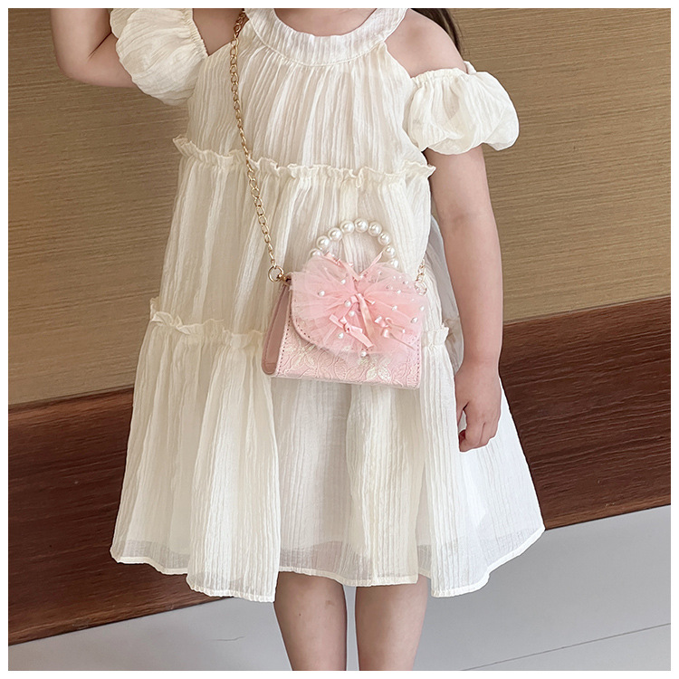 샤넬 공주 체인 어린이 가방 진주 휴대용 소녀 어깨 가방 레이스 활 소녀 크로스 바디 백스토어 가기