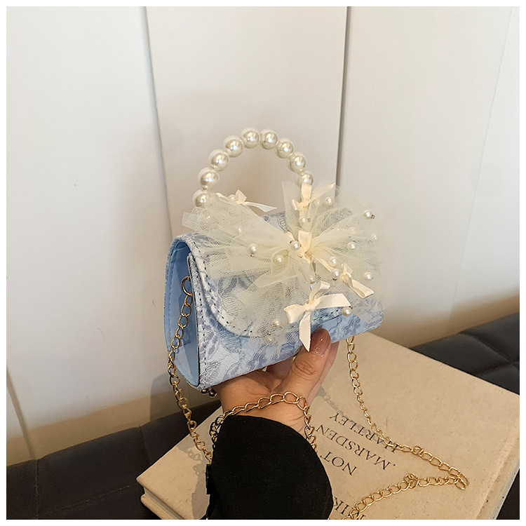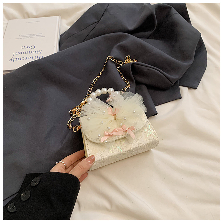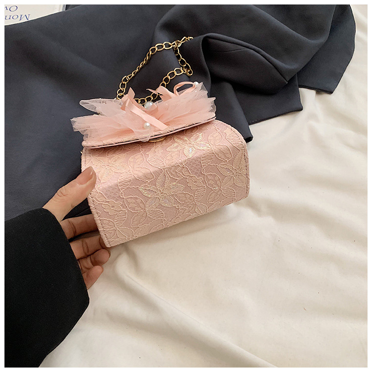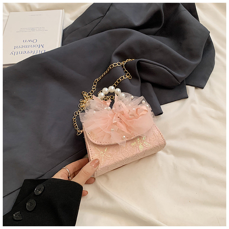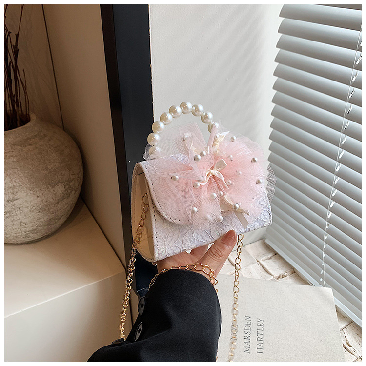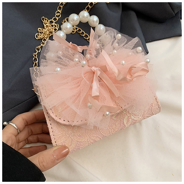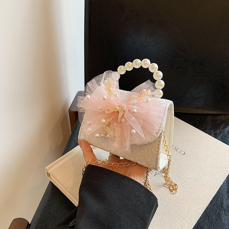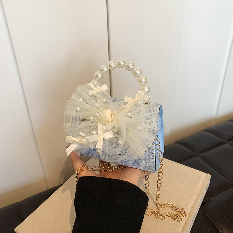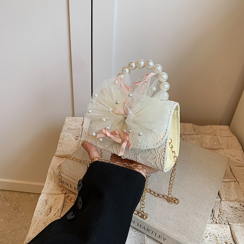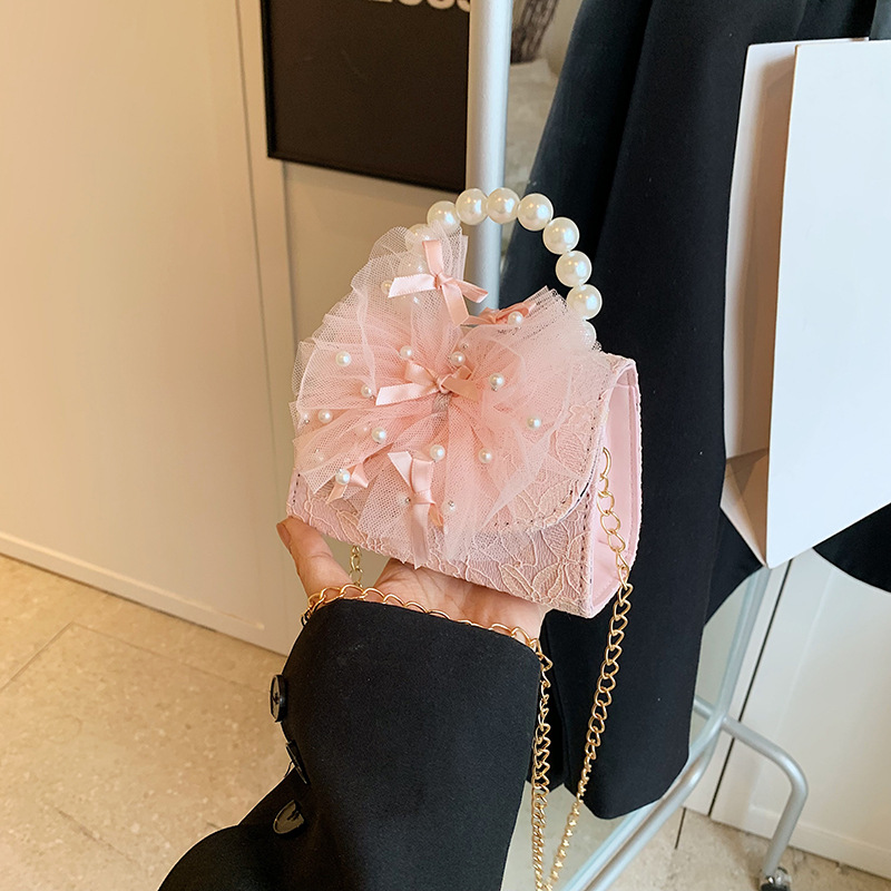 샤넬 공주 체인 어린이 가방 진주 휴대용 소녀 어깨 가방 레이스 활 소녀 크로스 바디 백