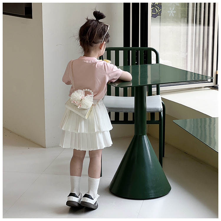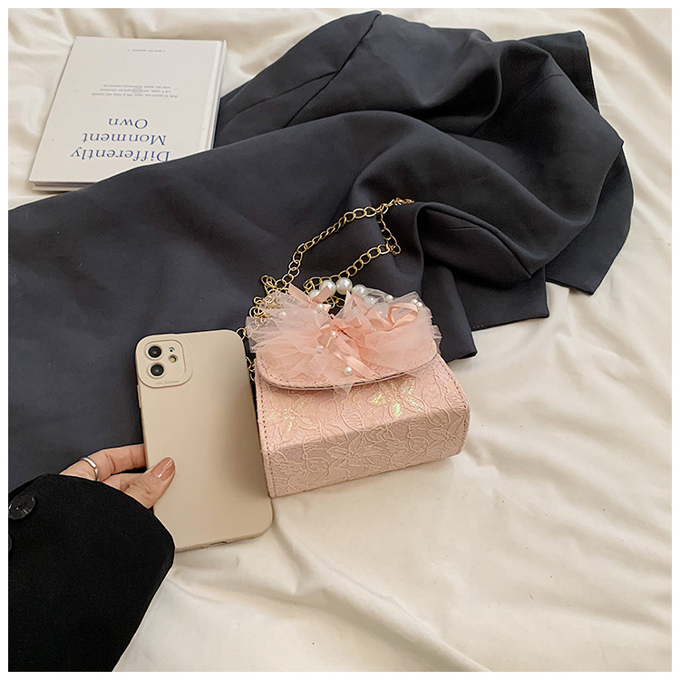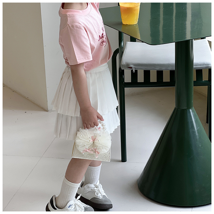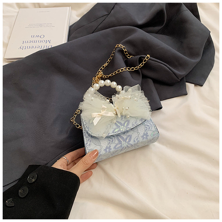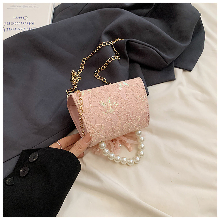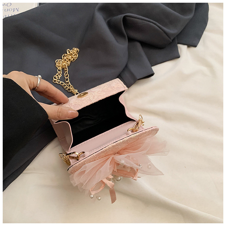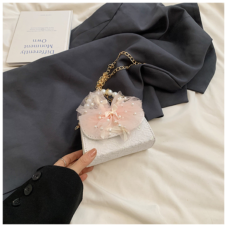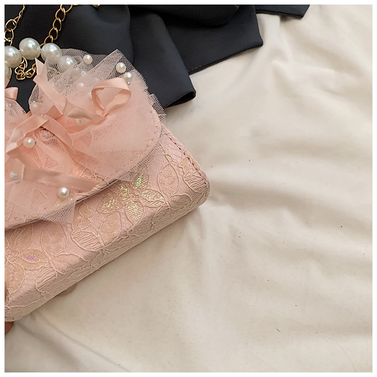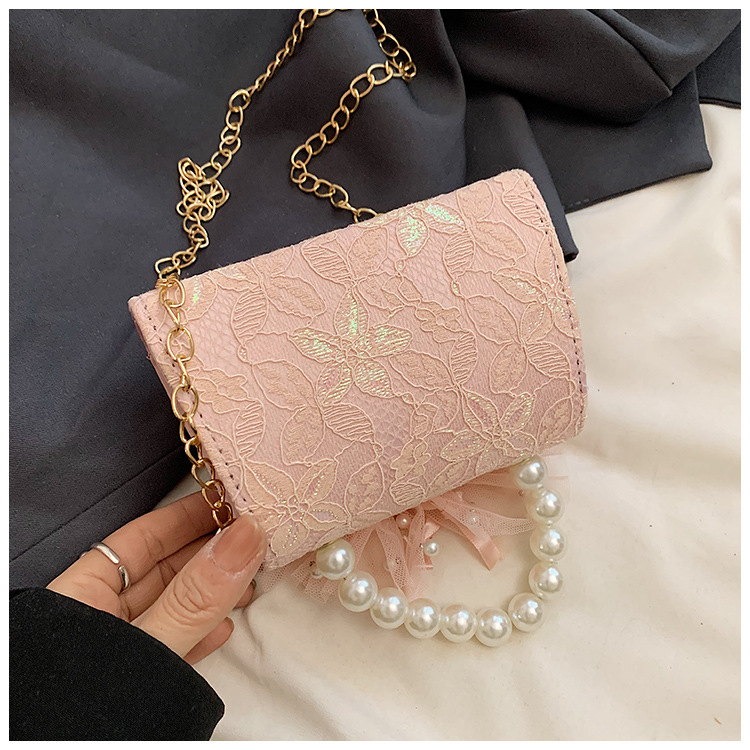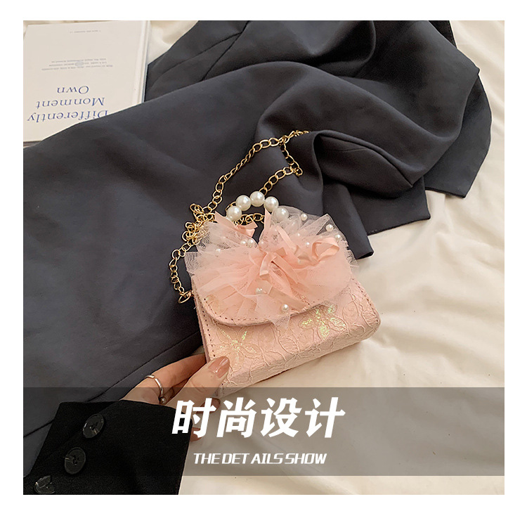 샤넬 공주 체인 어린이 가방 진주 휴대용 소녀 어깨 가방 레이스 활 소녀 크로스 바디 백