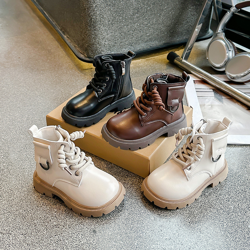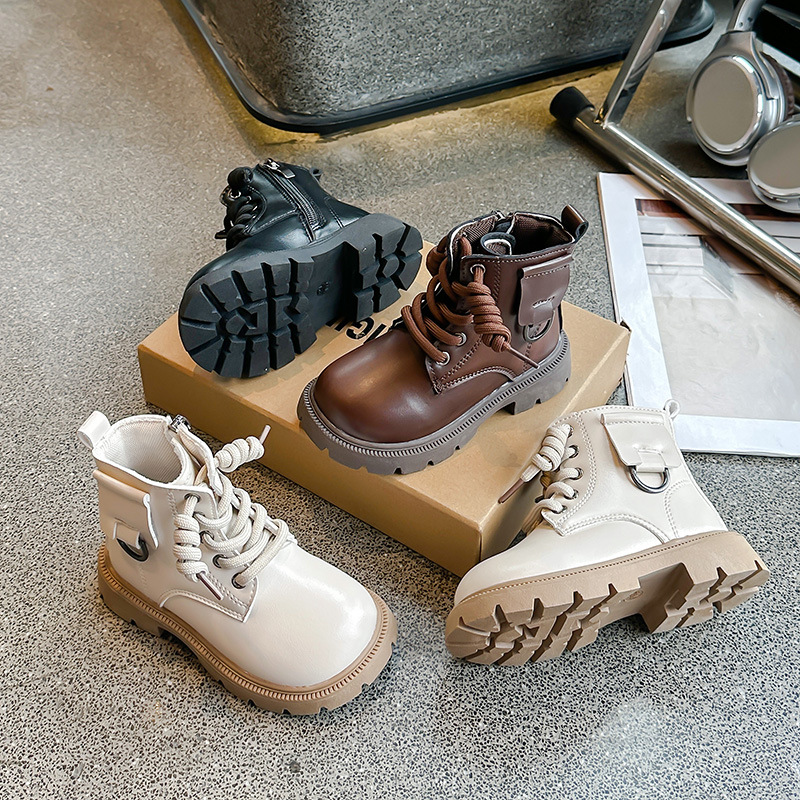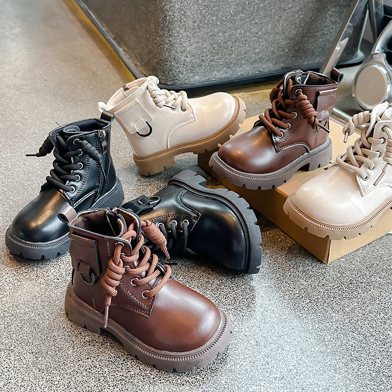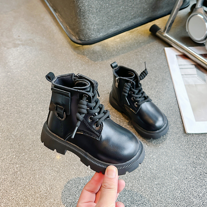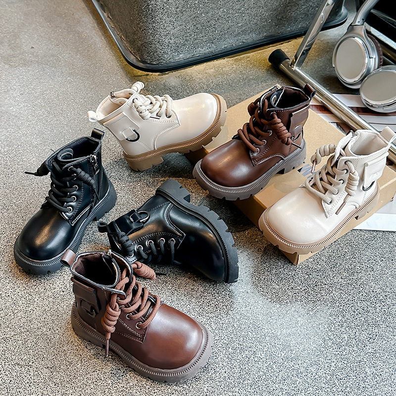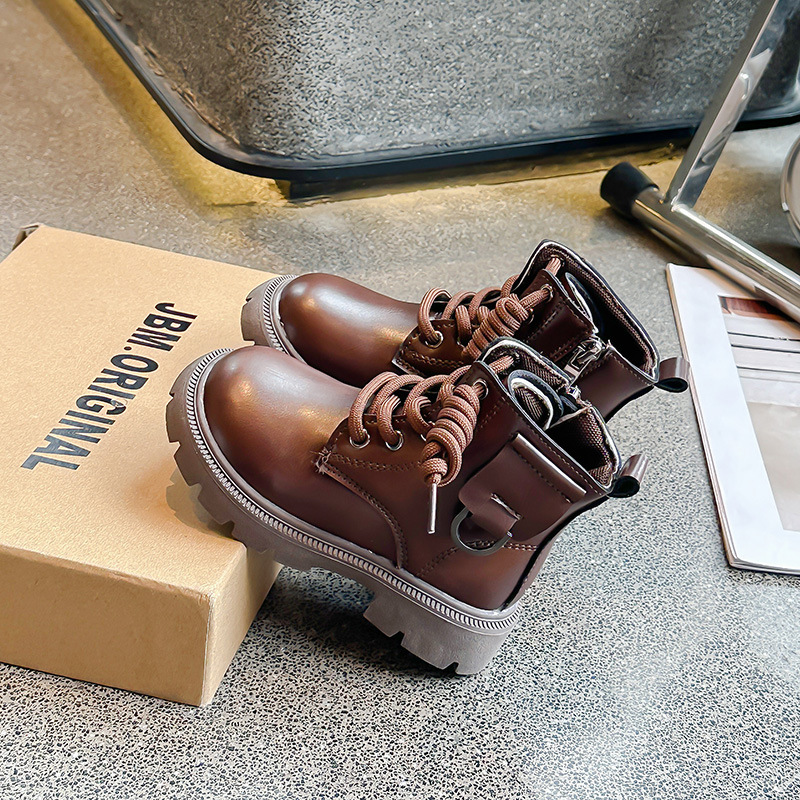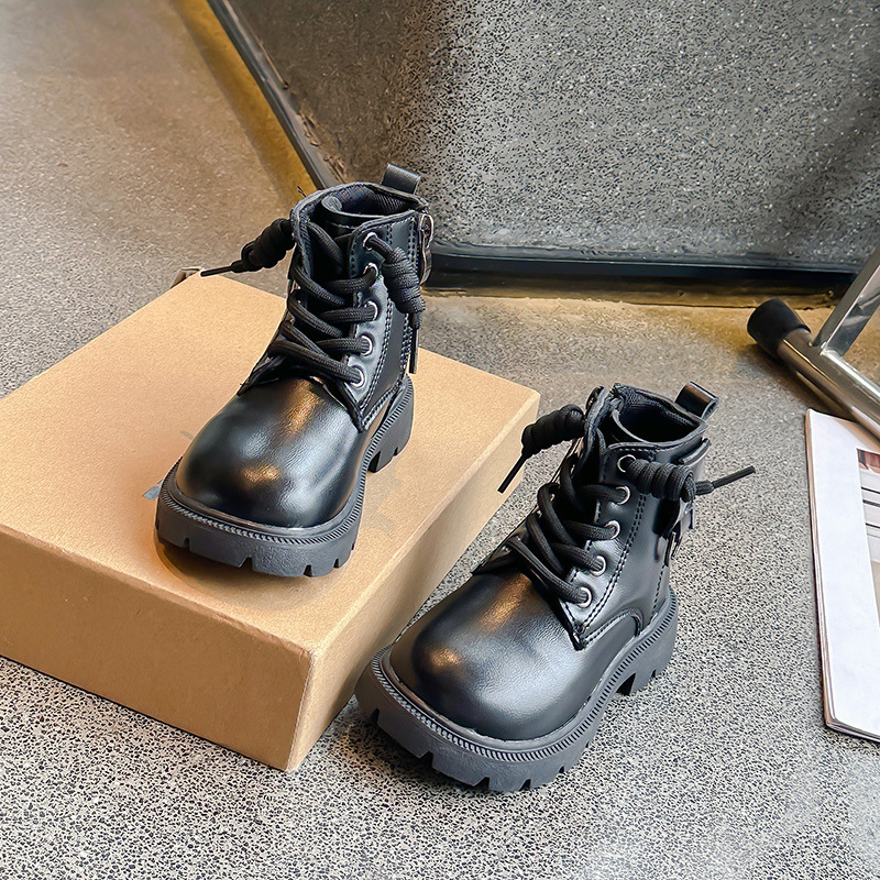 어린이 영국 스타일 마틴 2024 가을과 겨울 새로운 패션 소녀 조커 작은 가죽 부츠 소년 잘 생긴 싱글 부츠