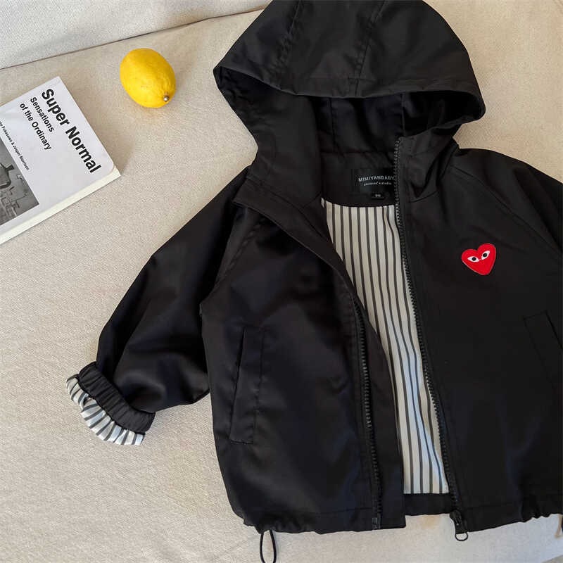 어린이 코트 2024 가을 소년과 소녀 후드 지퍼 재킷 아기 트렌디 브랜드 러브 재킷 윈드브레이커