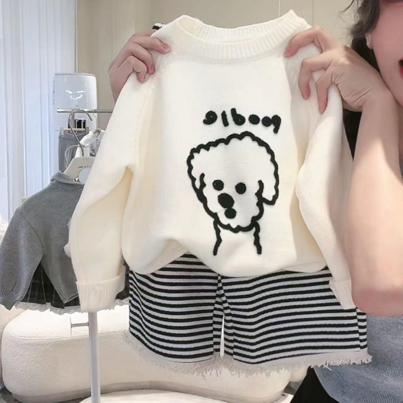 여자 가을 새로운 스웨터와 바지 세트 아기 소녀 만화 탑과 줄무늬 바지 투피스 세트스토어 가기
