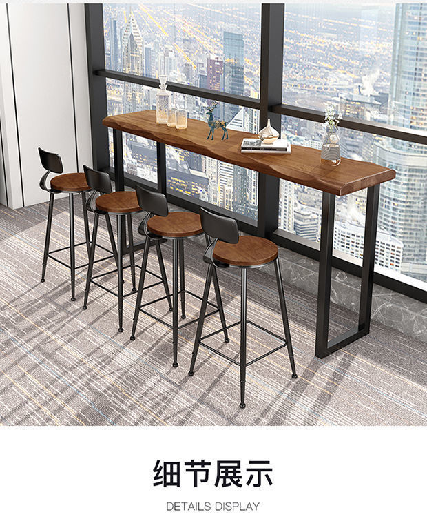 빈티지 솔리드 우드 바 테이블 가정용 간단한 발코니 창 테이블 높은 발 테이블 벽 바 테이블과 의자 조합스토어 가기