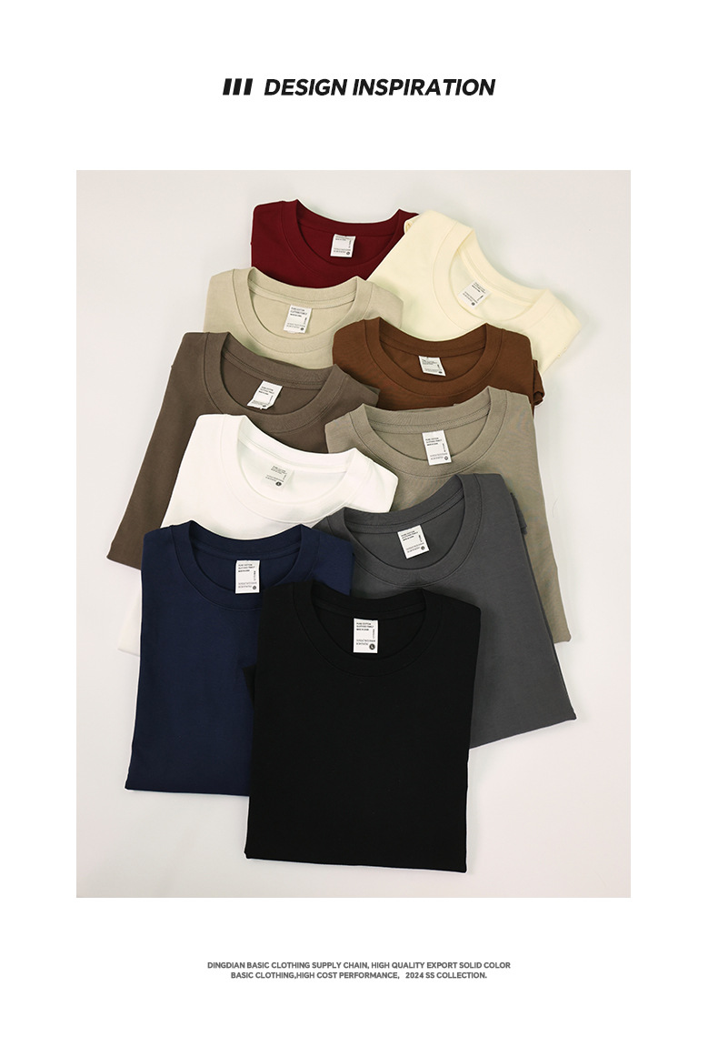 320G 더블 원사 헤비 코튼 남성용 크루 넥 반팔 신장 롱 벨벳 불투과성 보토밍 코튼 숄더 티셔츠