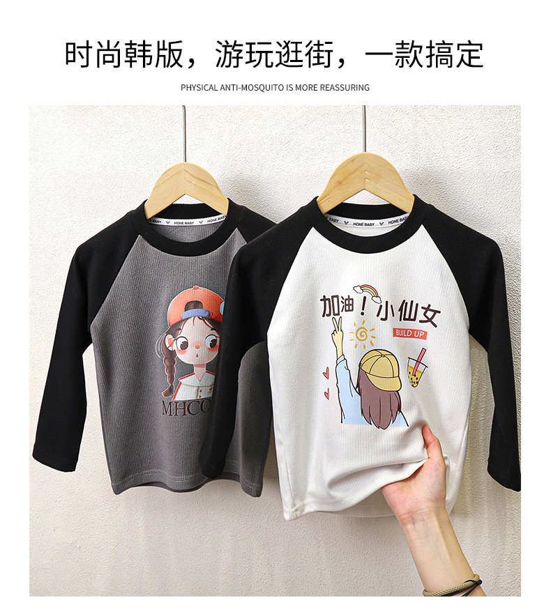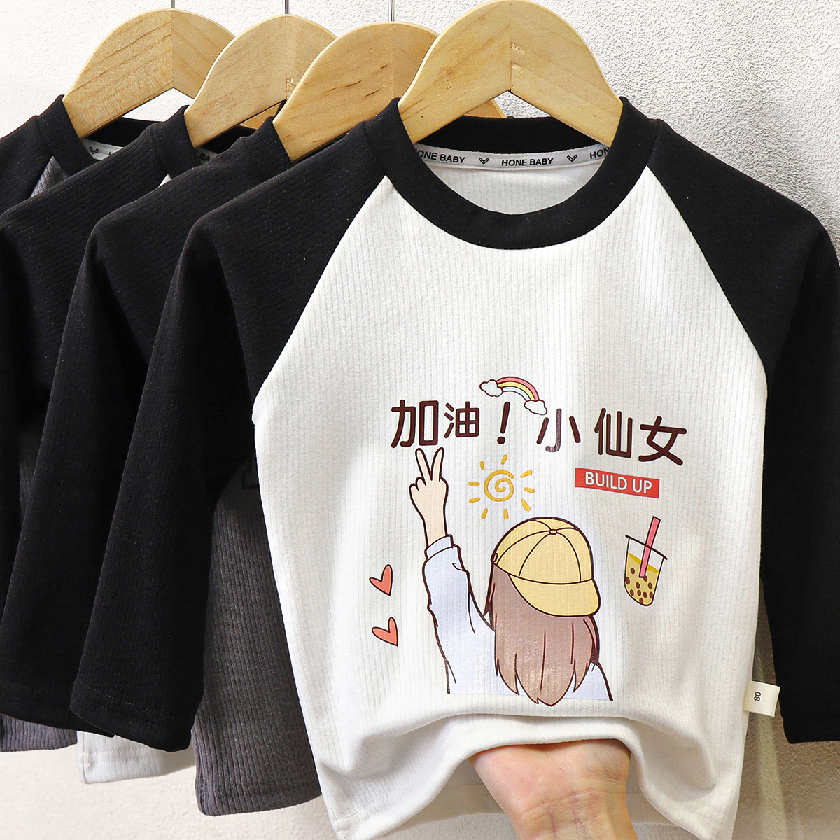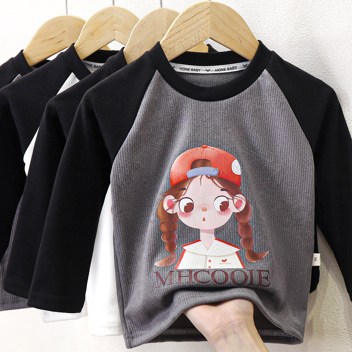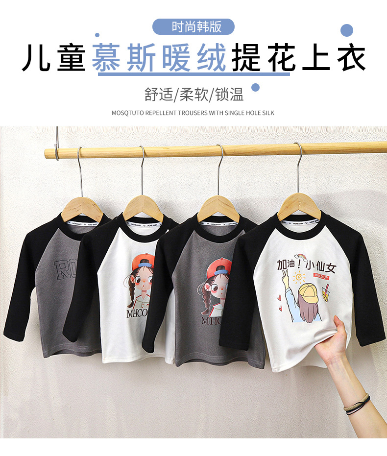 가을과 겨울 소녀 긴팔 티셔츠 2024 새로운 스타일 소녀 패션 스타일리시 베이스 셔츠 무스 따뜻한 벨벳 어린이 싱글 탑스토어 가기
