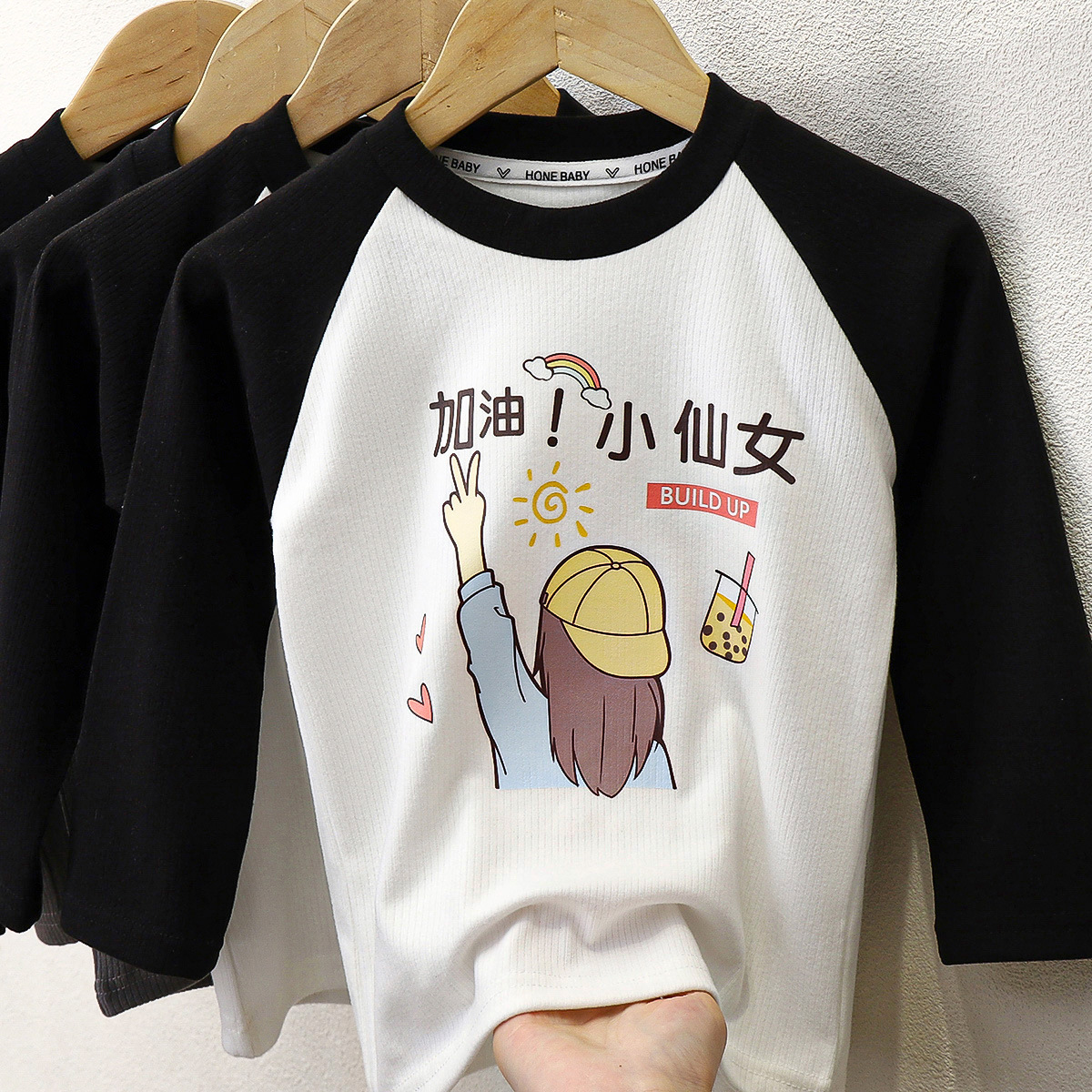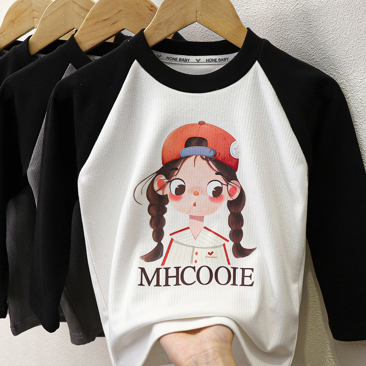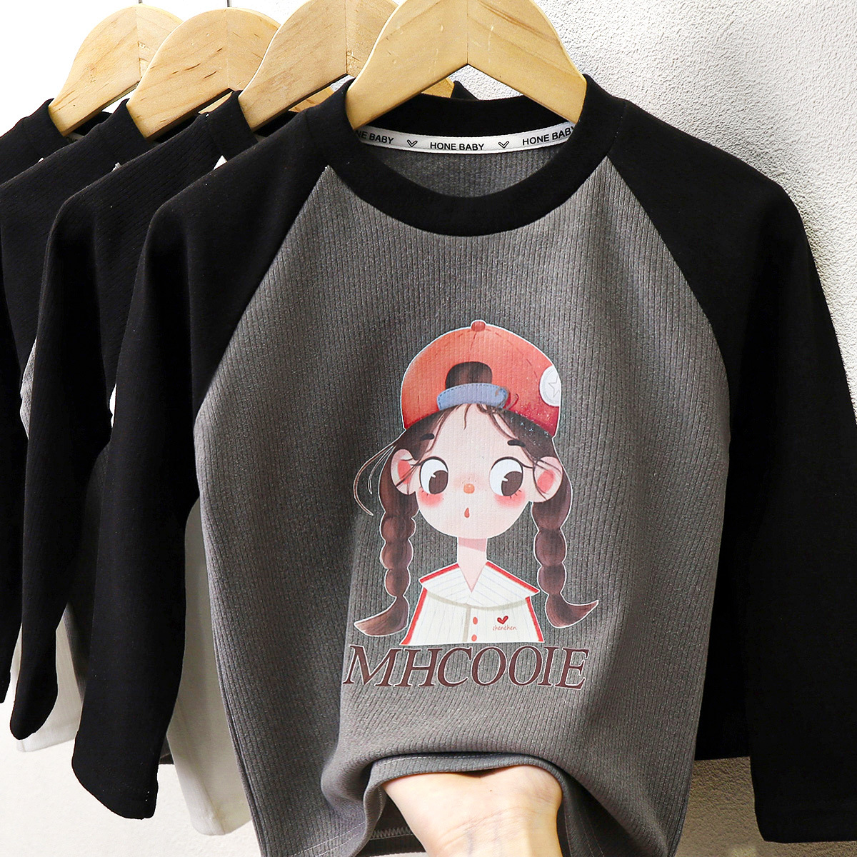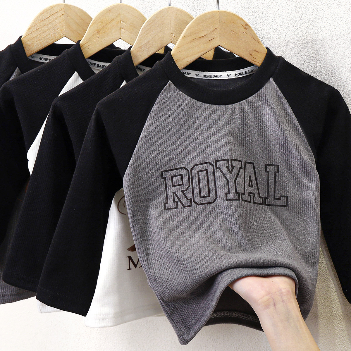 가을과 겨울 소녀 긴팔 티셔츠 2024 새로운 스타일 소녀 패션 스타일리시 베이스 셔츠 무스 따뜻한 벨벳 어린이 싱글 탑스토어 가기