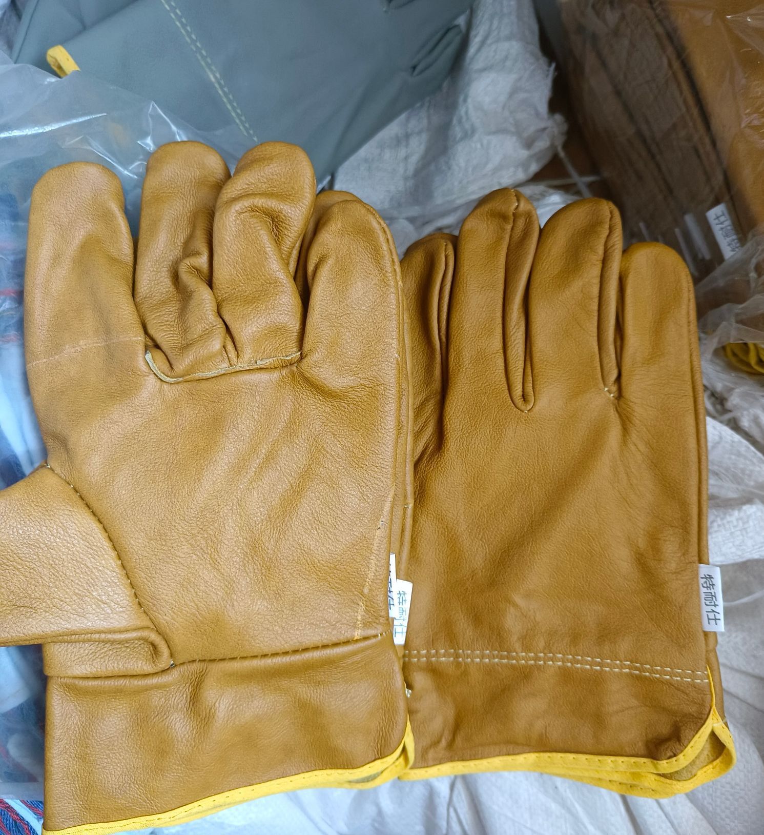 재고 드라이버 가죽 용접기 단열 용접 장갑 가득 차서 다시 어두운 가죽 장갑 용접 소 장갑 없음