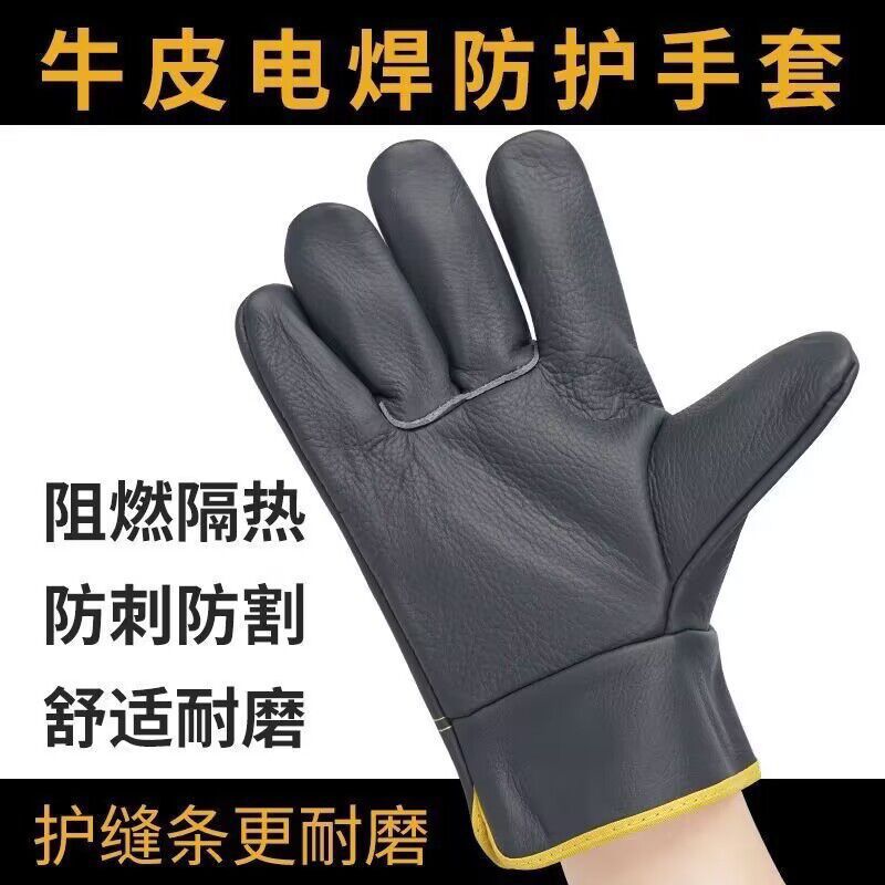 재고 드라이버 가죽 용접기 단열 용접 장갑 가득 차서 다시 어두운 가죽 장갑 용접 소 장갑 없음스토어 가기