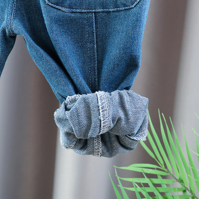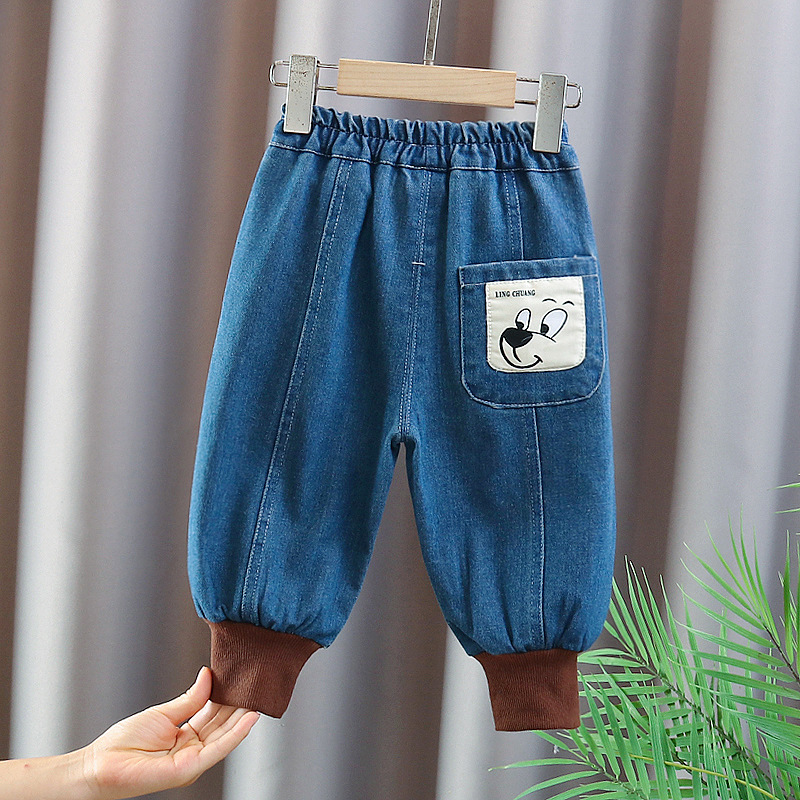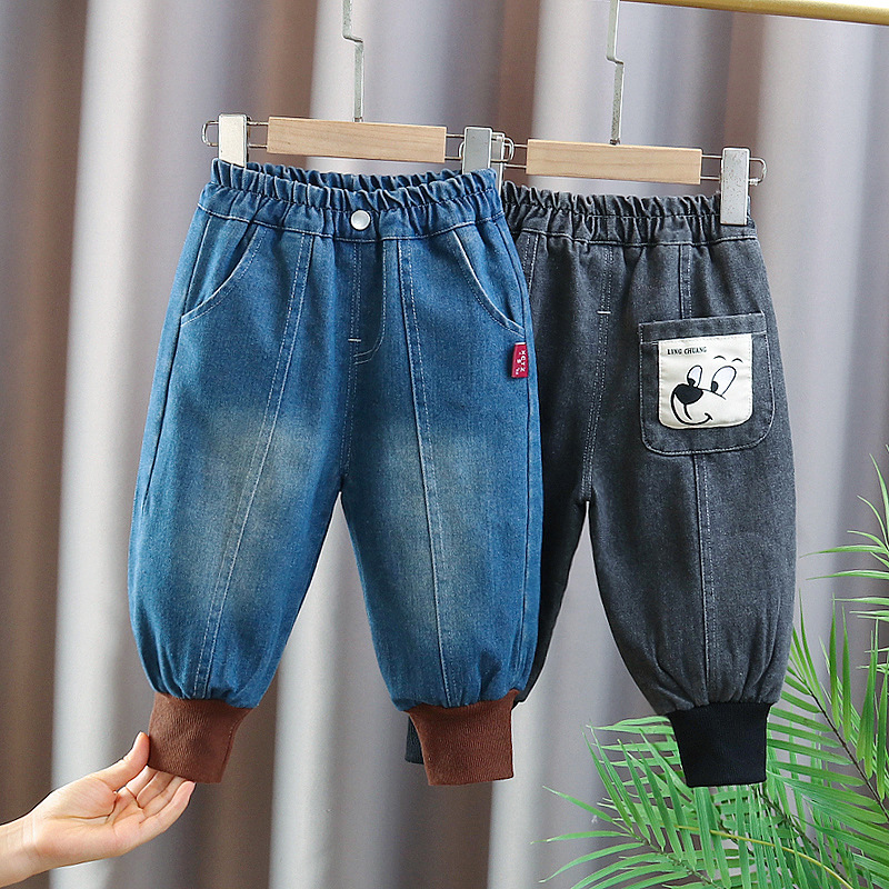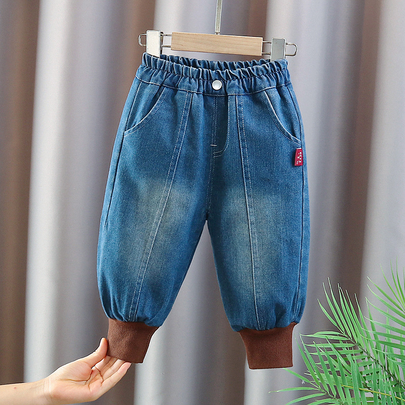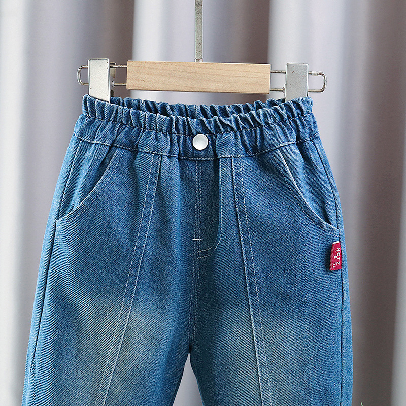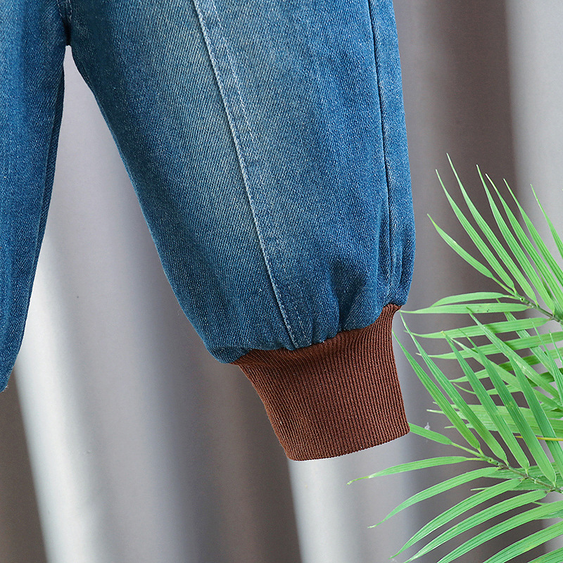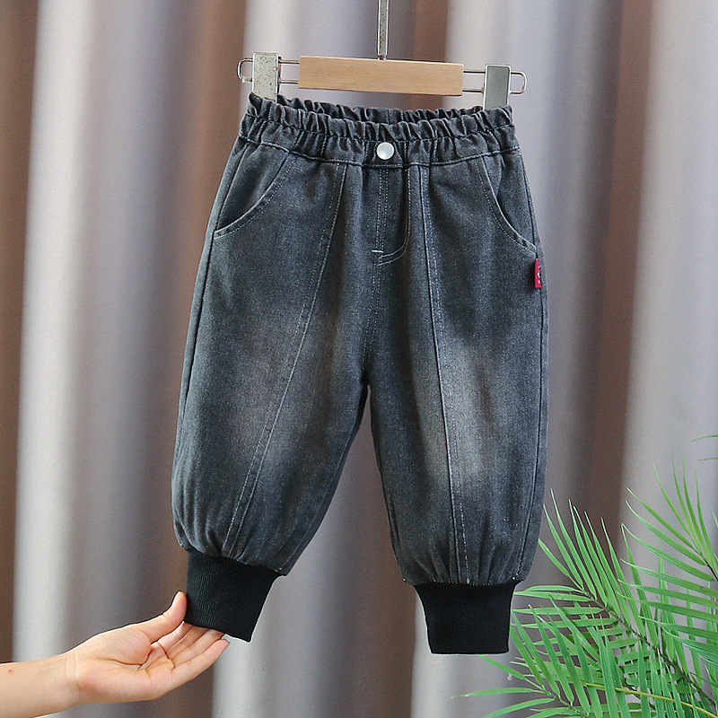 가을 2024 년 새 소년의 씻은 데님 소년과 아기를위한 단색 바지 고무 벨트 탄성 허리 캐주얼 바지