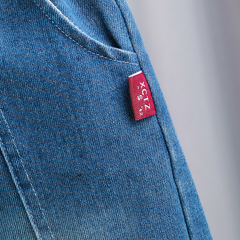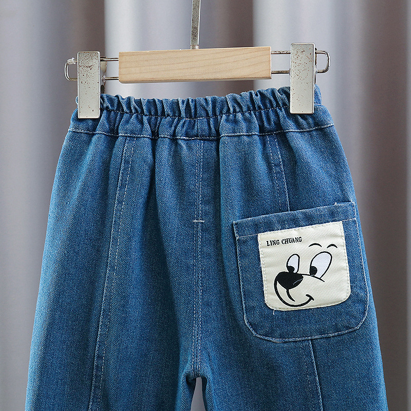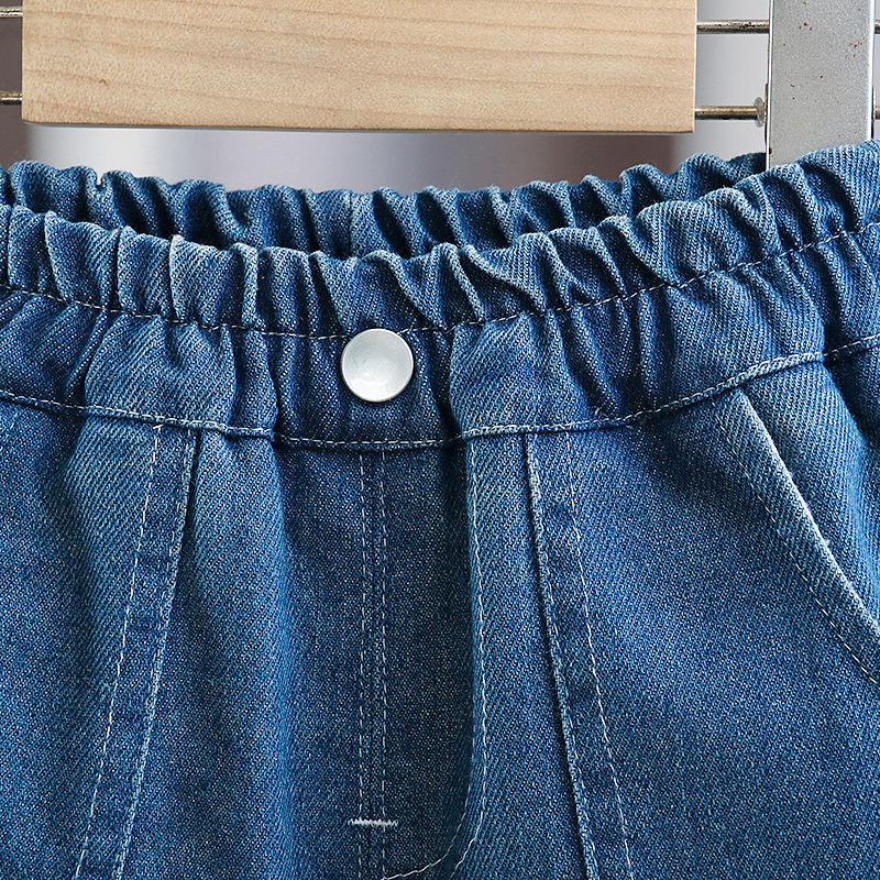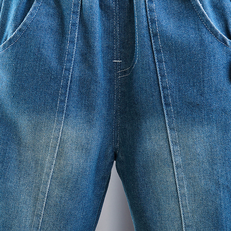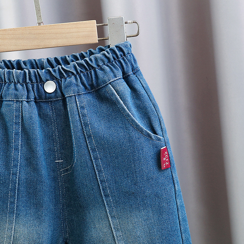 가을 2024 년 새 소년의 씻은 데님 소년과 아기를위한 단색 바지 고무 벨트 탄성 허리 캐주얼 바지스토어 가기