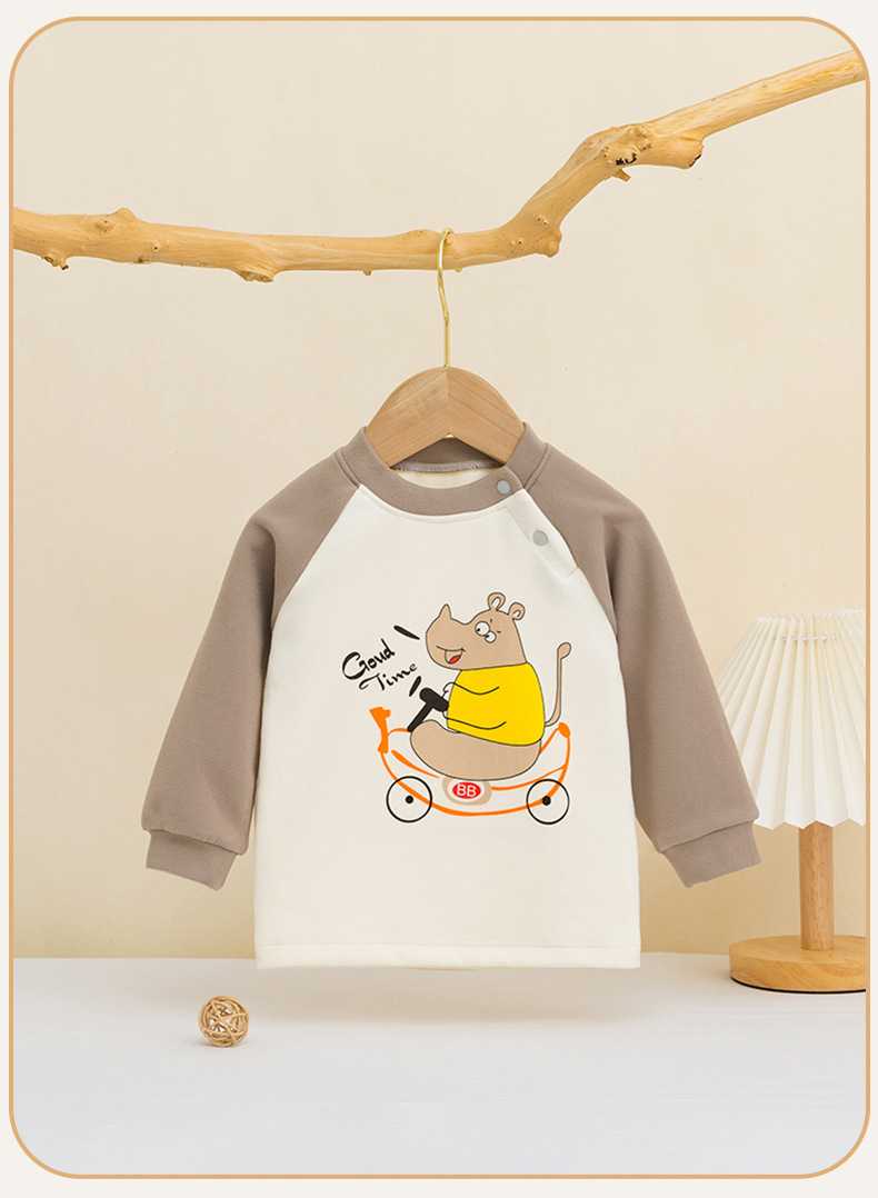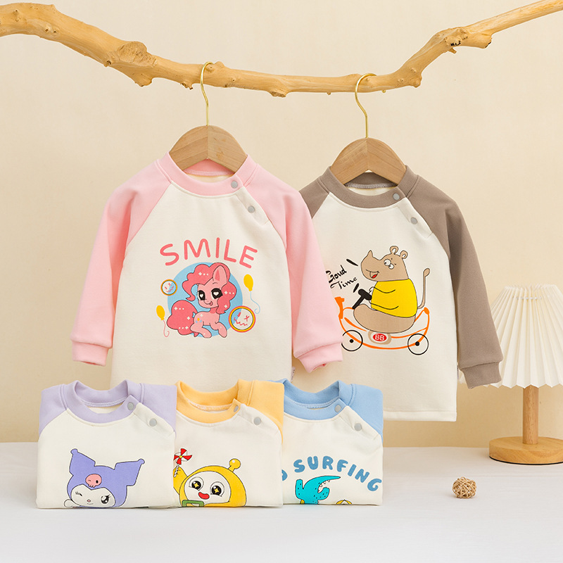 어린이 가을과 겨울 벨벳 따뜻한 옷 아기의 얇은 벨벳 소년과 소년의 라글란 슬리브 아기의 확장 벨벳 인쇄베이스 탑스토어 가기
