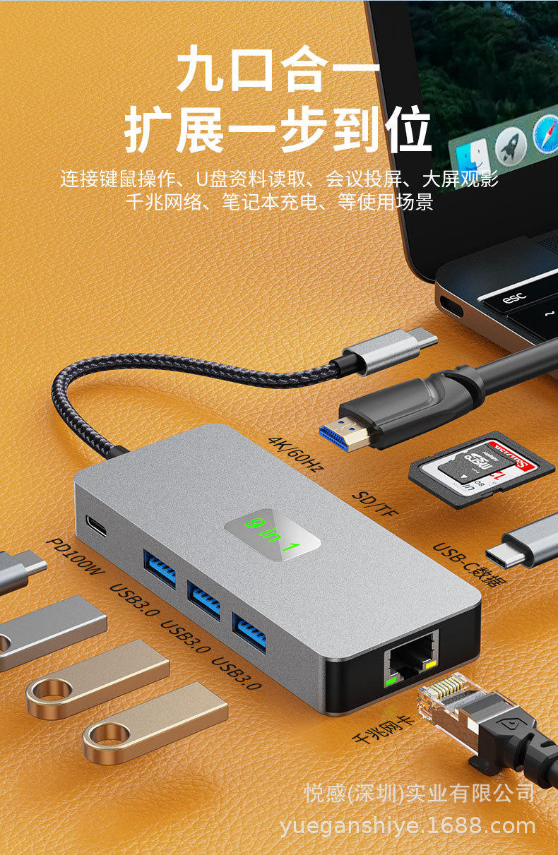 국경 간 HD 4K60h 허브 9-in-one usb 확장기 멀티 인터페이스 노트북 유형-c 도킹 스테이션
