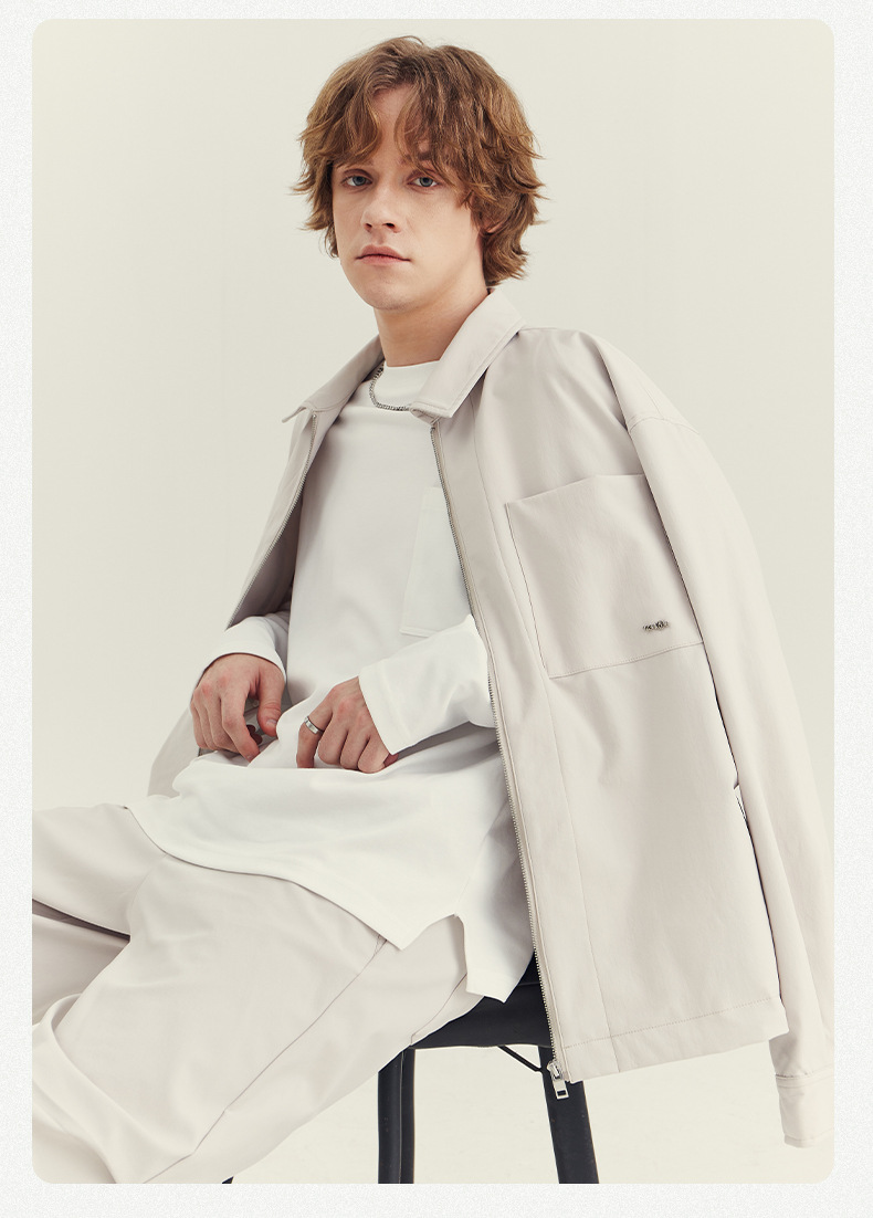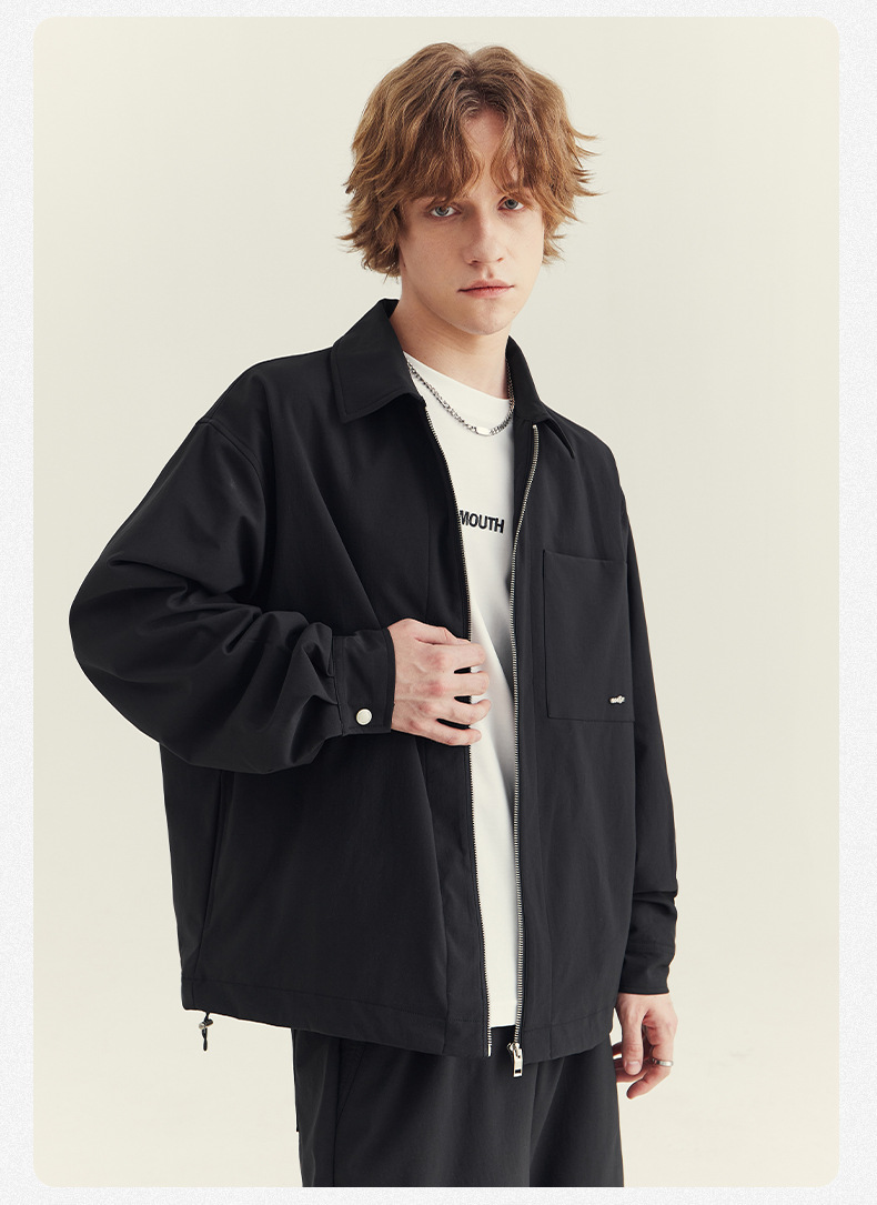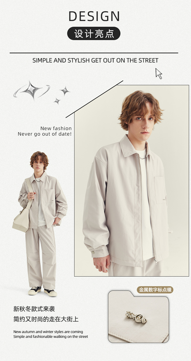 APO 남성복 | 남성용 라펠 재킷 가을 겨울 고급스러운 스타일 트렌디한 루즈핏 다용도 캐주얼 지퍼 상의