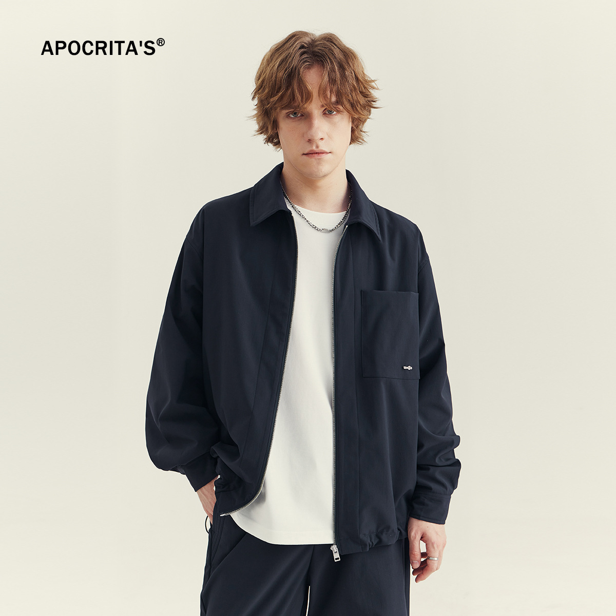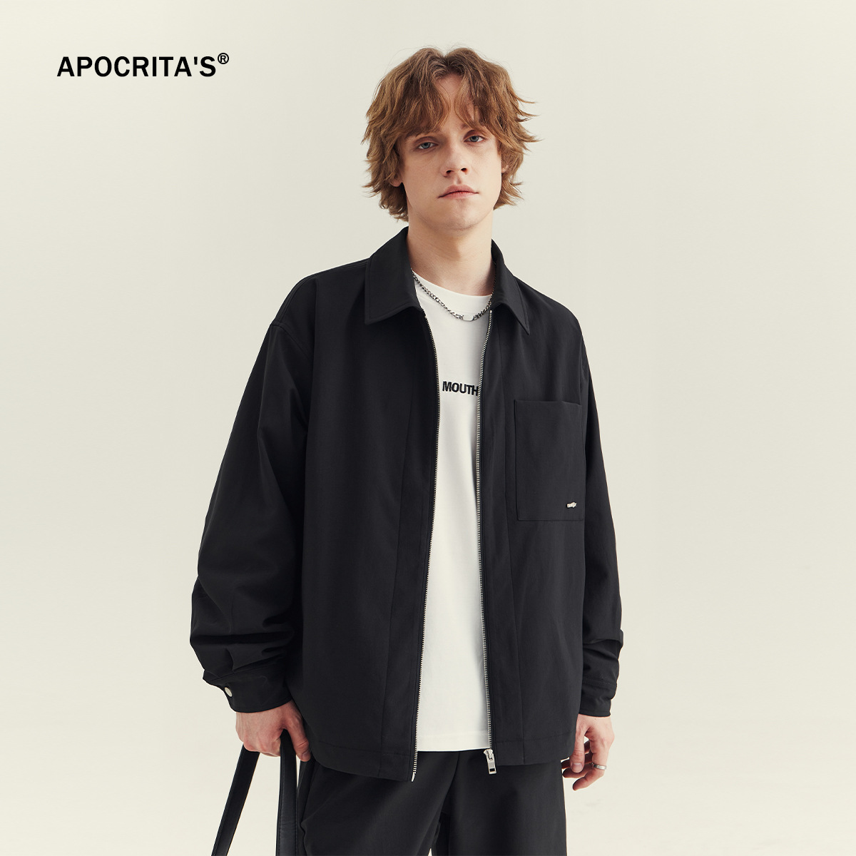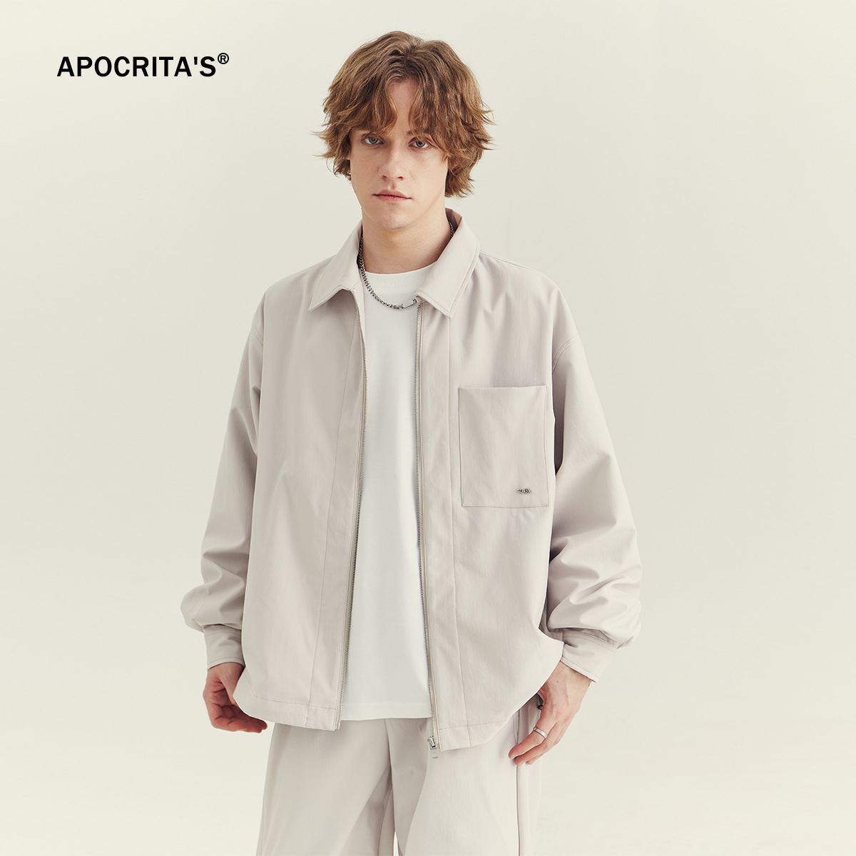 APO 남성복 | 남성용 라펠 재킷 가을 겨울 고급스러운 스타일 트렌디한 루즈핏 다용도 캐주얼 지퍼 상의