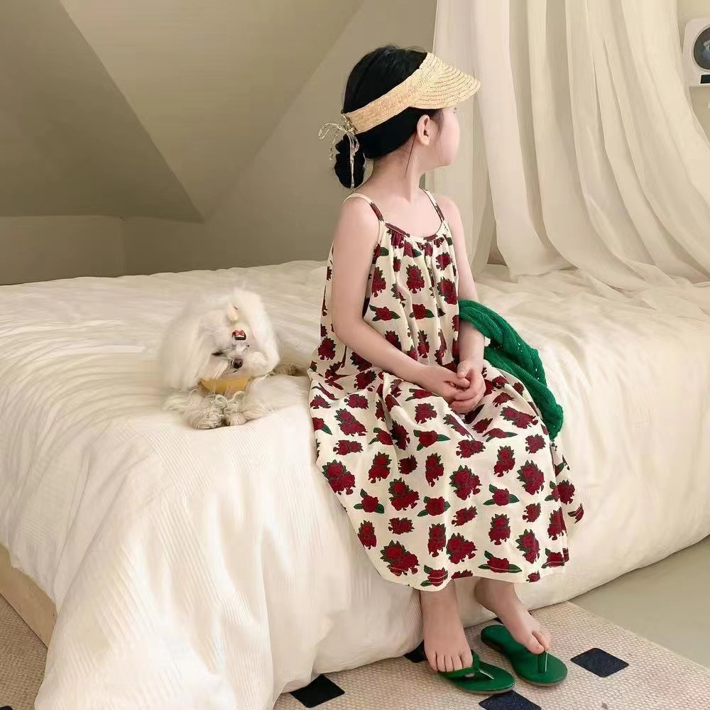 2024 여름 새로운 소녀 유행 꽃 달콤한 원피스 세련된 올 매치 패션 슬링 공주 원피스 트렌드스토어 가기