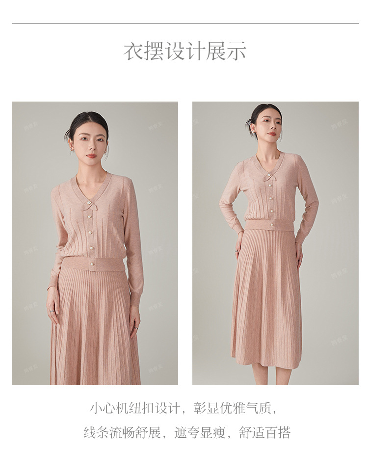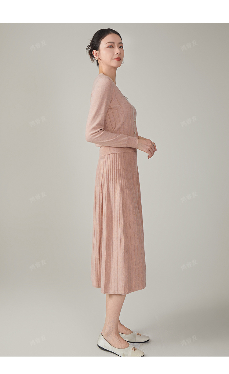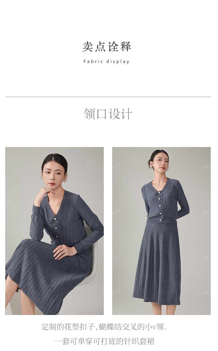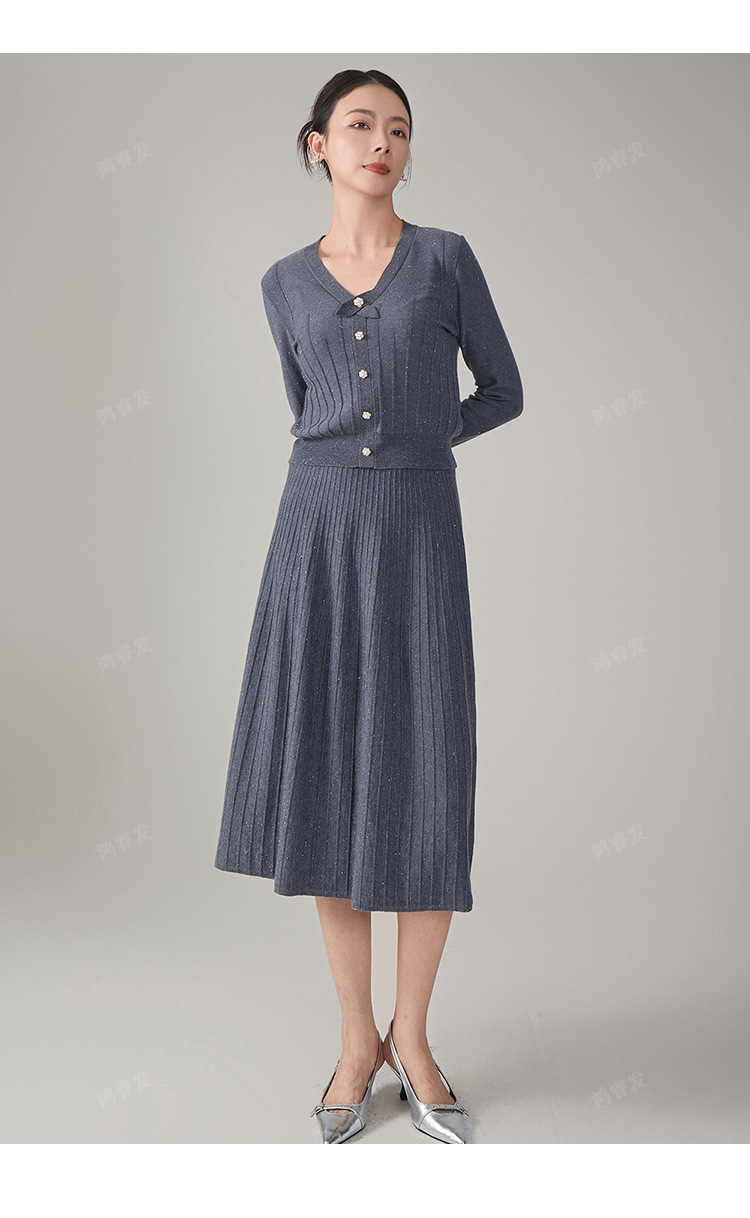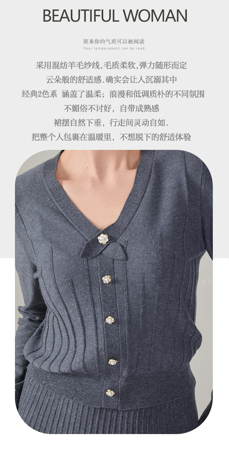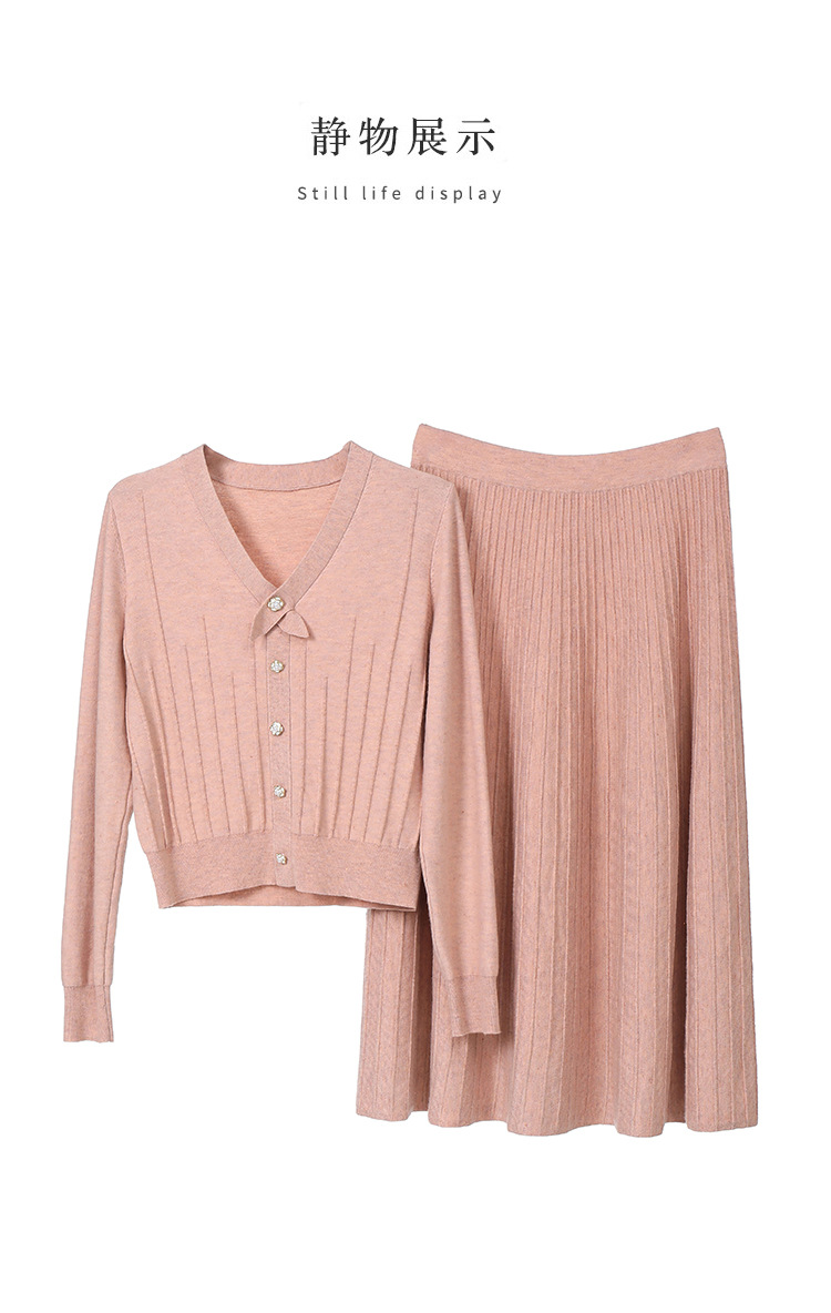 2024 가을 울 정장 스커트, 우아한 리본 니트 스커트 투피스 세트, 여성 가을 의류, 혼방 소재, 다용도, 패셔너블스토어 가기