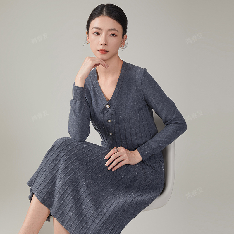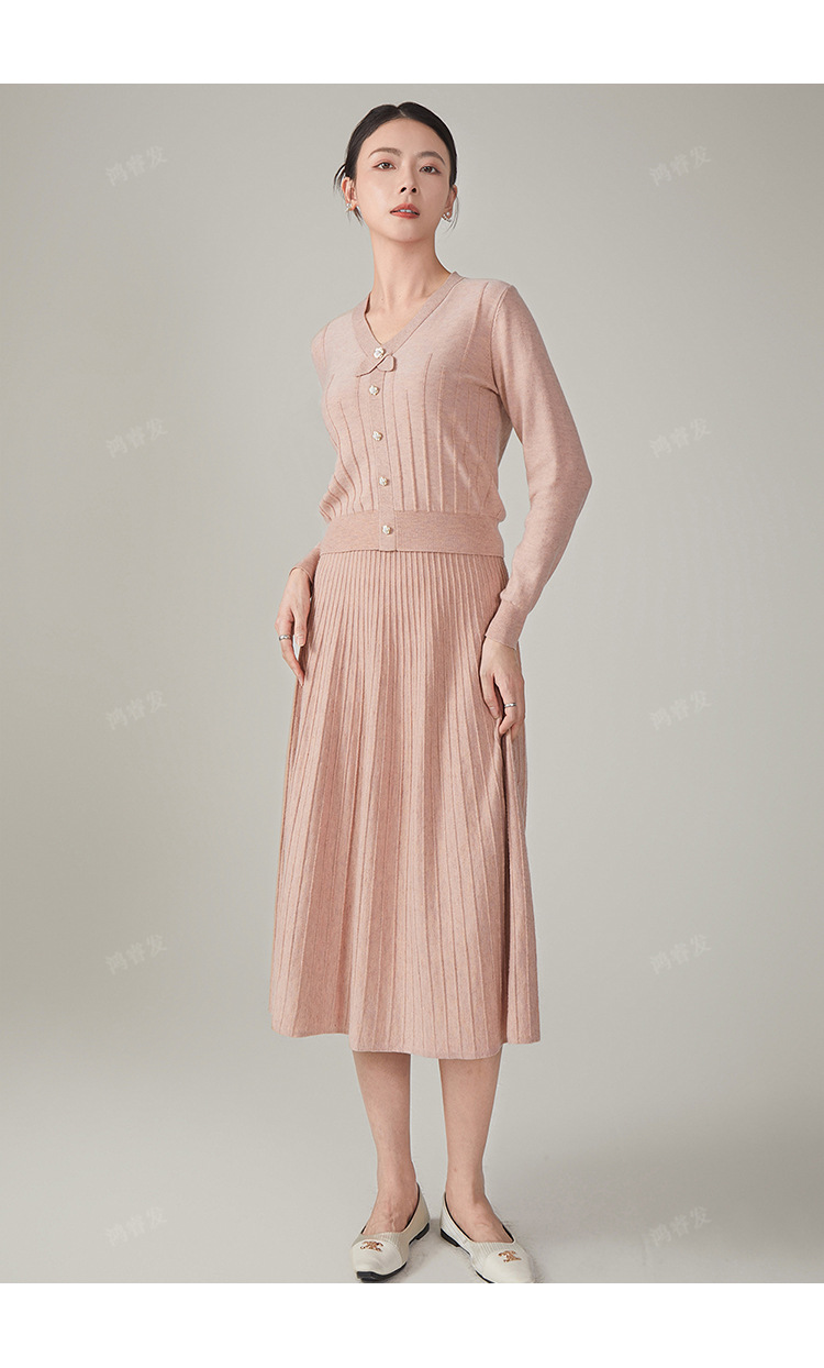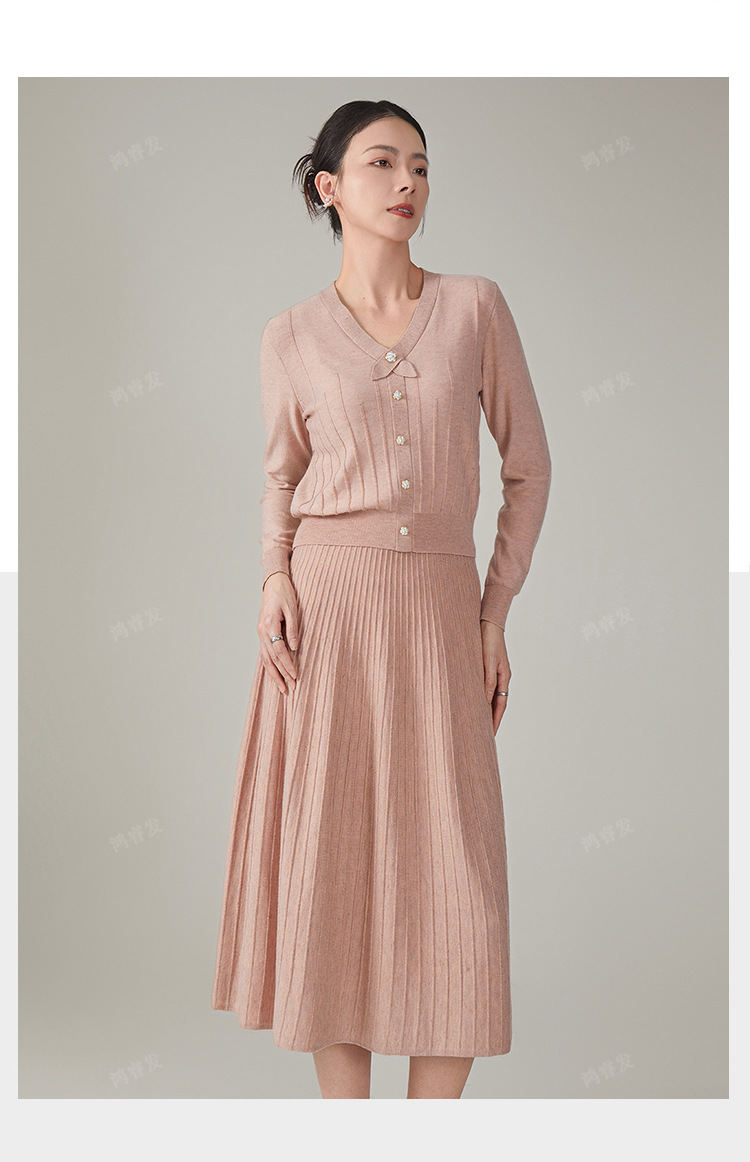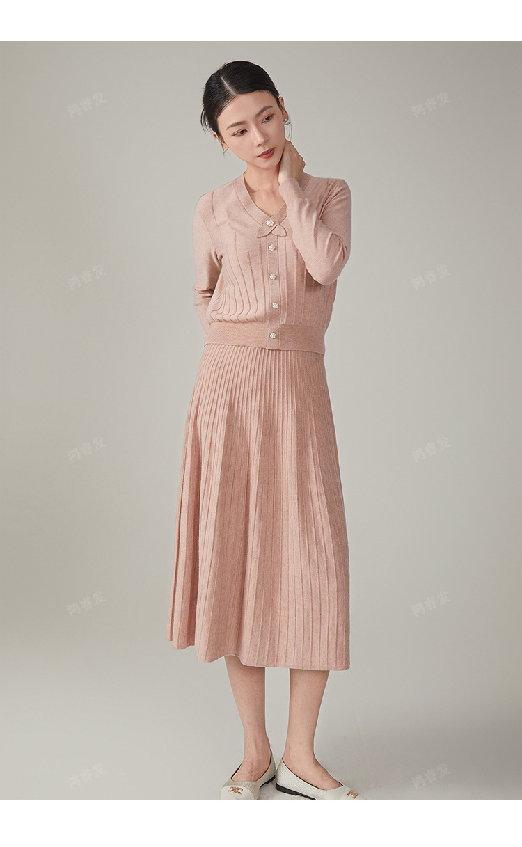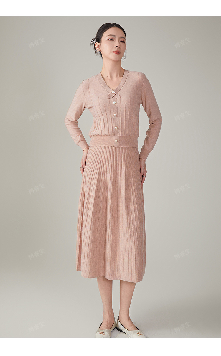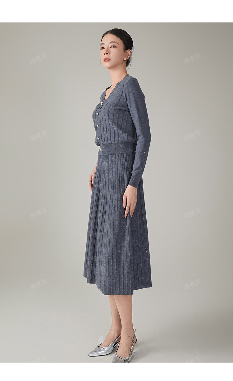 2024 가을 울 정장 스커트, 우아한 리본 니트 스커트 투피스 세트, 여성 가을 의류, 혼방 소재, 다용도, 패셔너블스토어 가기