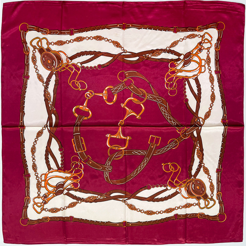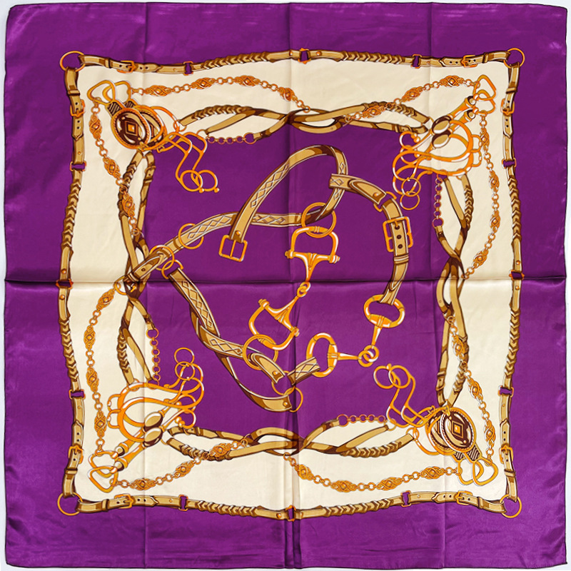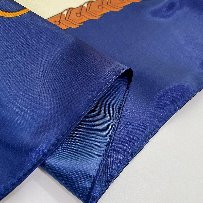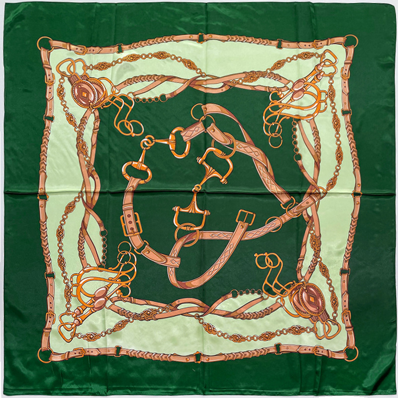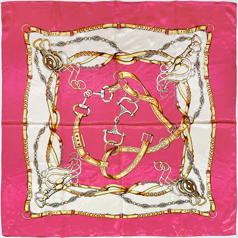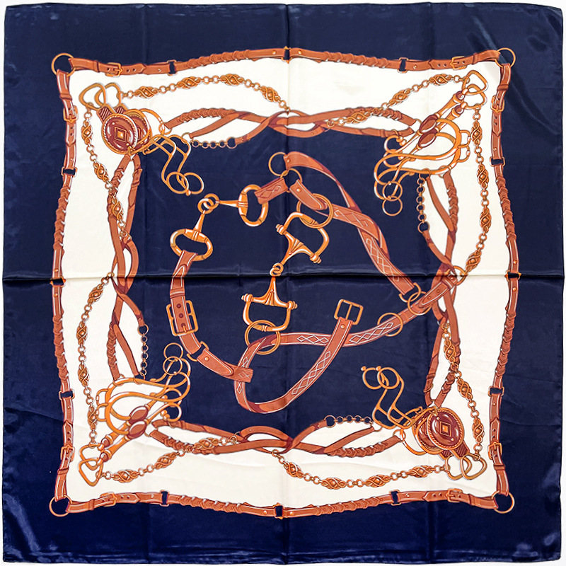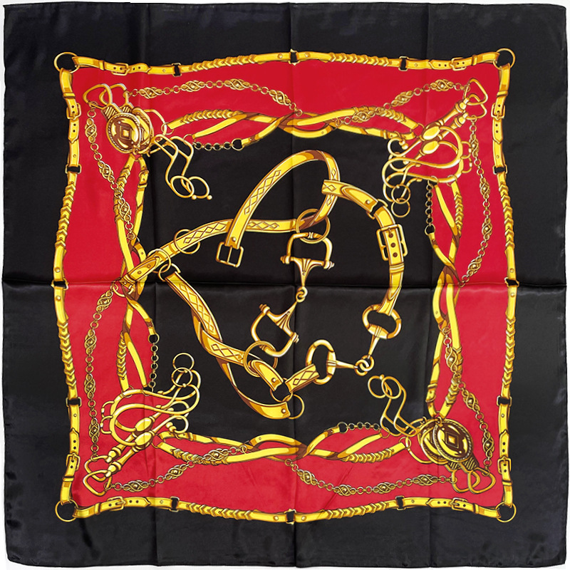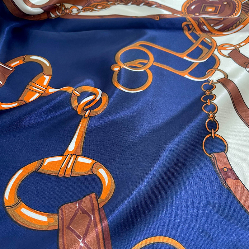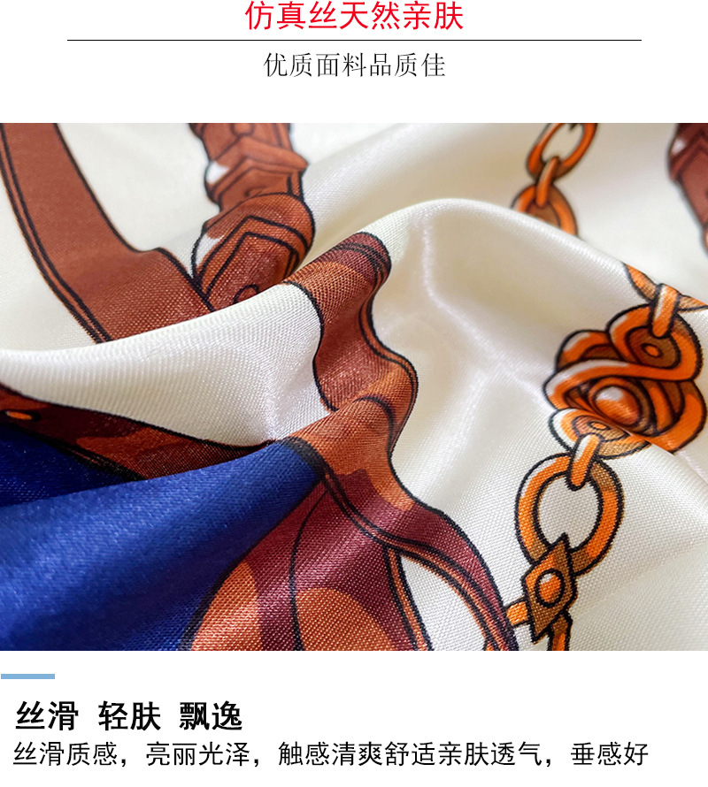90cm 실크 스카프, 새틴 대형 사각 스카프, 유럽 및 미국 스타일 체인 프린트 헤드 스카프, 새틴 숄 스카프, 중국풍 무지 크레이프 새틴