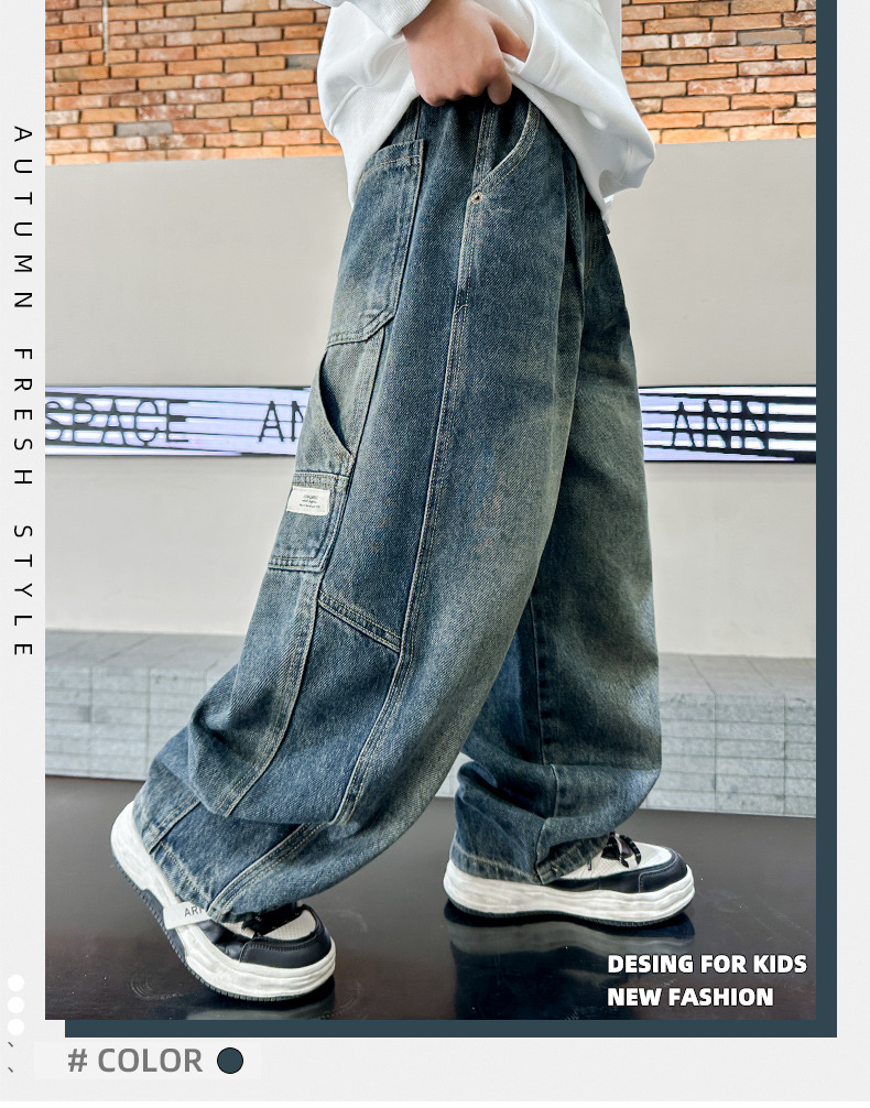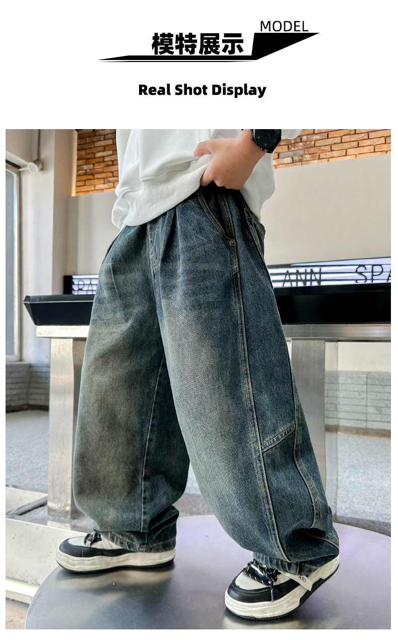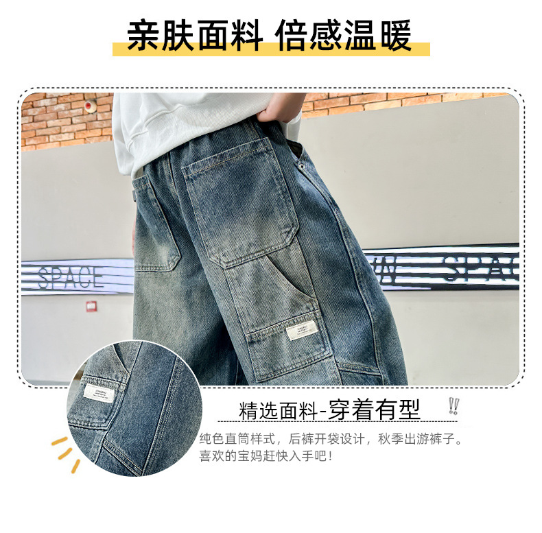 남아 청바지 봄 가을 스타일, 어린이 가을 바지, 2025년 신상 중대형 아동 가을 바지, 트렌디한 남아용 바지스토어 가기