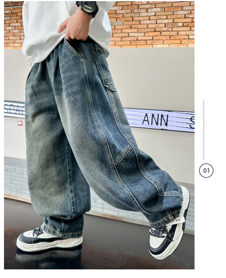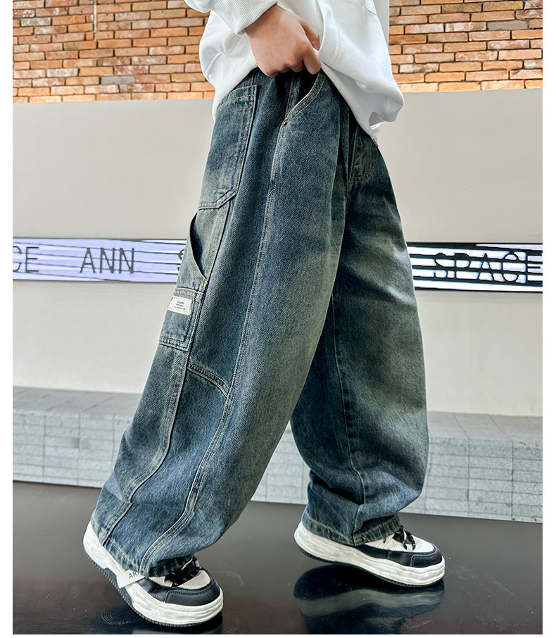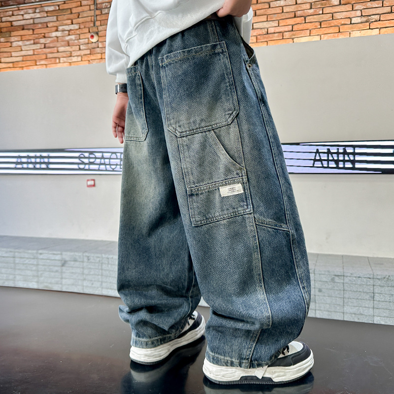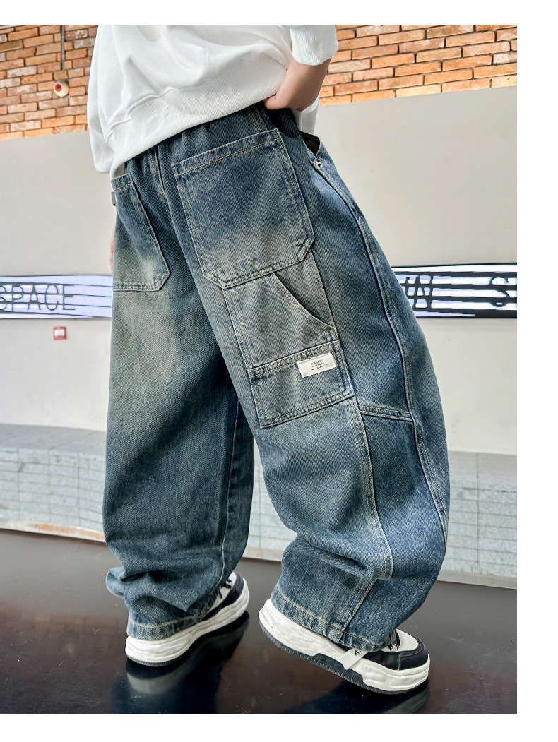 남아 청바지 봄 가을 스타일, 어린이 가을 바지, 2025년 신상 중대형 아동 가을 바지, 트렌디한 남아용 바지