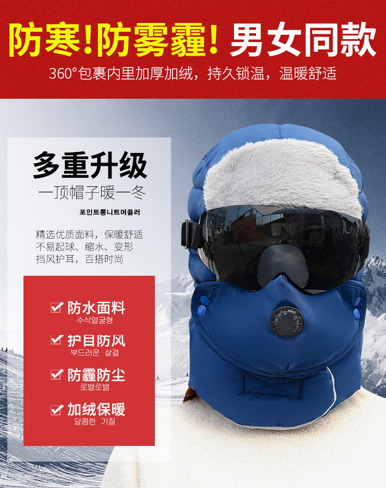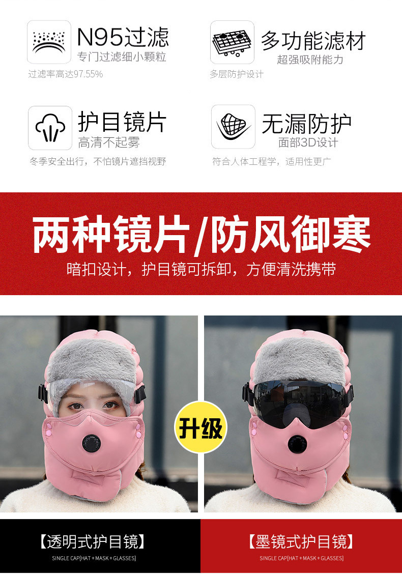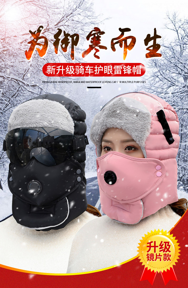 Lei Feng Cap 겨울 야외 남성 및 여성 방풍 귀 보호 얼굴 보호 Lei Feng Cap 겨울 고글 두꺼운 방한 모자 따뜻한