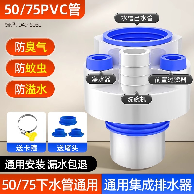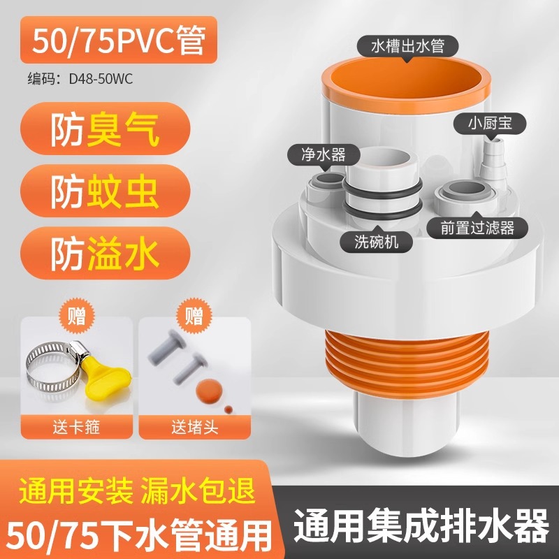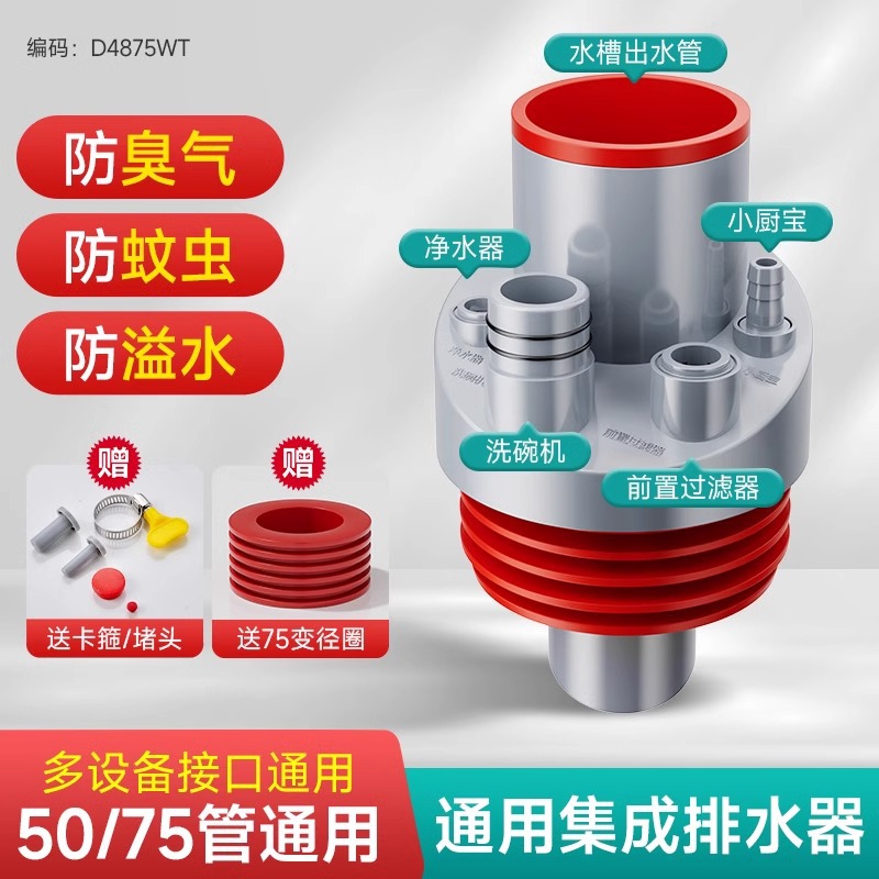 • 클래식 75 파이프[드레인 5방향] 1~5개 파이프(역진 및 냄새 방지 밸브 포함)에 연결되고 액세서리 전체 세트가 함께 제공됩니다.